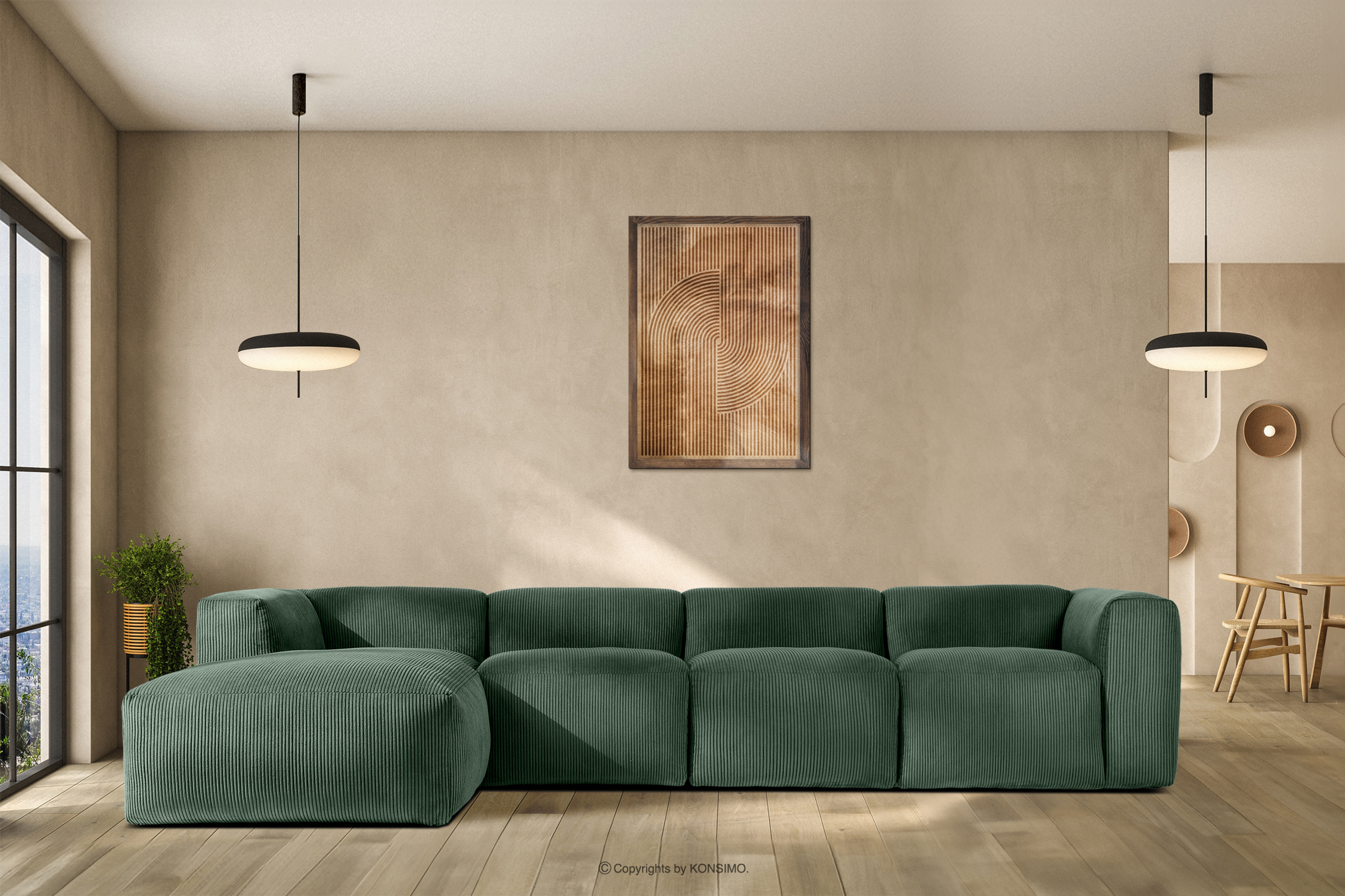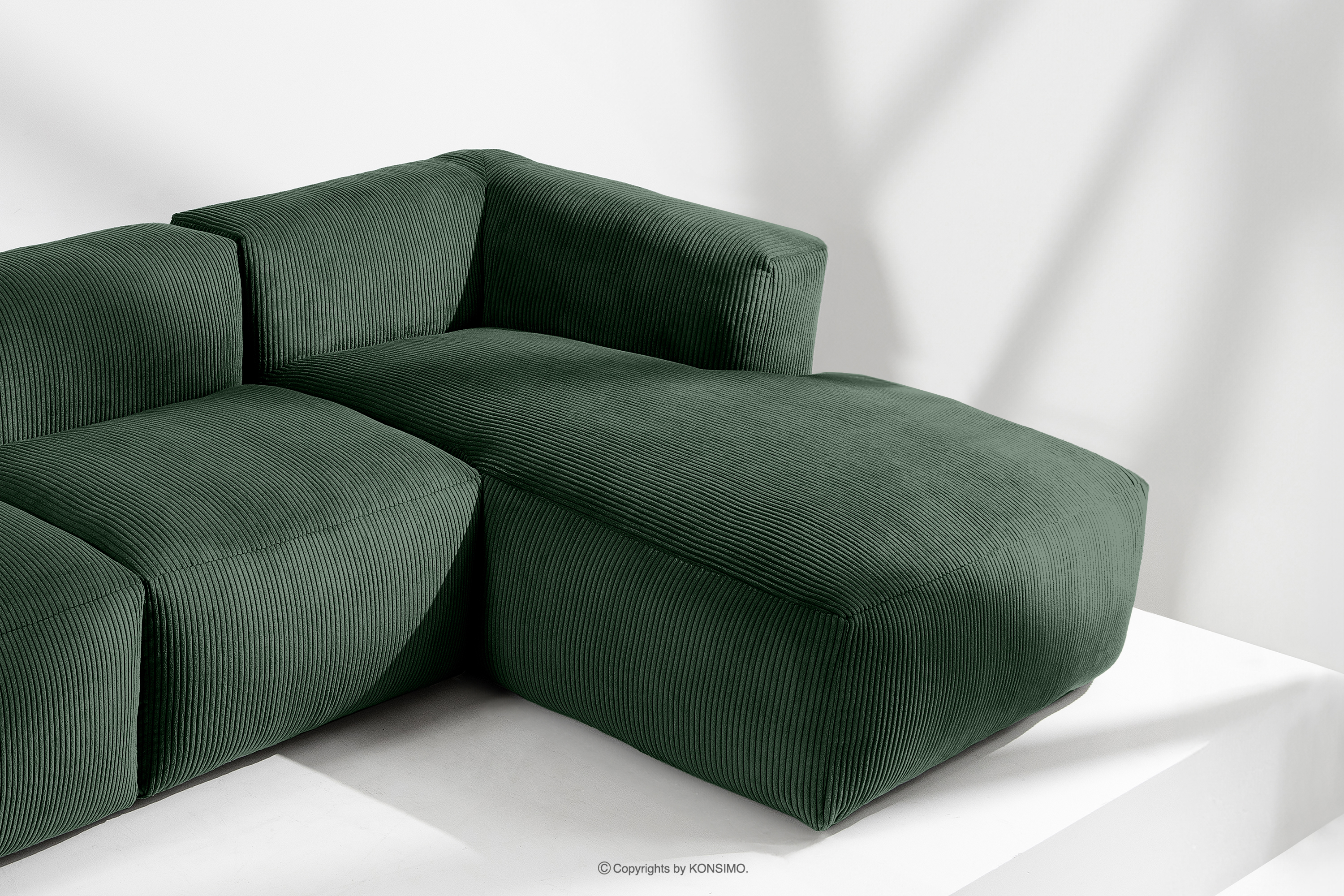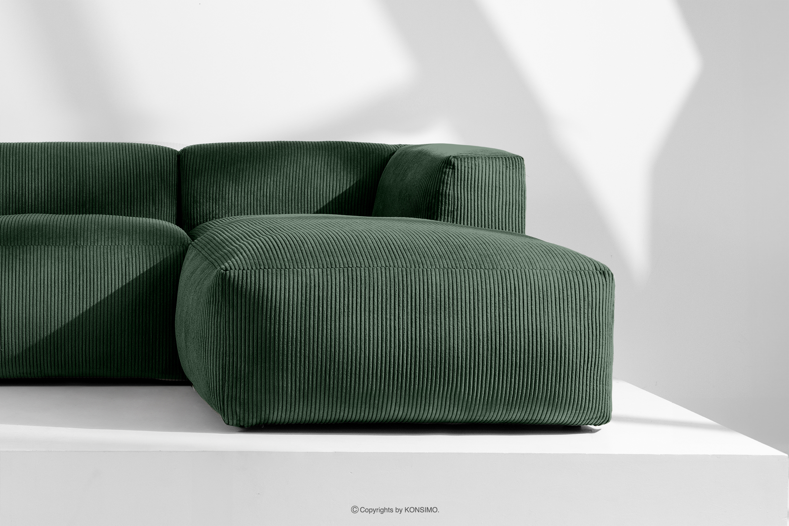 BUFFO Duży narożnik modułowy do salonu w tkaninie sztruks ciemny zielony prawy