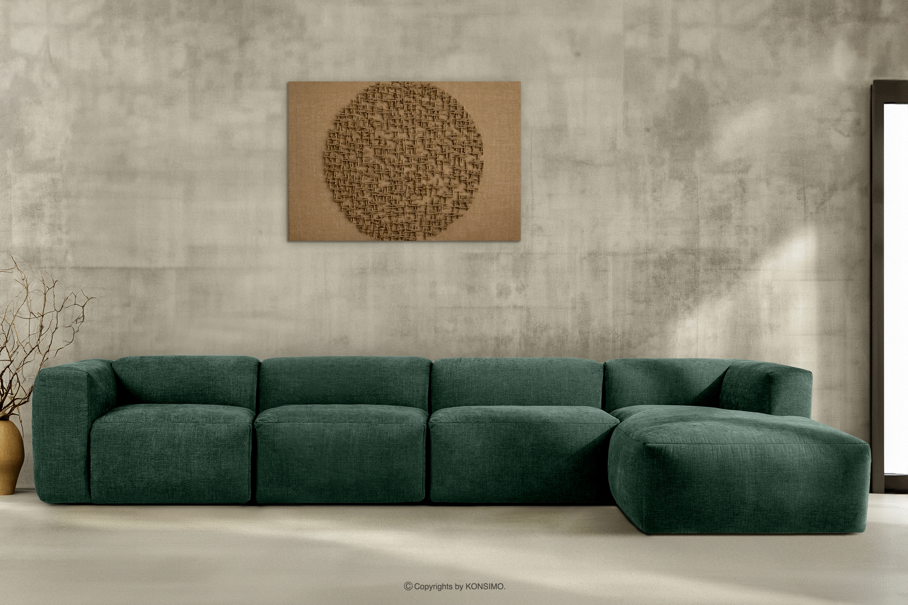 BUFFO zobacz całą kolekcję Duży narożnik modułowy do salonu w tkaninie plecionej morski prawy- kolor morski