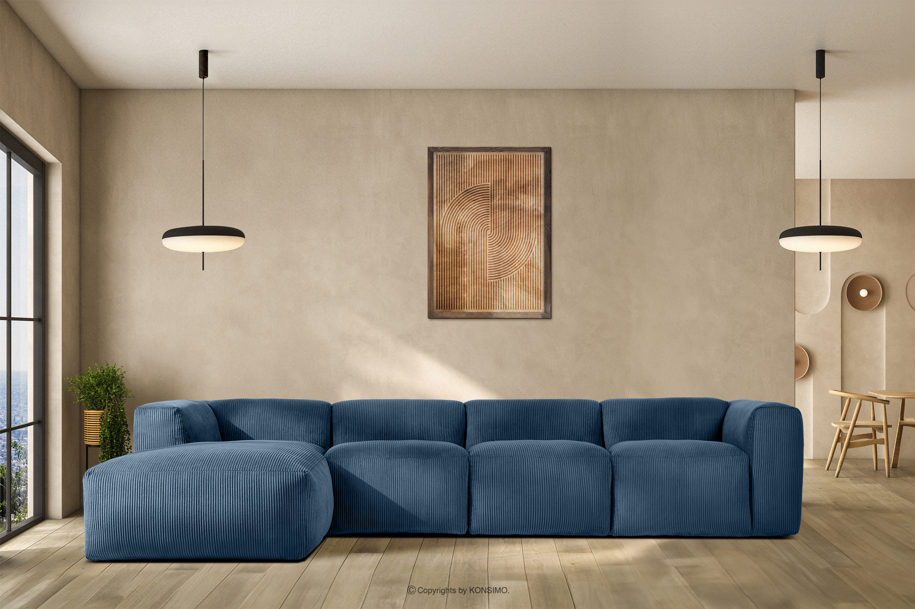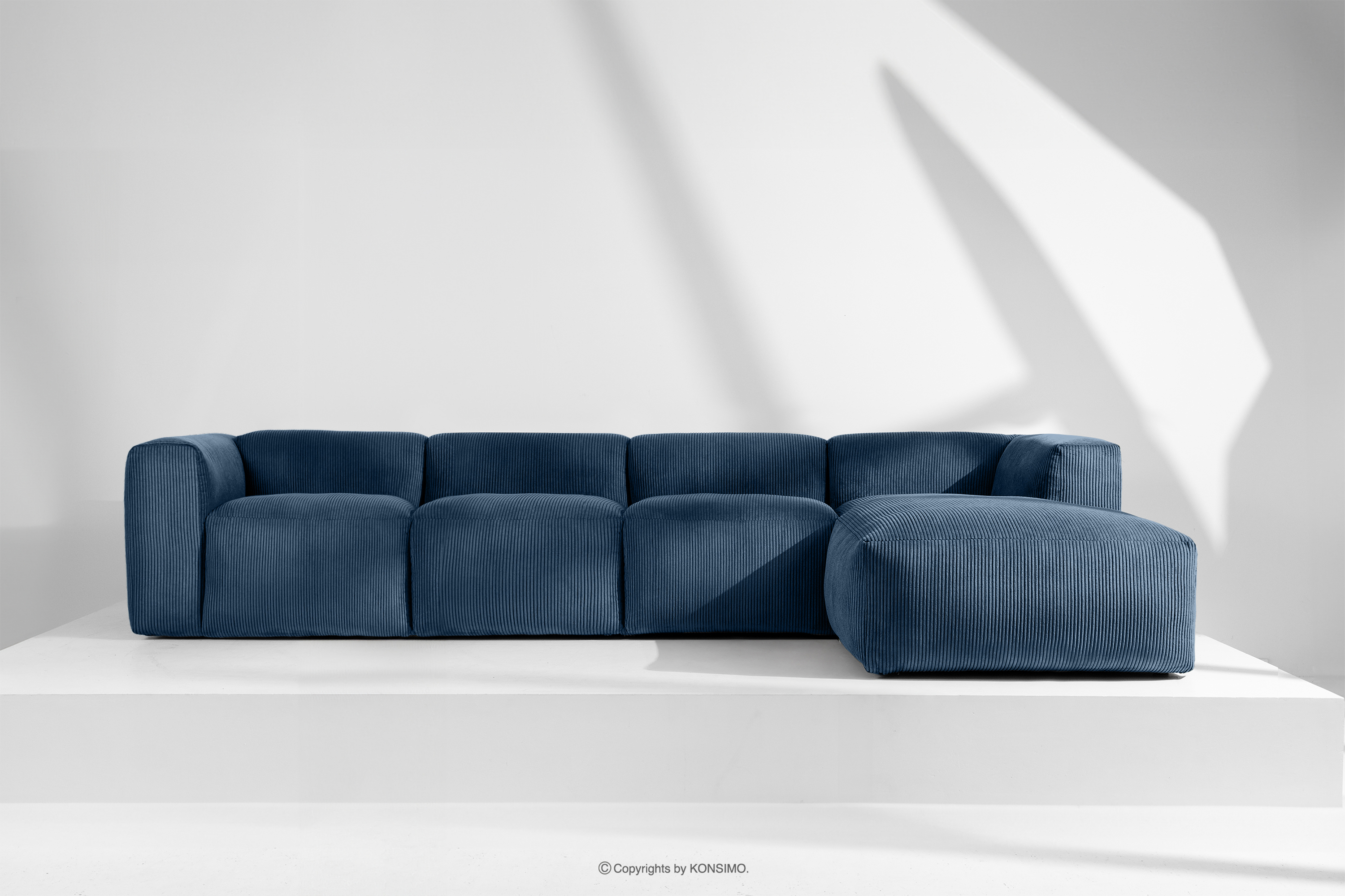 BUFFO zobacz całą kolekcję Duży narożnik modułowy do salonu w tkaninie sztruks granatowy prawy- kolor granatowy