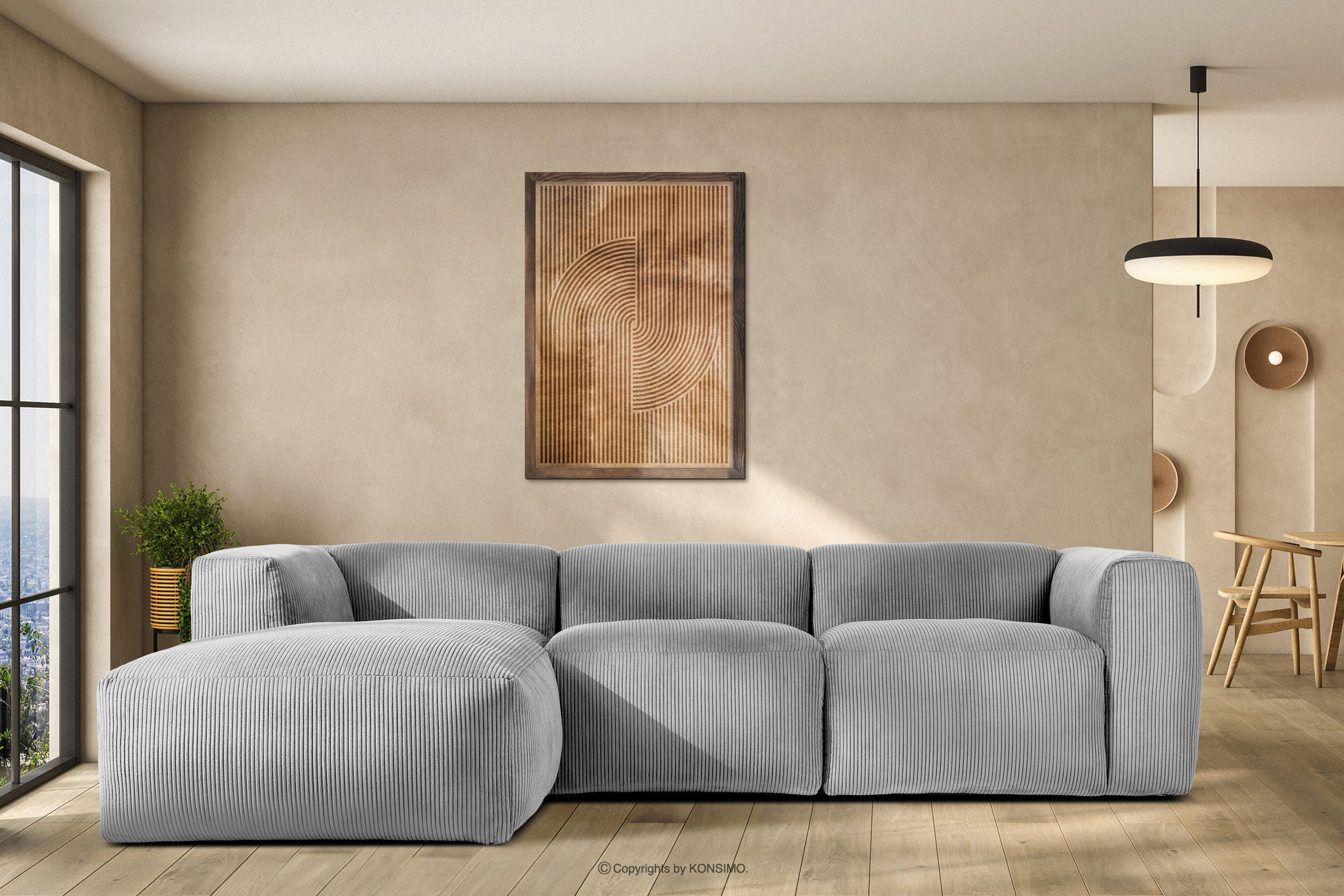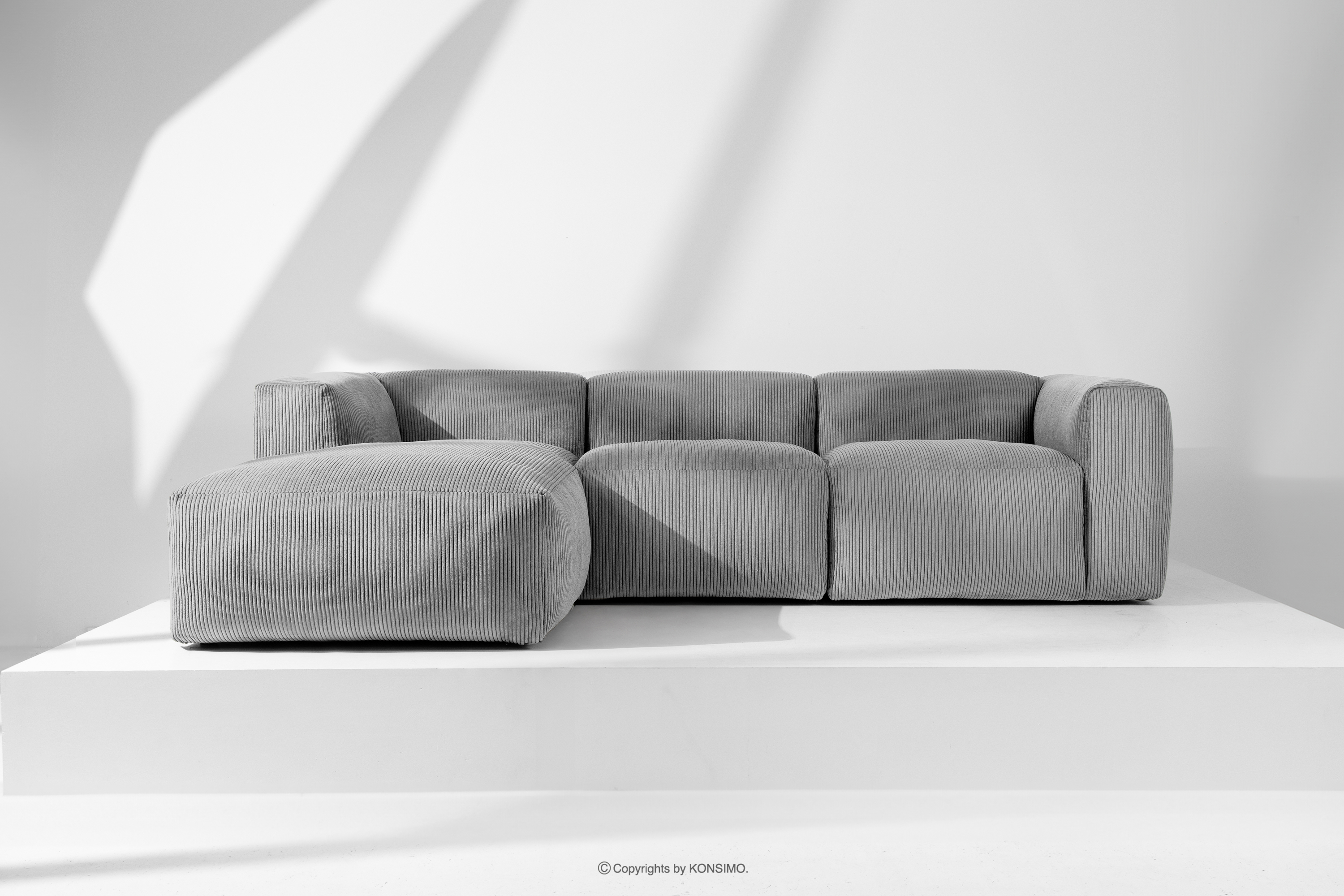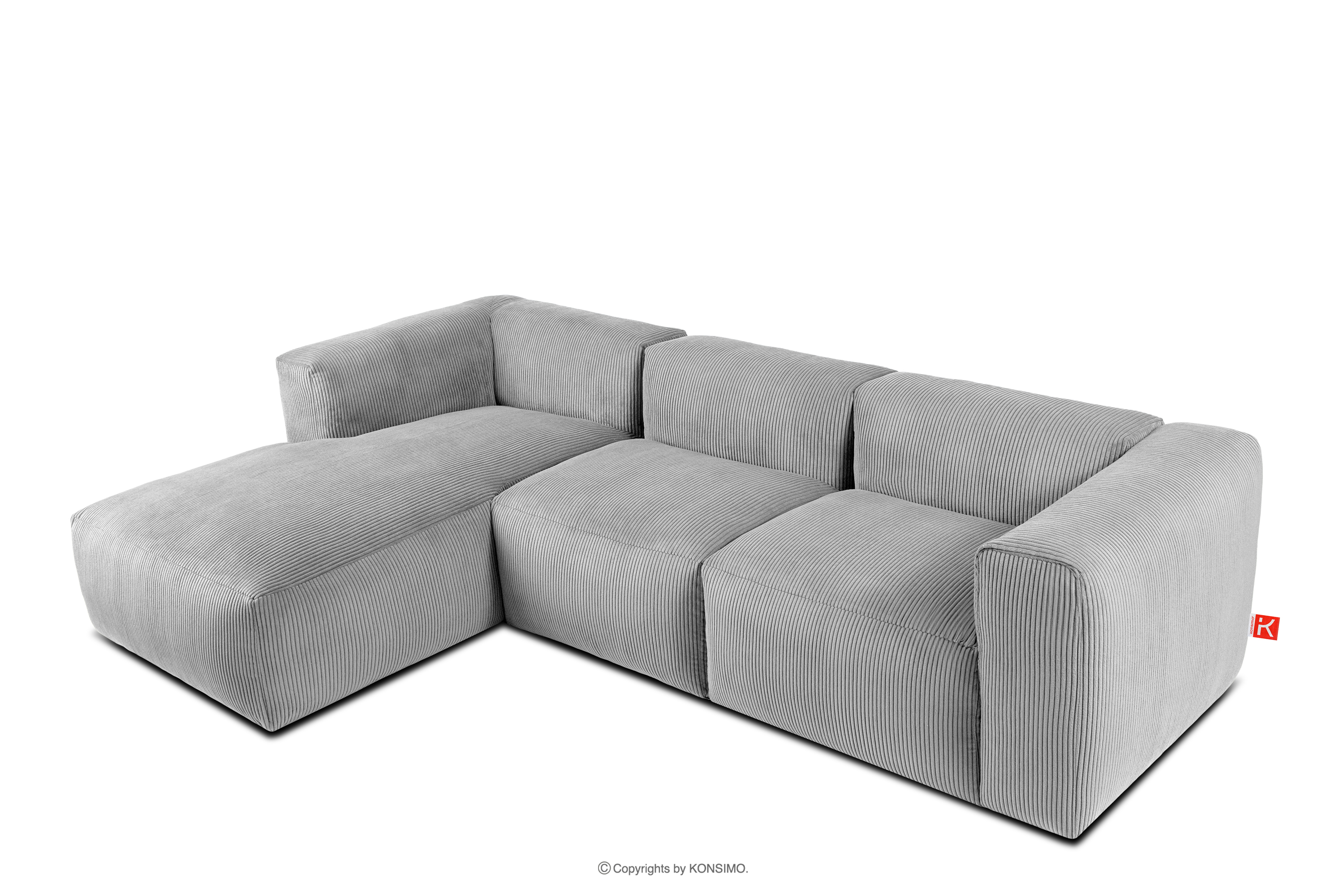 BUFFO zobacz całą kolekcję Narożnik modułowy w tkaninie sztruks jasny szary lewy- kolor jasny szary