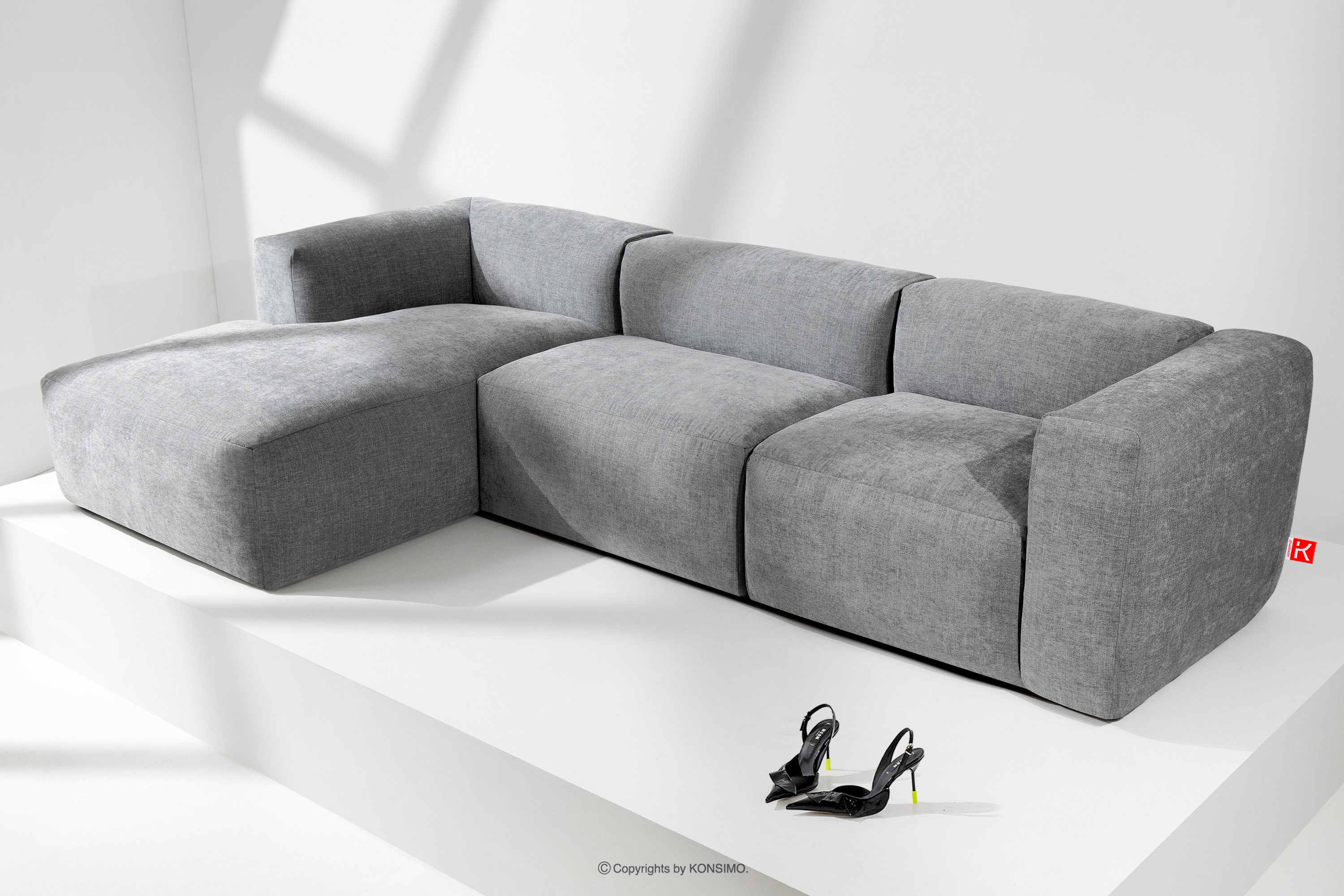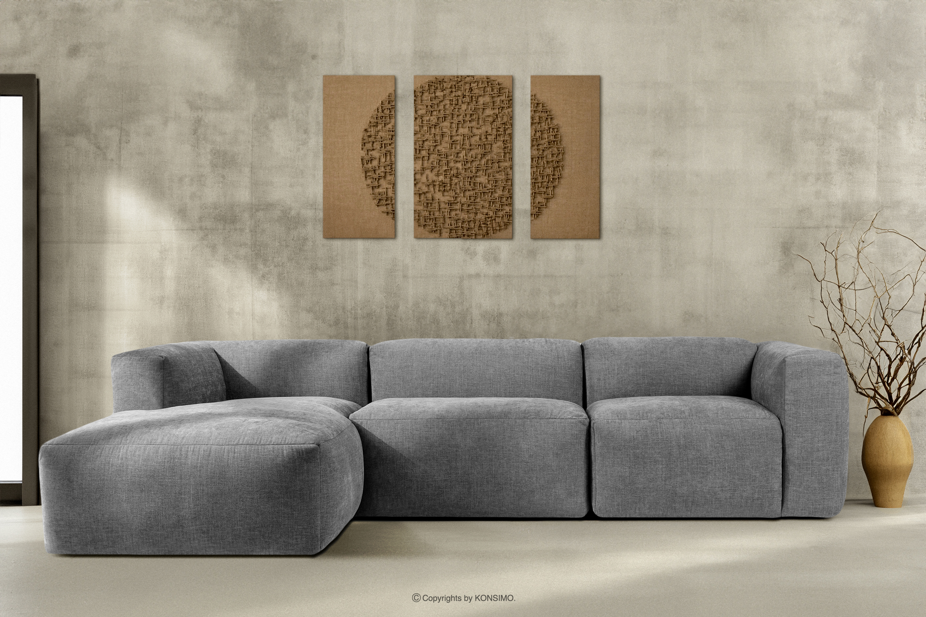 BUFFO zobacz całą kolekcję Narożnik modułowy w tkaninie plecionej jasny popielaty lewy- kolor jasny popielaty