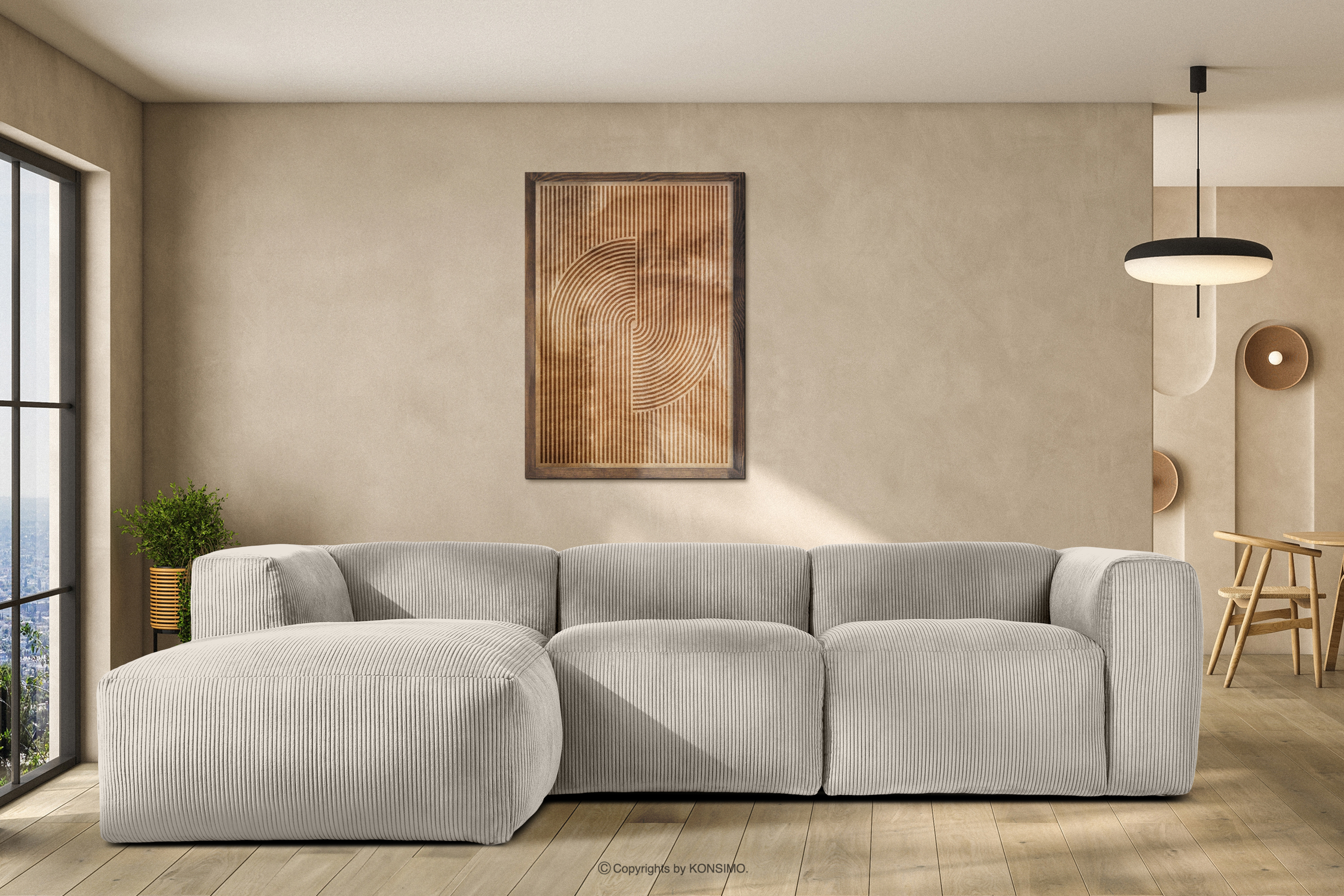 dla produktu Narożnik modułowy w tkaninie sztruks kremowy lewy