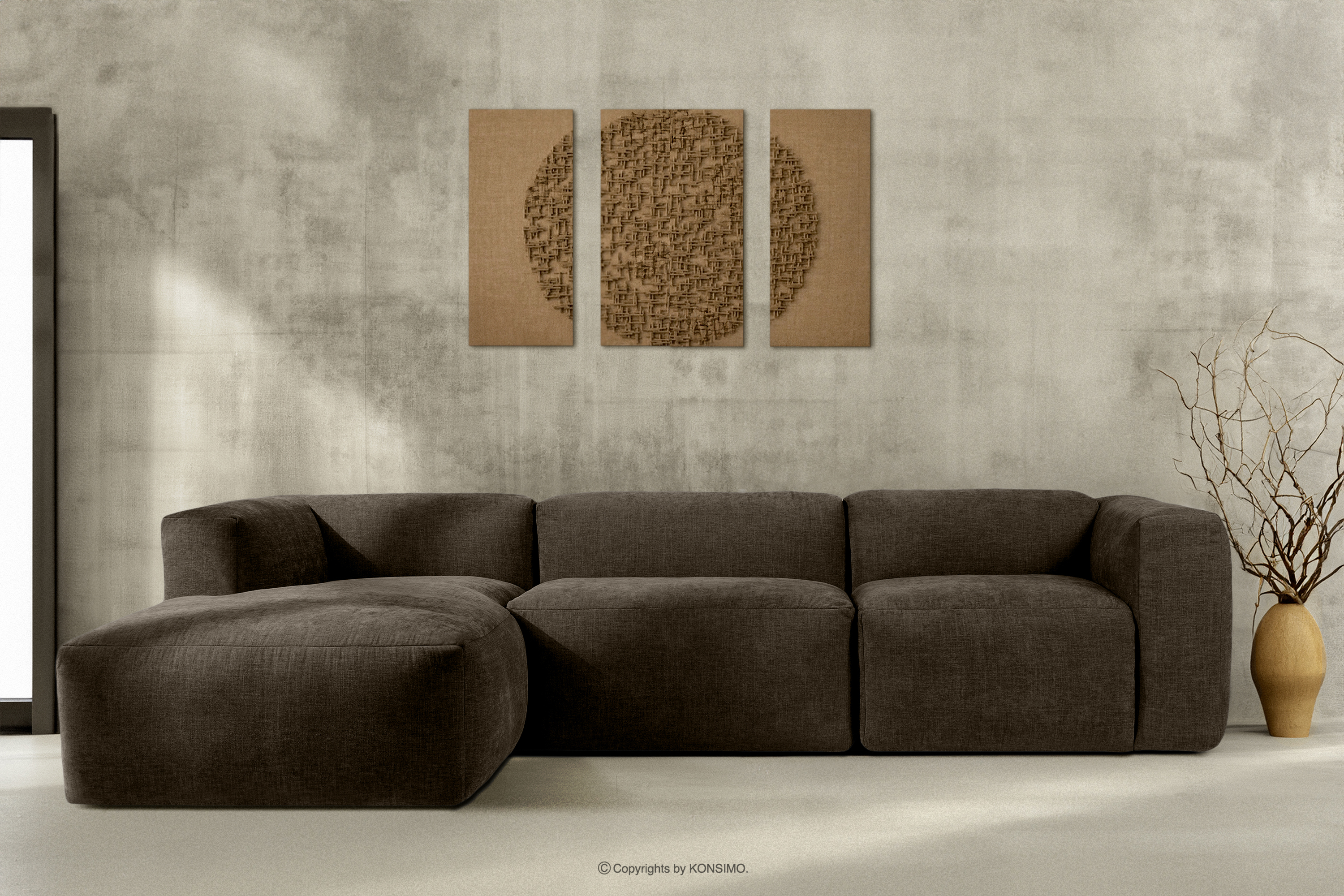 BUFFO Narożnik modułowy w tkaninie plecionej brązowy lewy