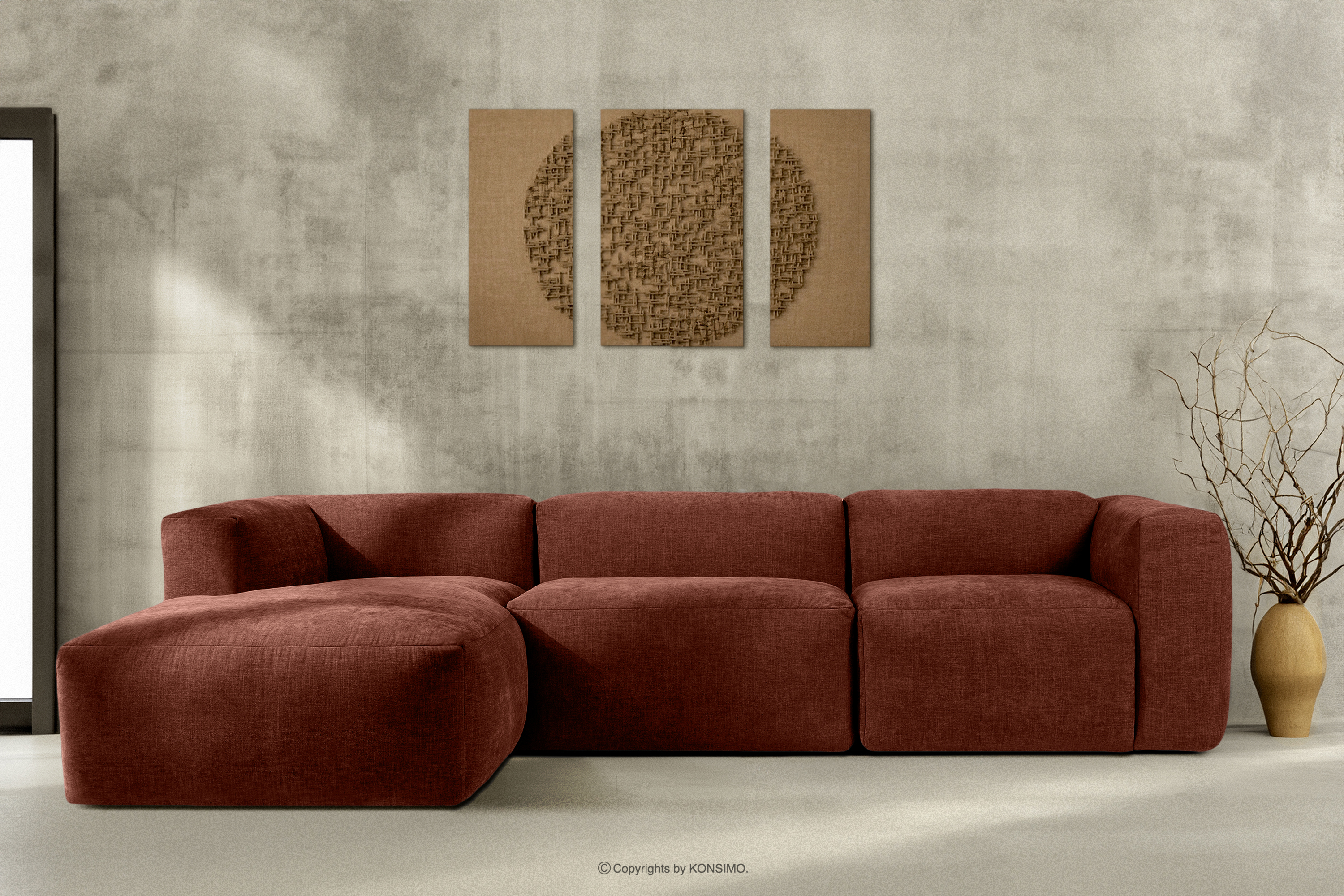 BUFFO zobacz całą kolekcję Narożnik modułowy w tkaninie plecionej pomarańczowy lewy- kolor pomarańczowy