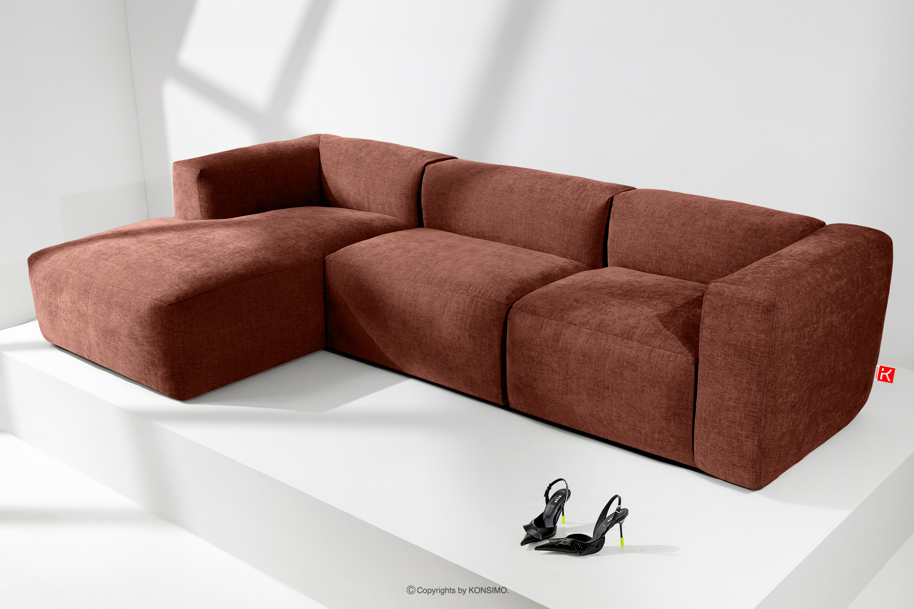 dla produktu Narożnik modułowy w tkaninie plecionej pomarańczowy lewy