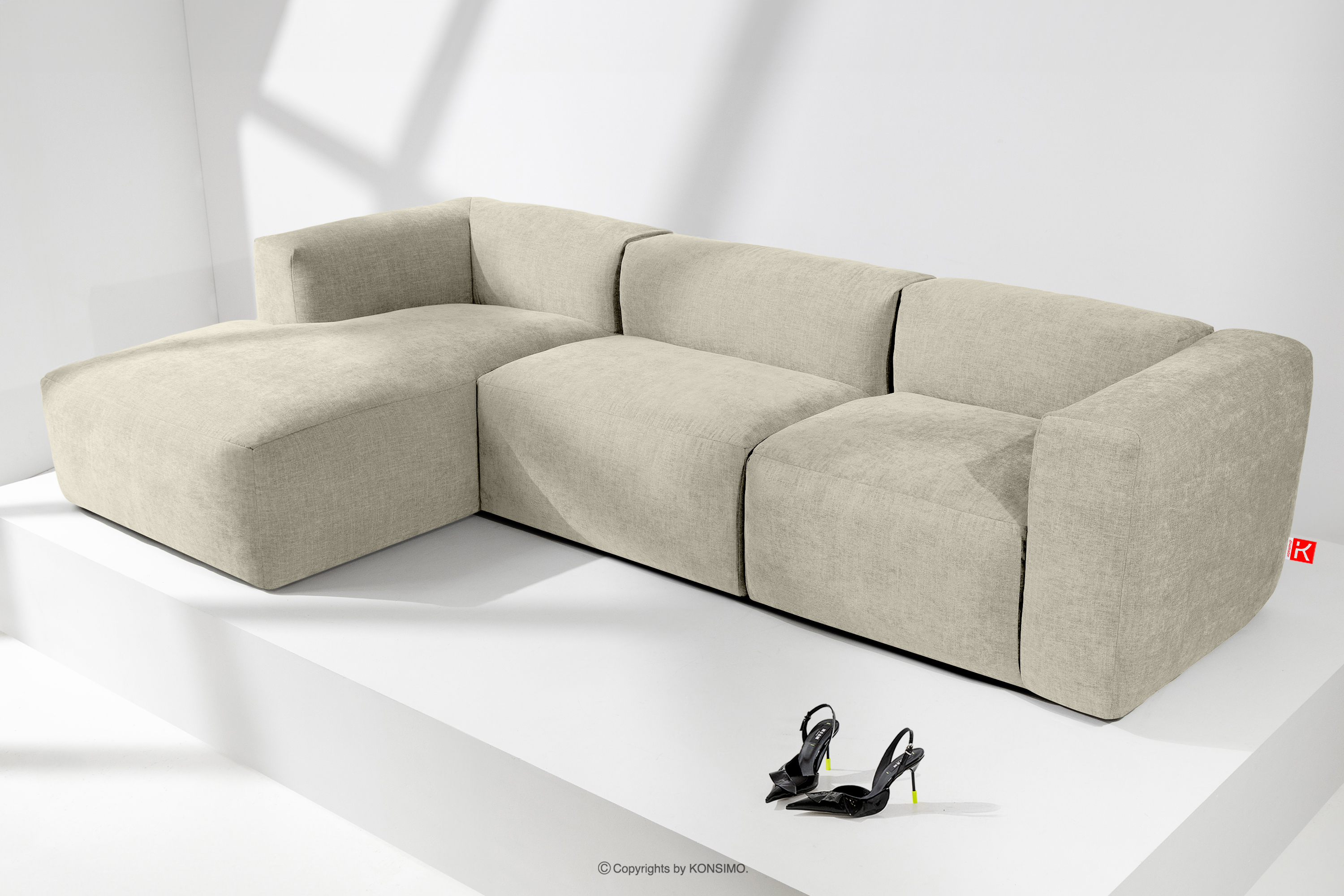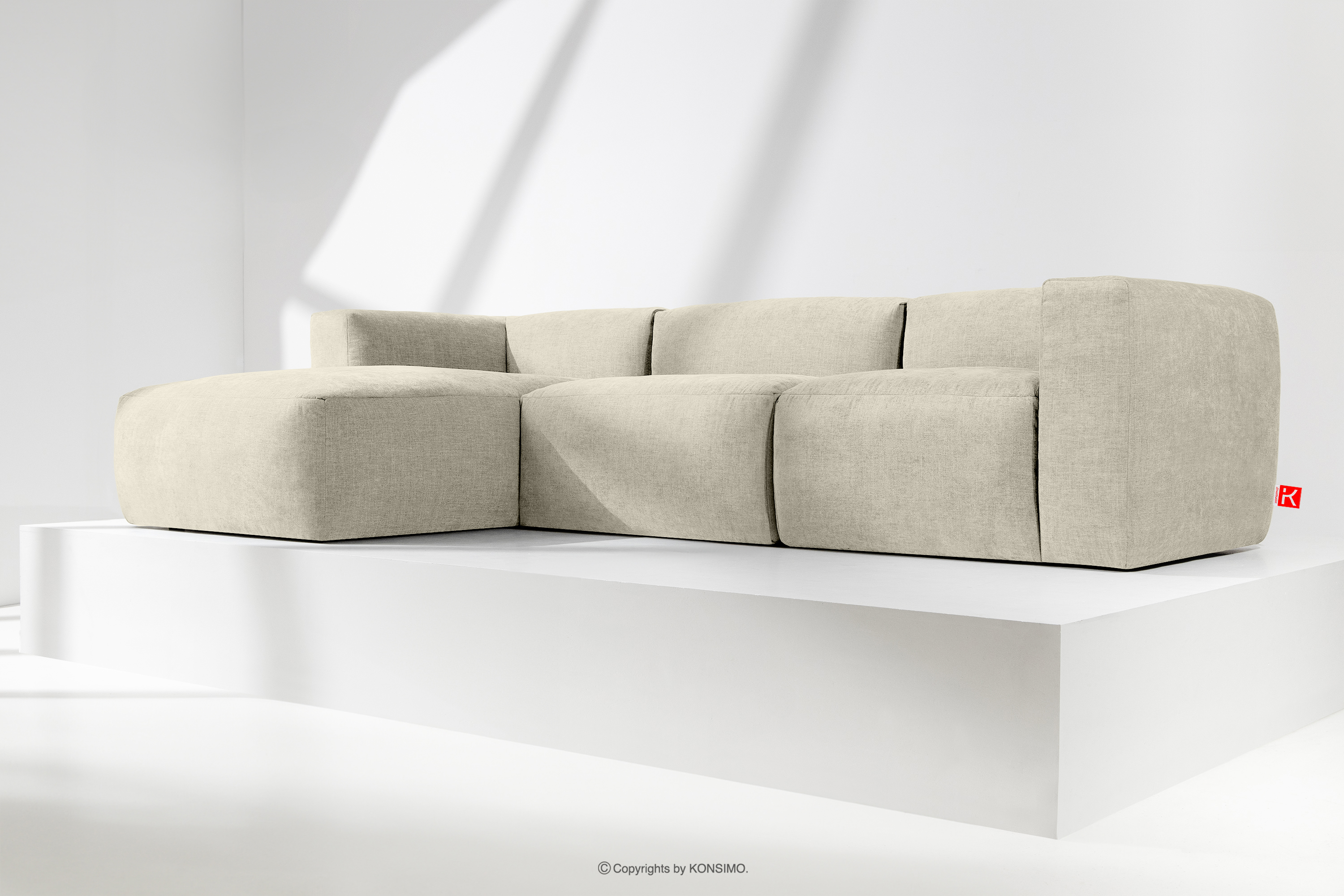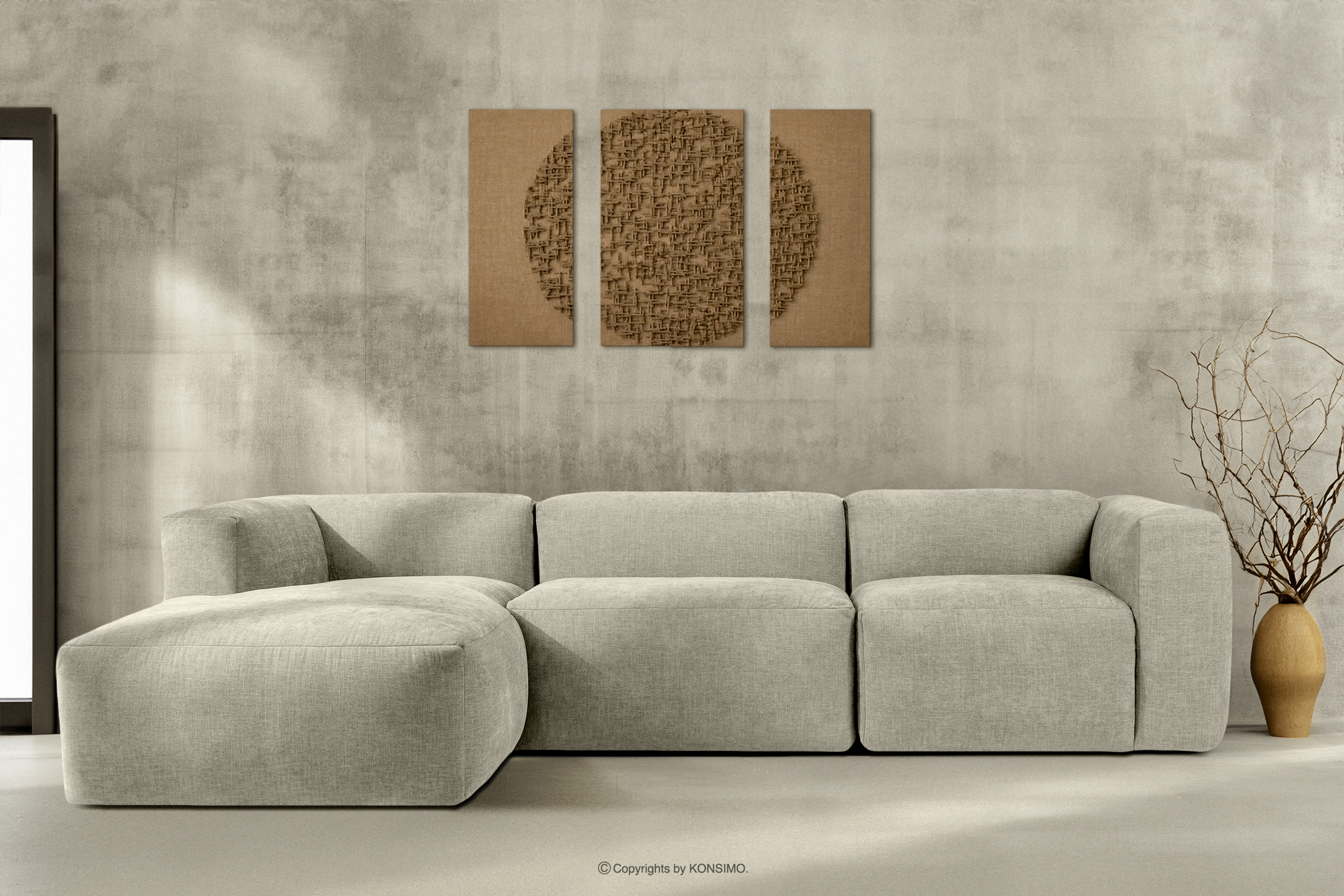 BUFFO Narożnik modułowy w tkaninie plecionej ecru lewy