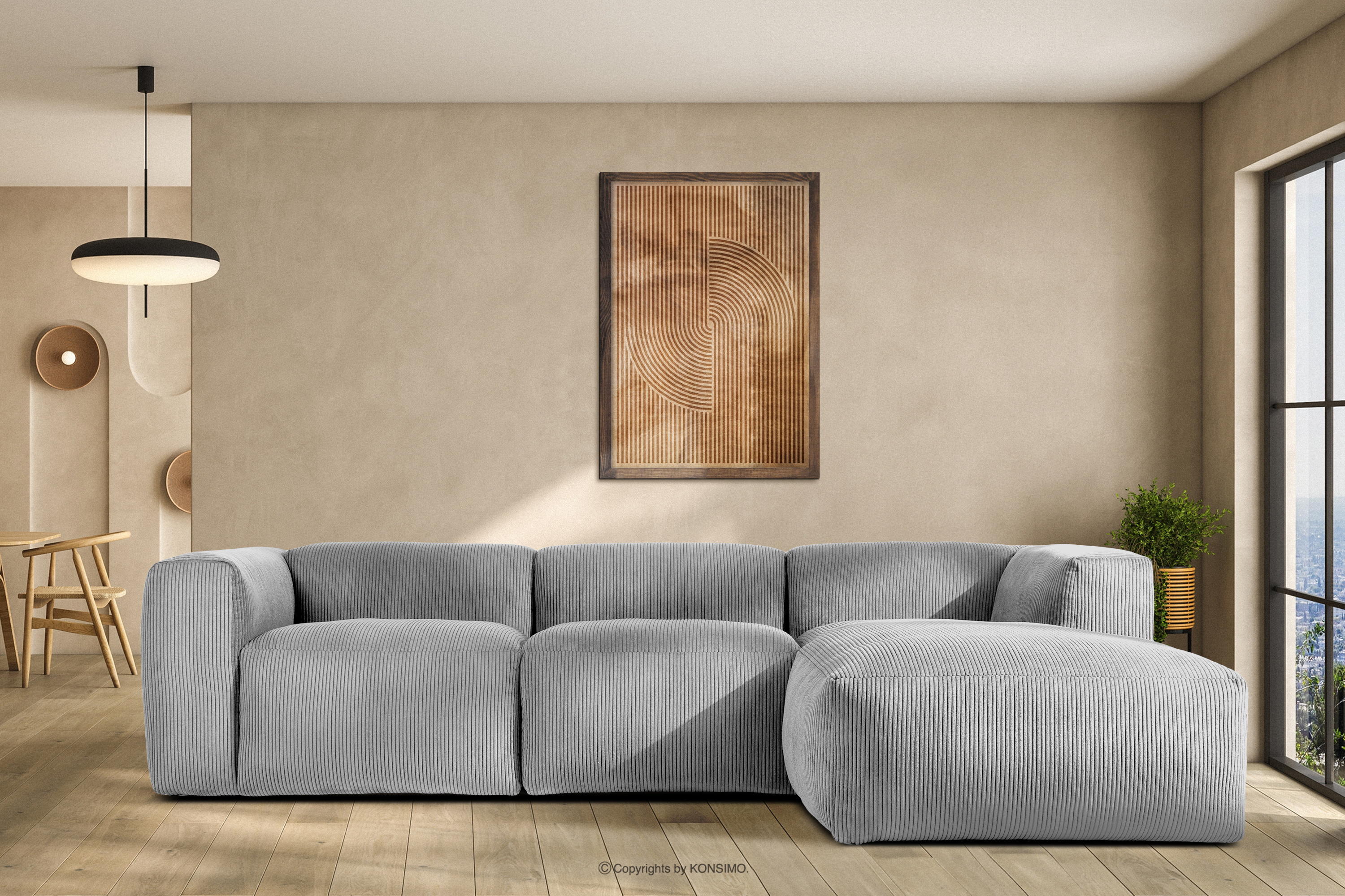 BUFFO zobacz całą kolekcję Narożnik modułowy w tkaninie sztruks jasny szary prawy- kolor jasny szary