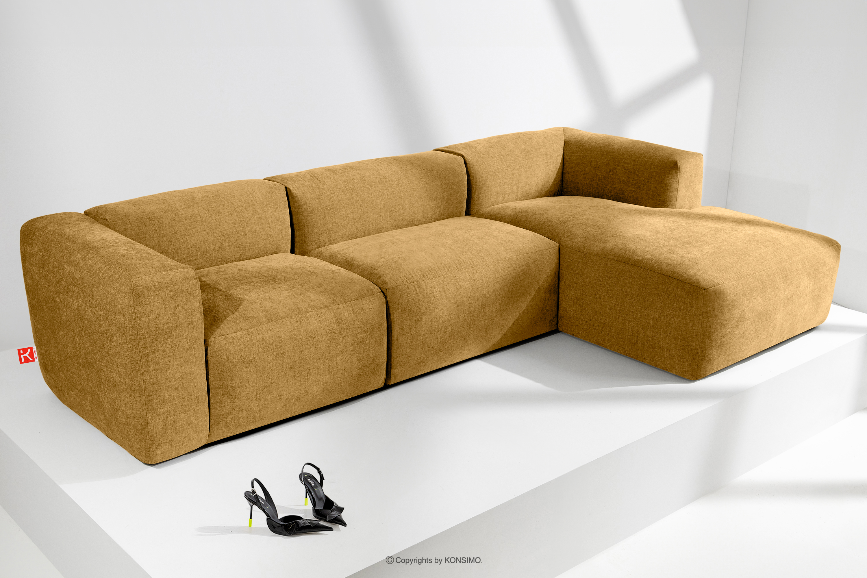 BUFFO zobacz całą kolekcję Narożnik modułowy w tkaninie plecionej miodowy prawy- kolor miodowy