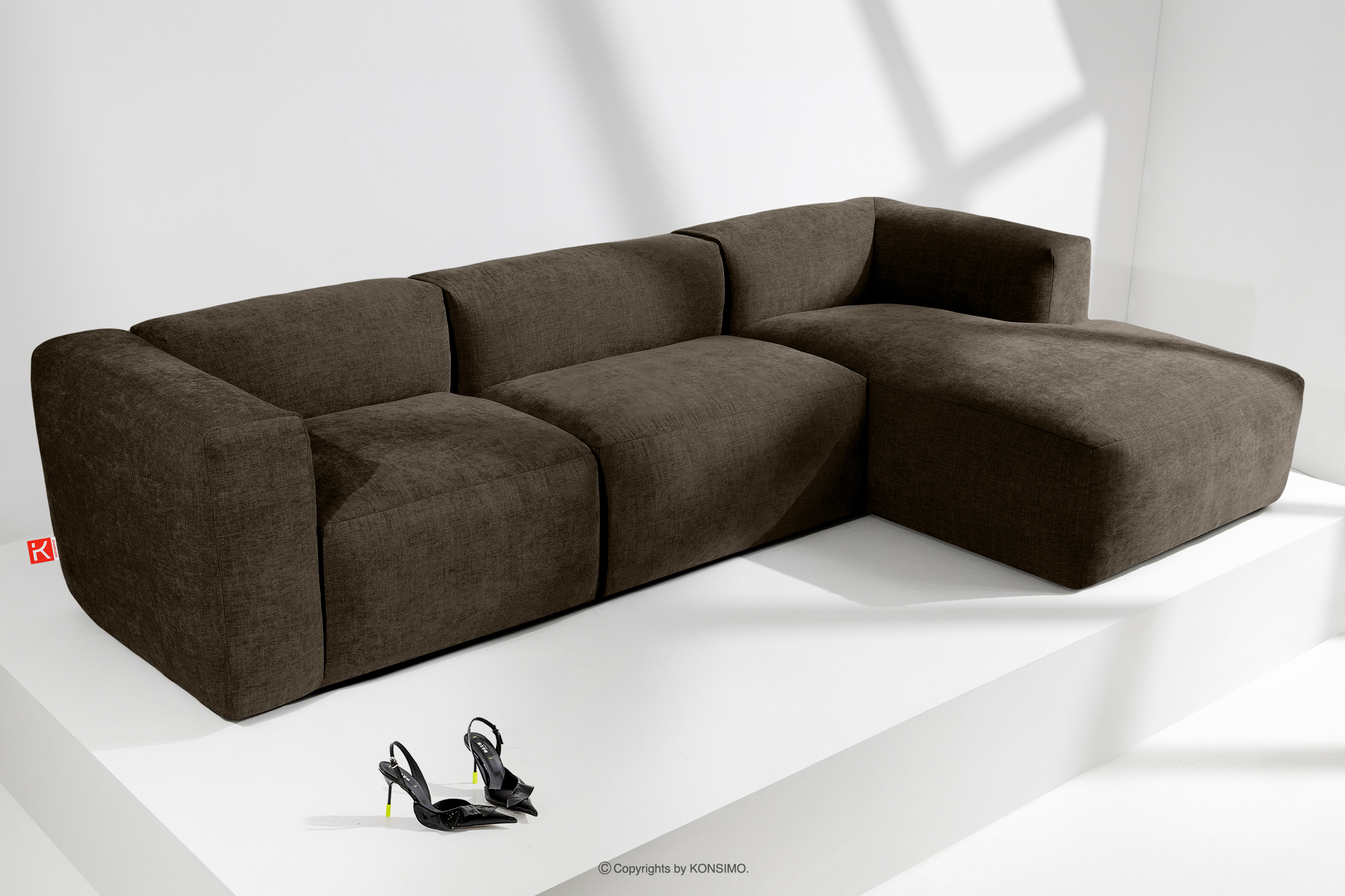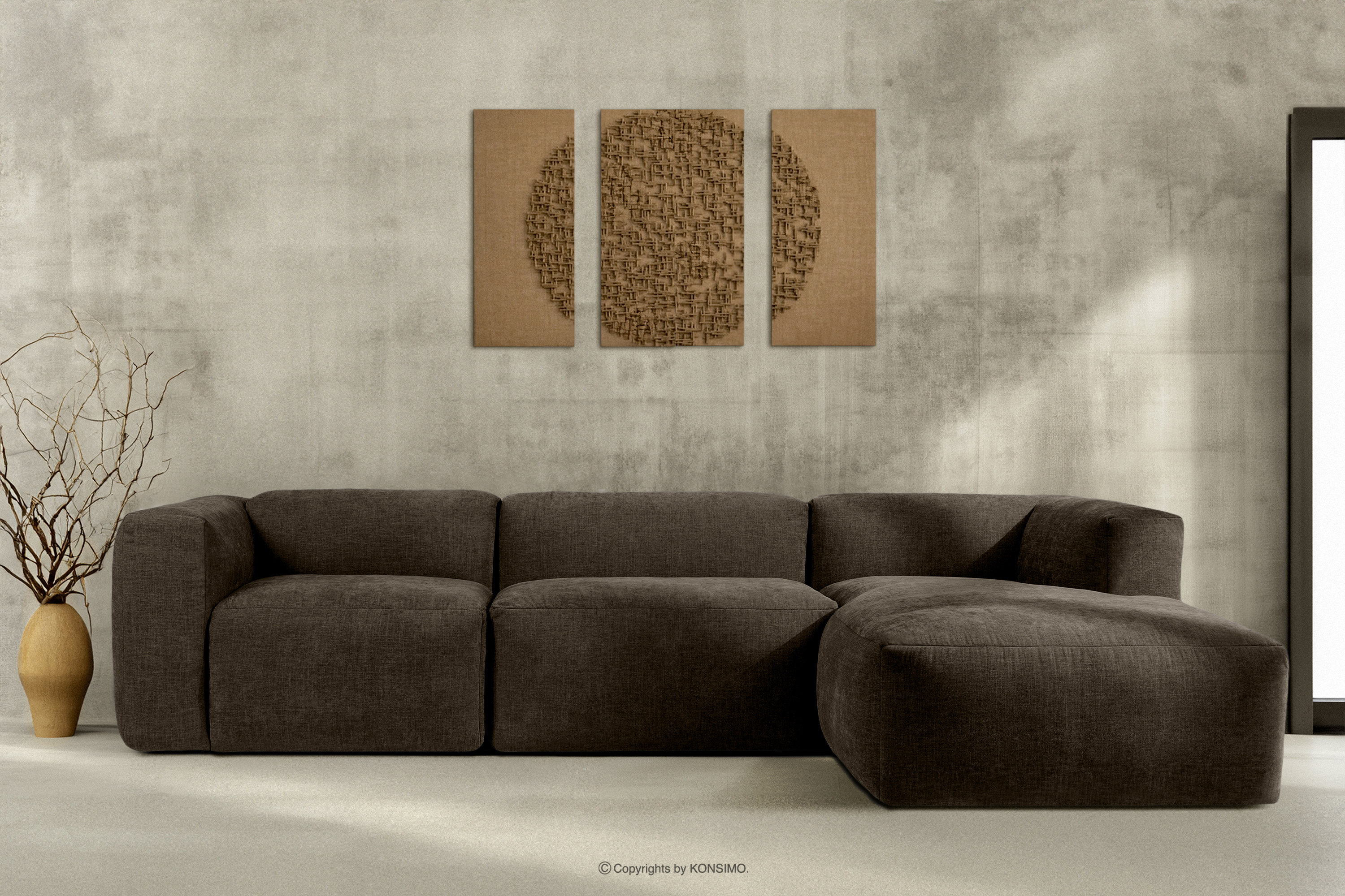 BUFFO Narożnik modułowy w tkaninie plecionej brązowy prawy