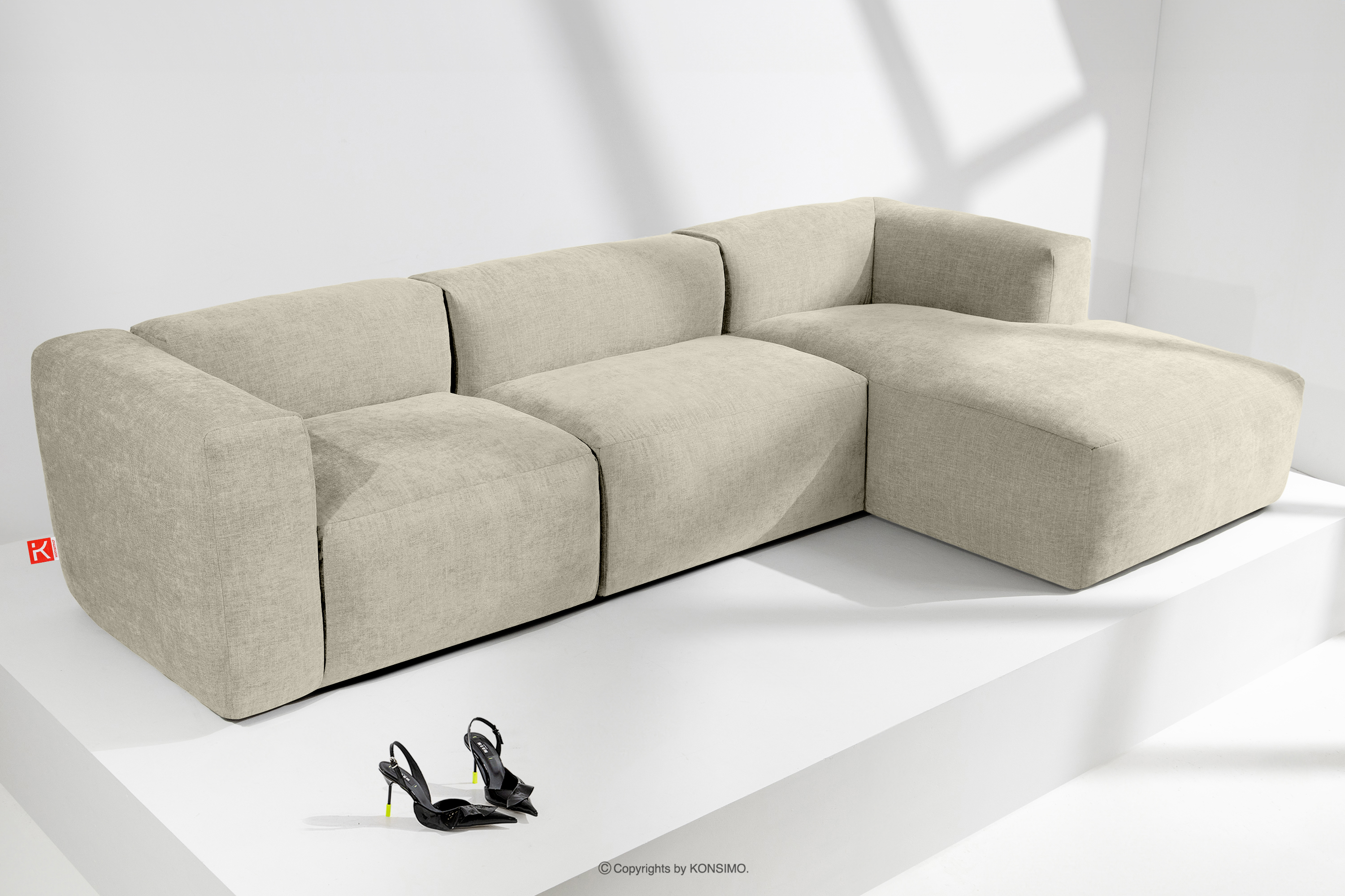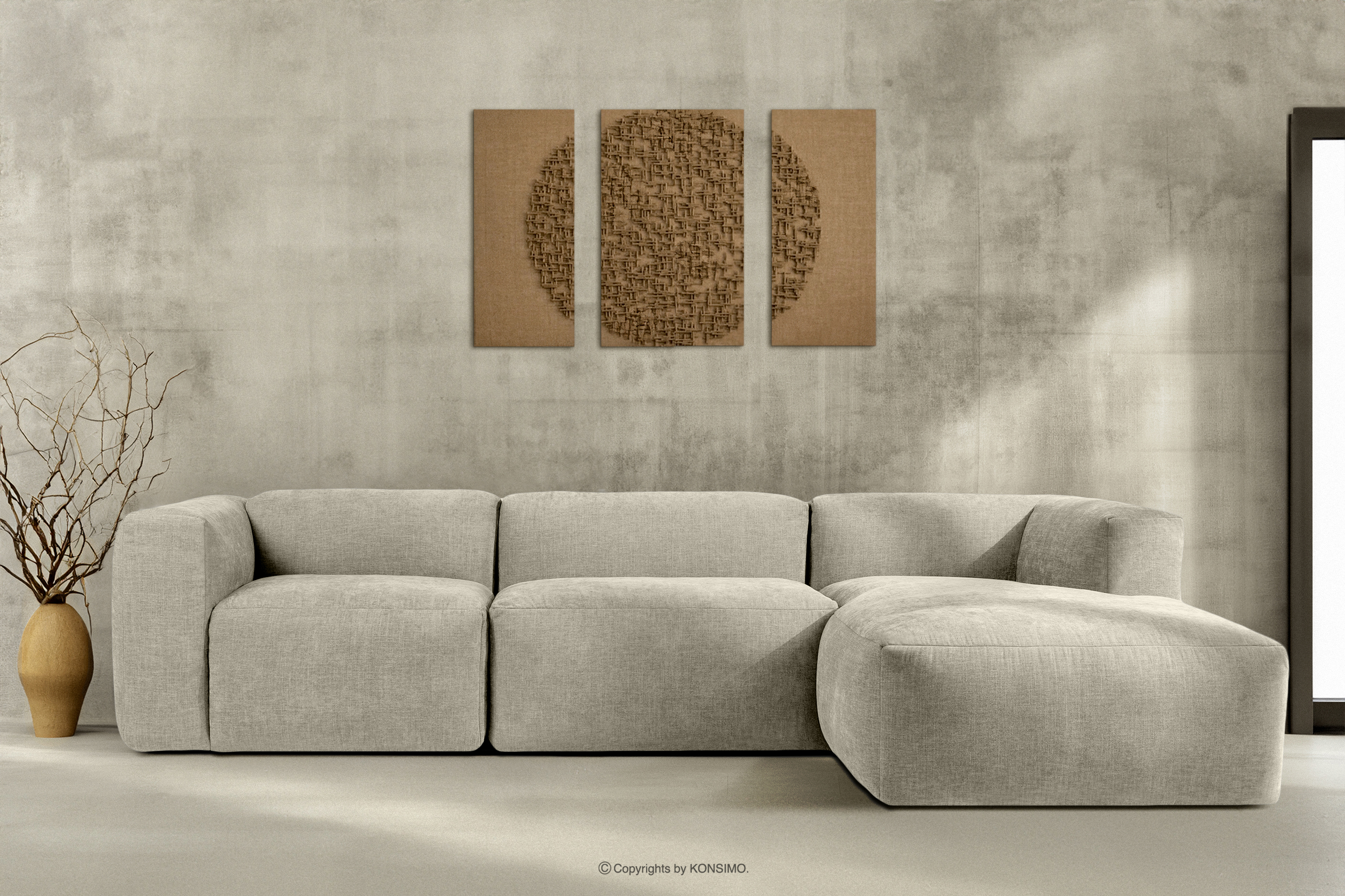 dla produktu Narożnik modułowy w tkaninie plecionej ecru prawy