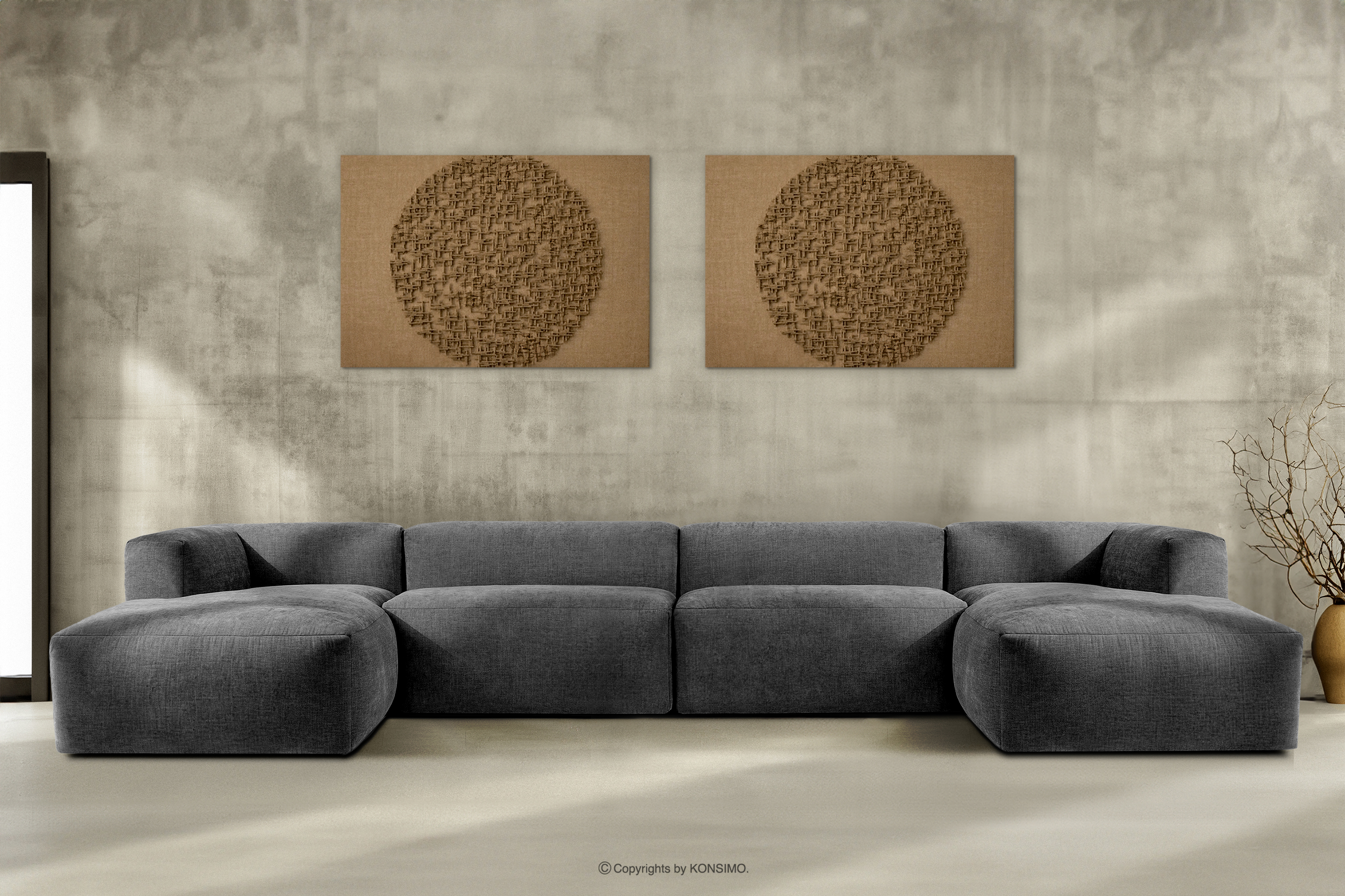 BUFFO zobacz całą kolekcję Duży narożnik w kształcie U modułowy tkanina pleciona popielaty- kolor popielaty