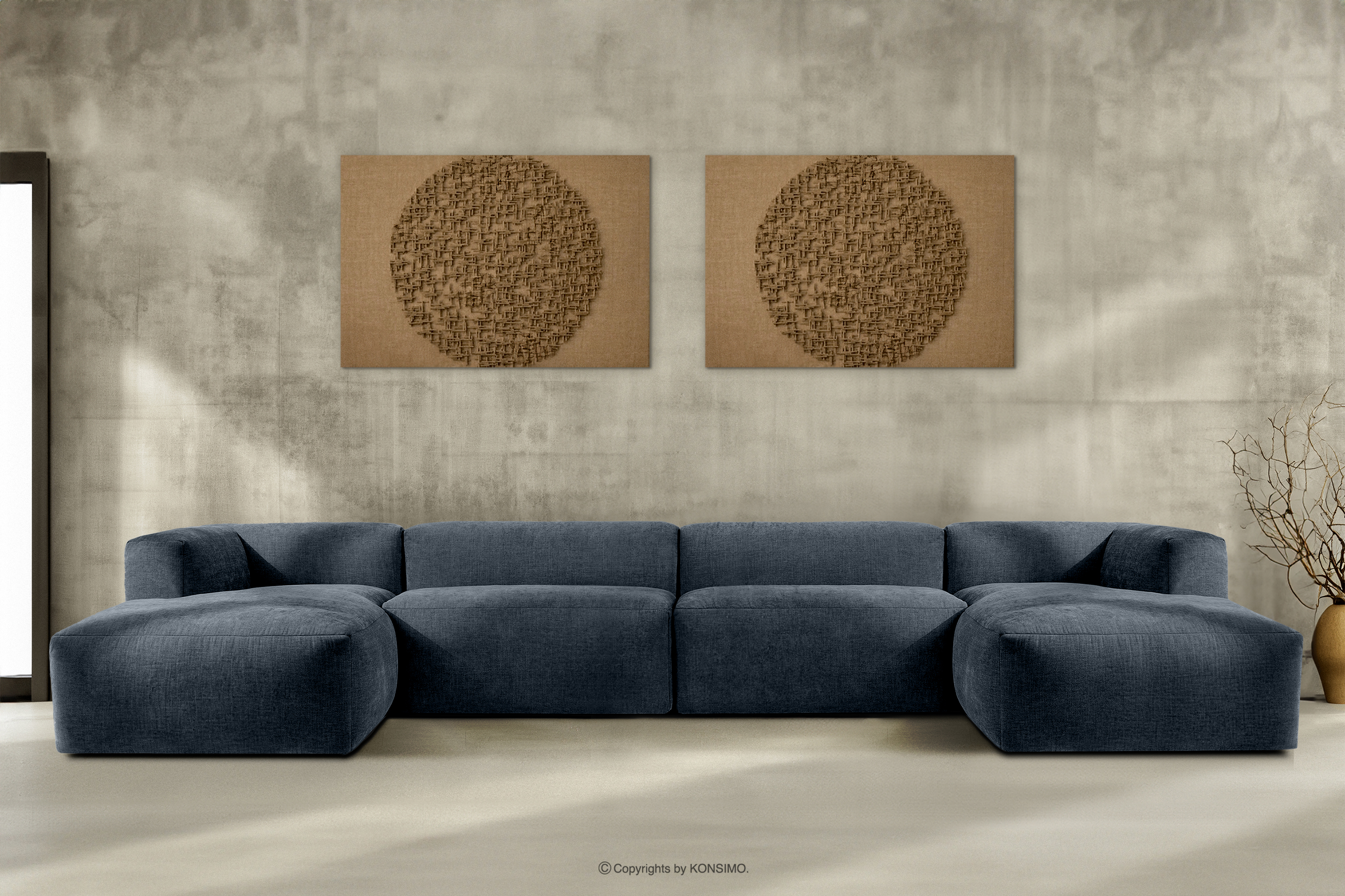 BUFFO zobacz całą kolekcję Duży narożnik w kształcie U modułowy tkanina pleciona ciemny niebieski- kolor ciemny niebieski