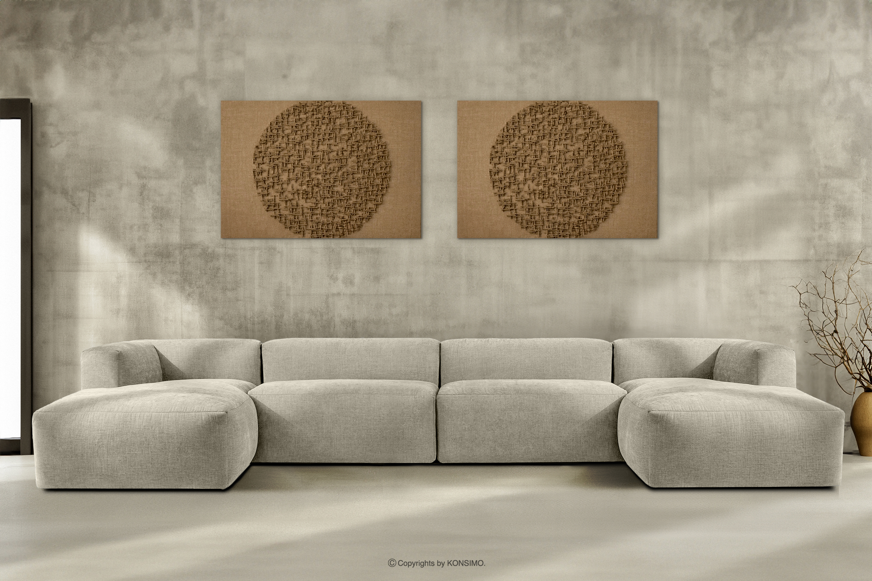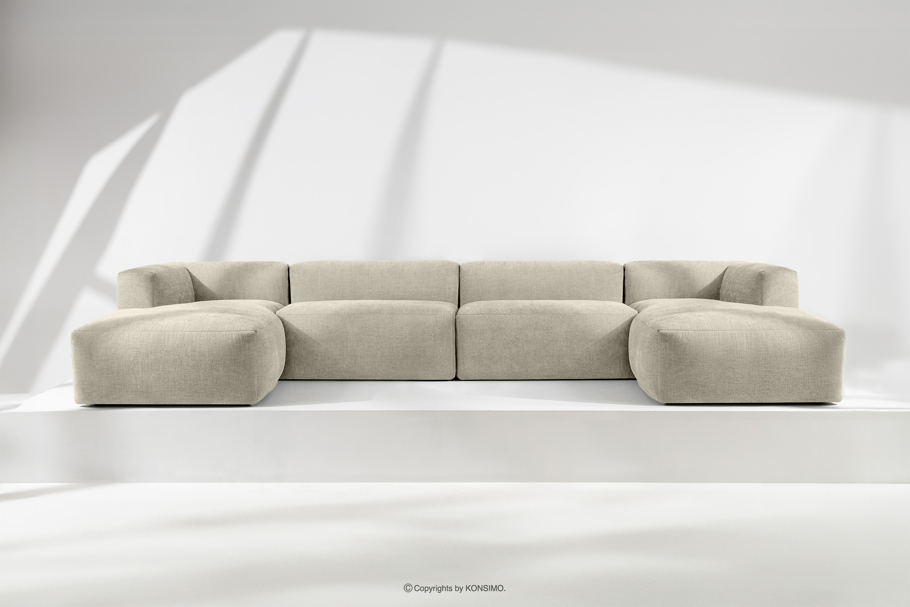 BUFFO zobacz całą kolekcję Duży narożnik w kształcie U modułowy tkanina pleciona ecru- kolor ecru