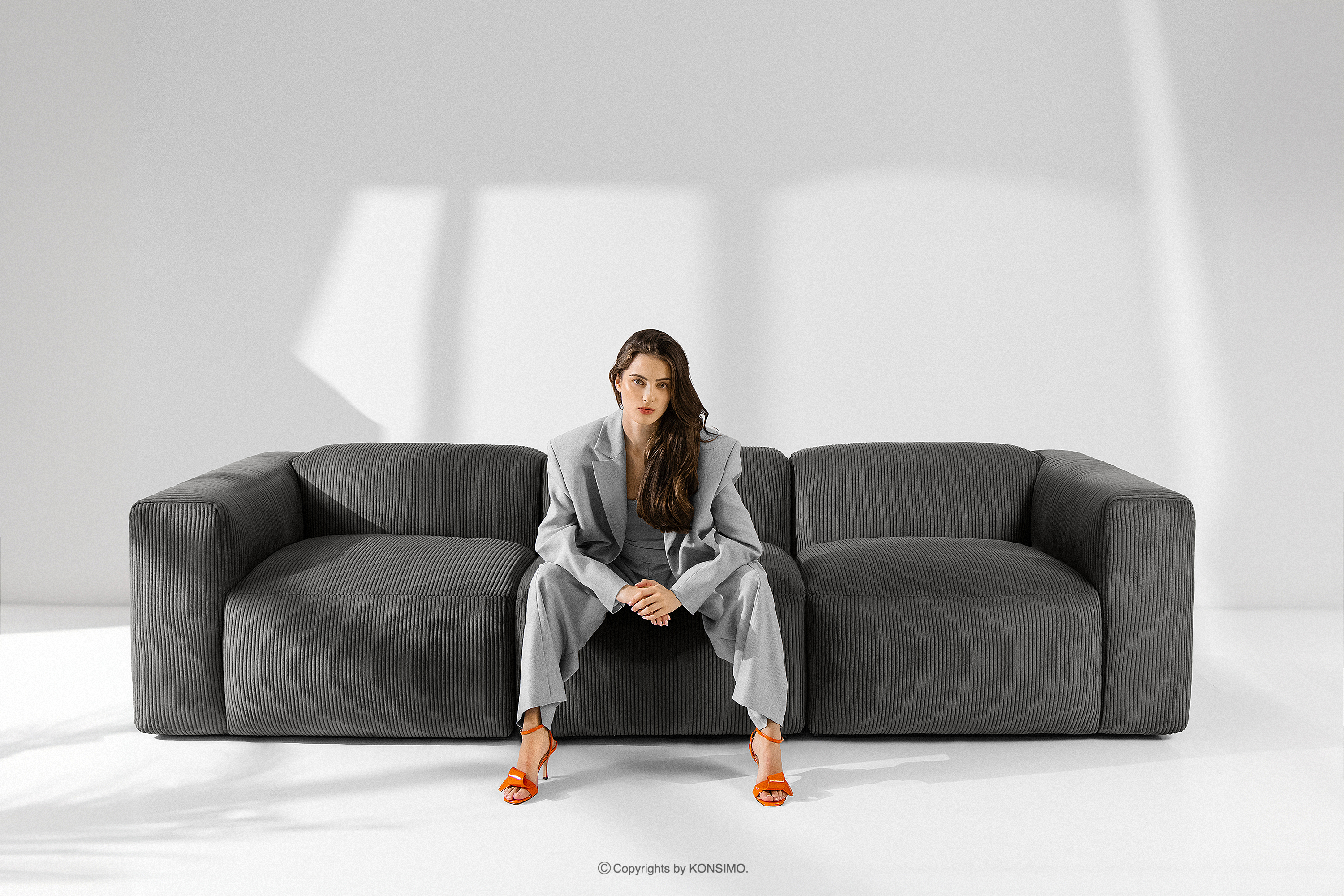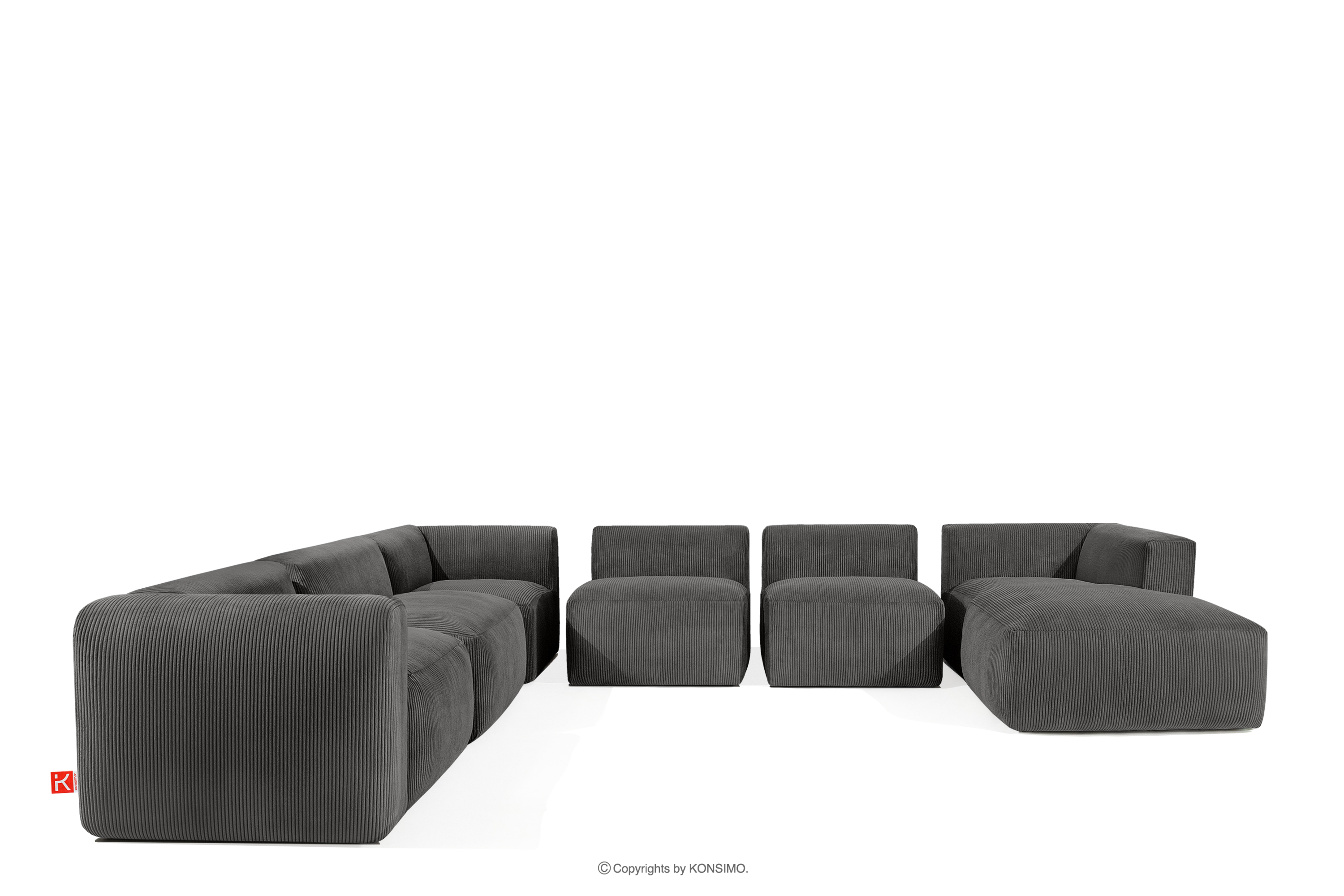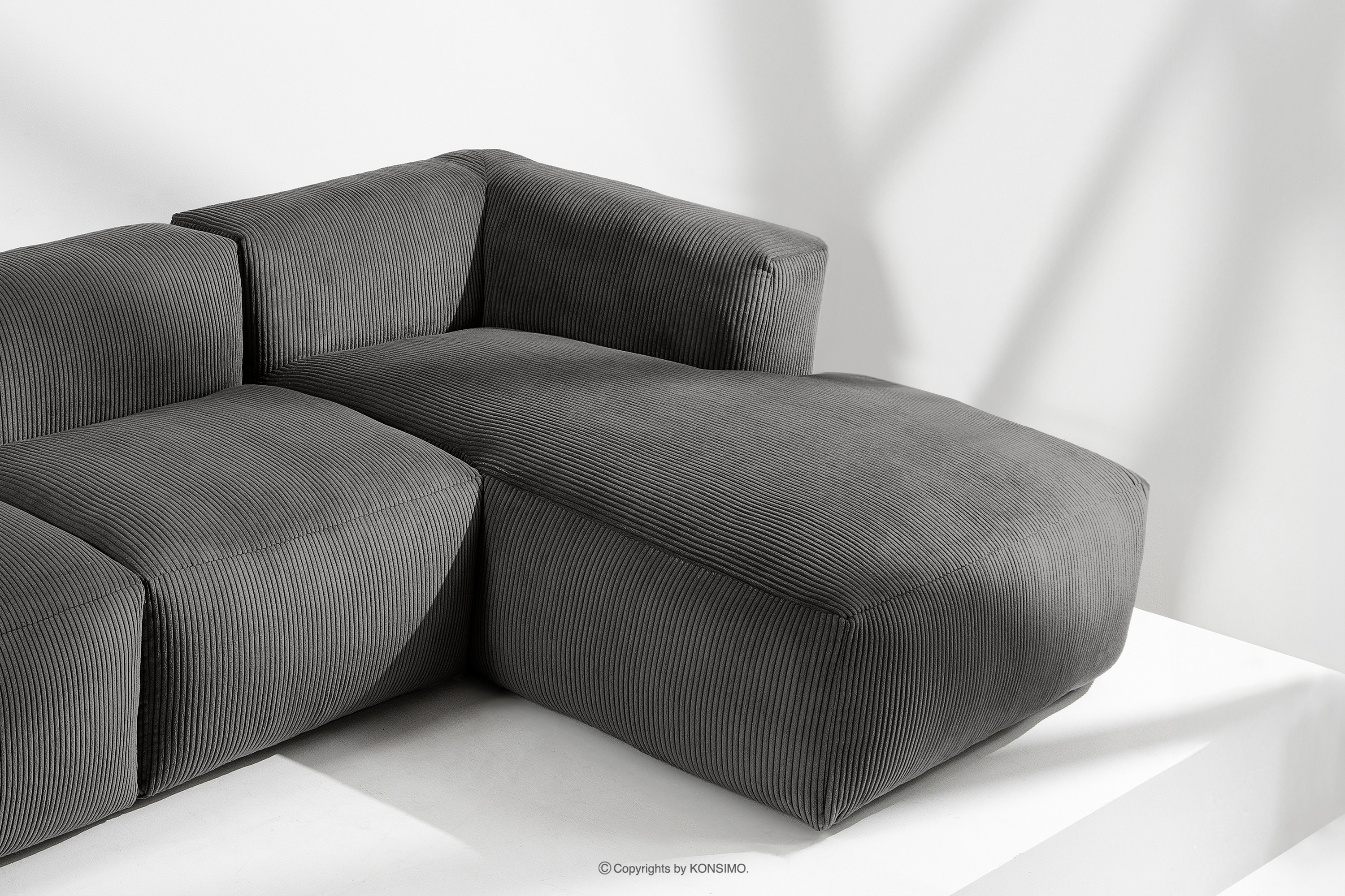 BUFFO zobacz całą kolekcję Duży narożnik w tkaninie sztruks szary- kolor szary