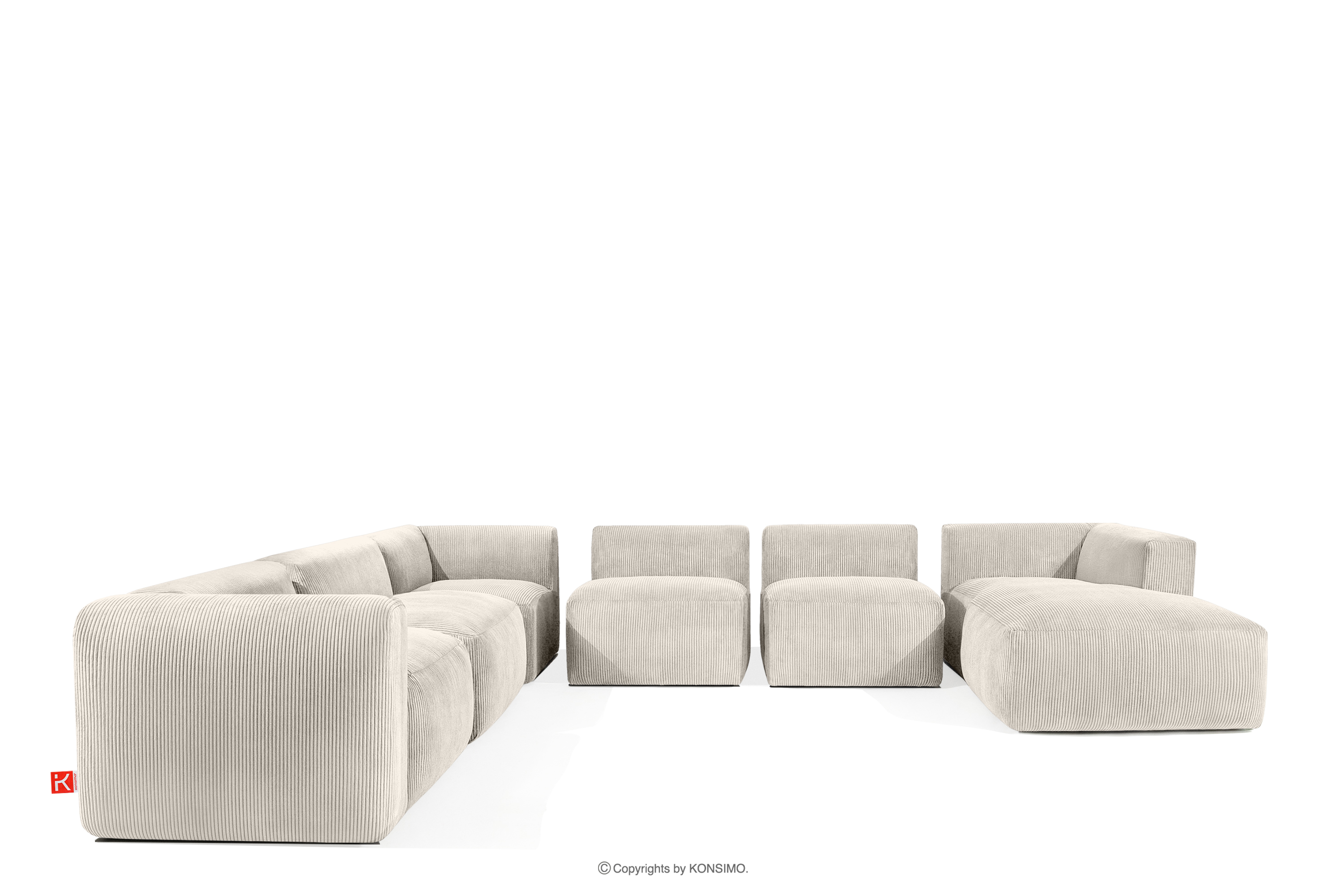 BUFFO zobacz całą kolekcję Duży narożnik w tkaninie sztruks kremowy- kolor kremowy