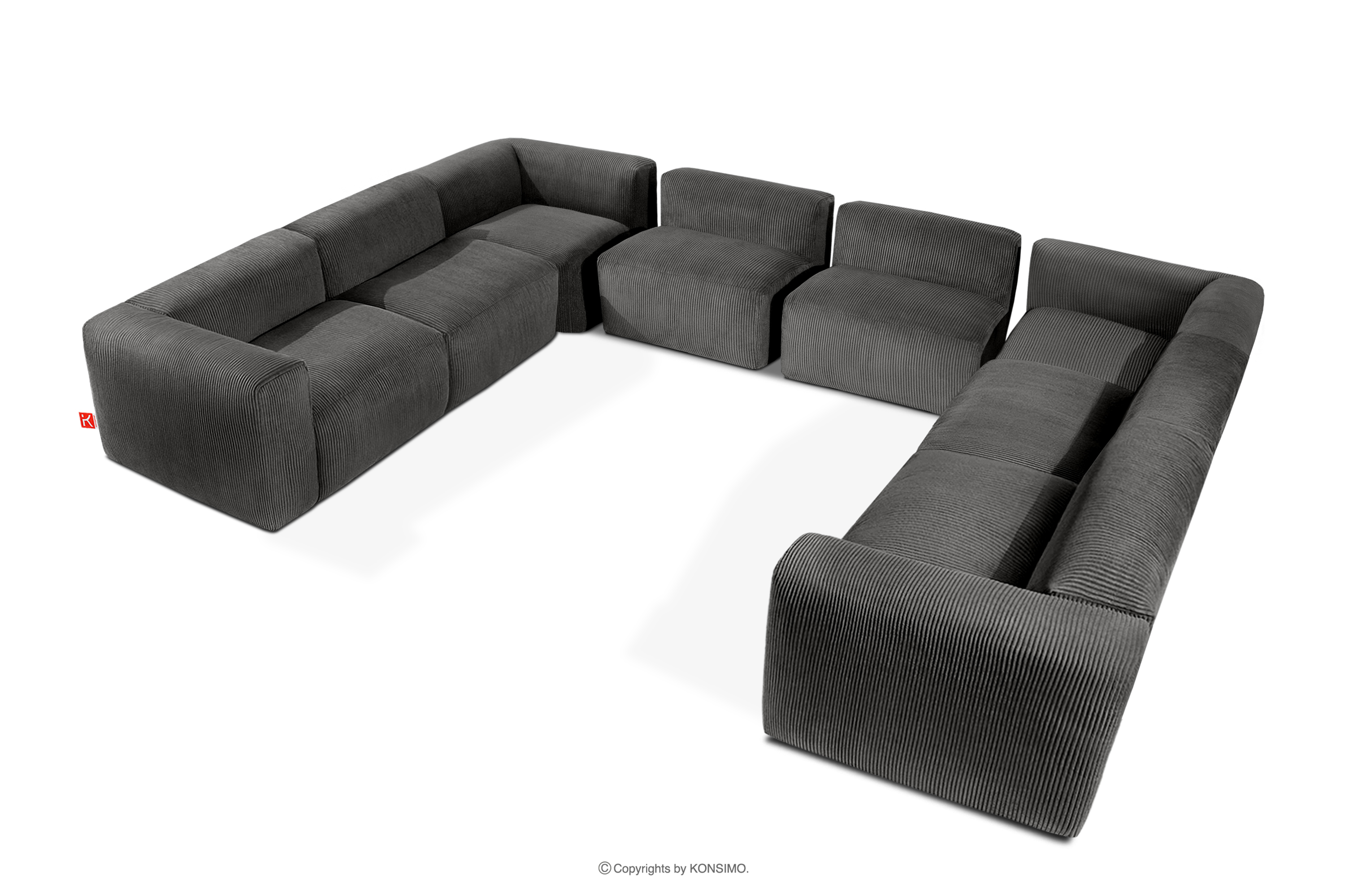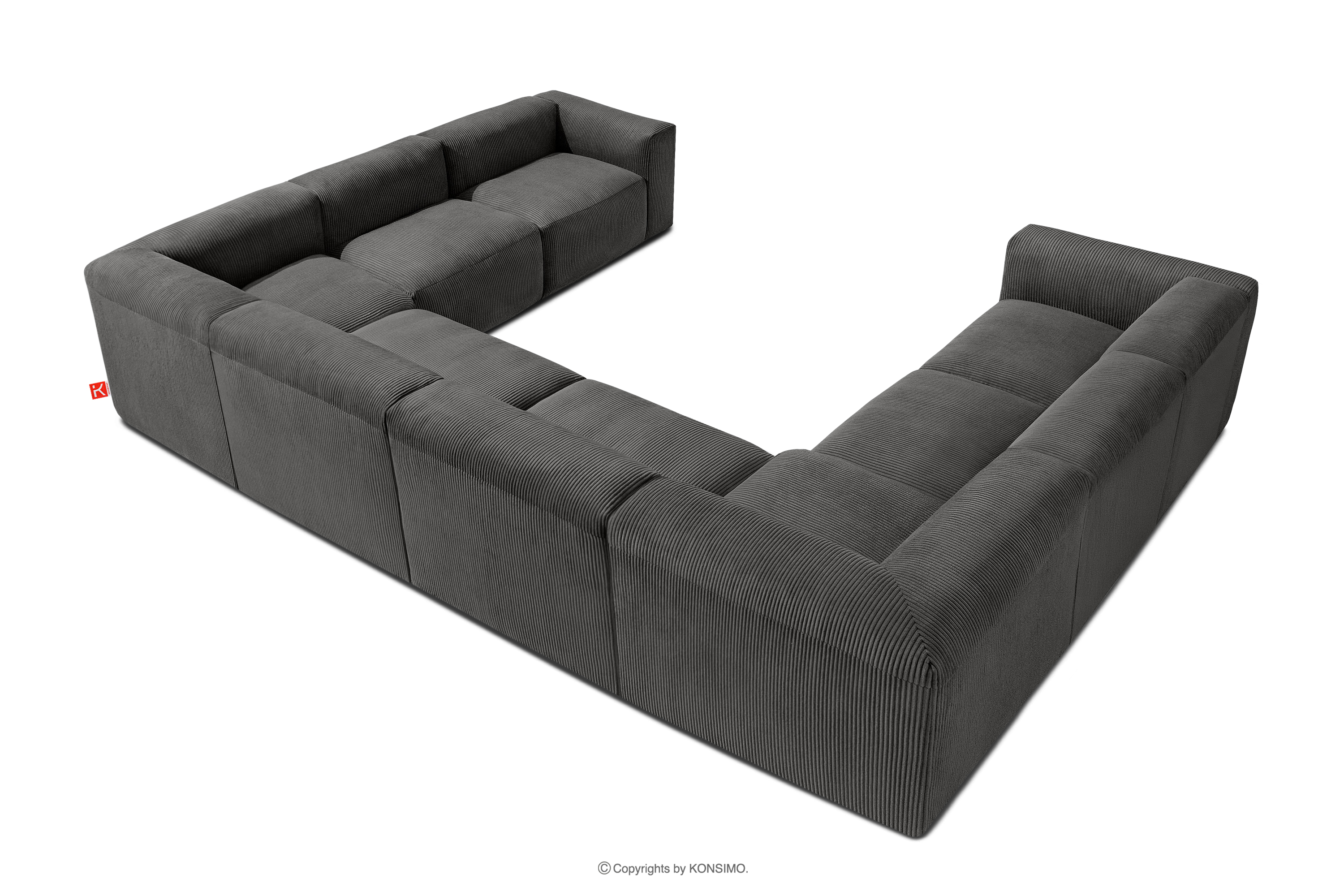 BUFFO zobacz całą kolekcję Duży narożnik boho U w tkaninie sztruks szary- kolor szary