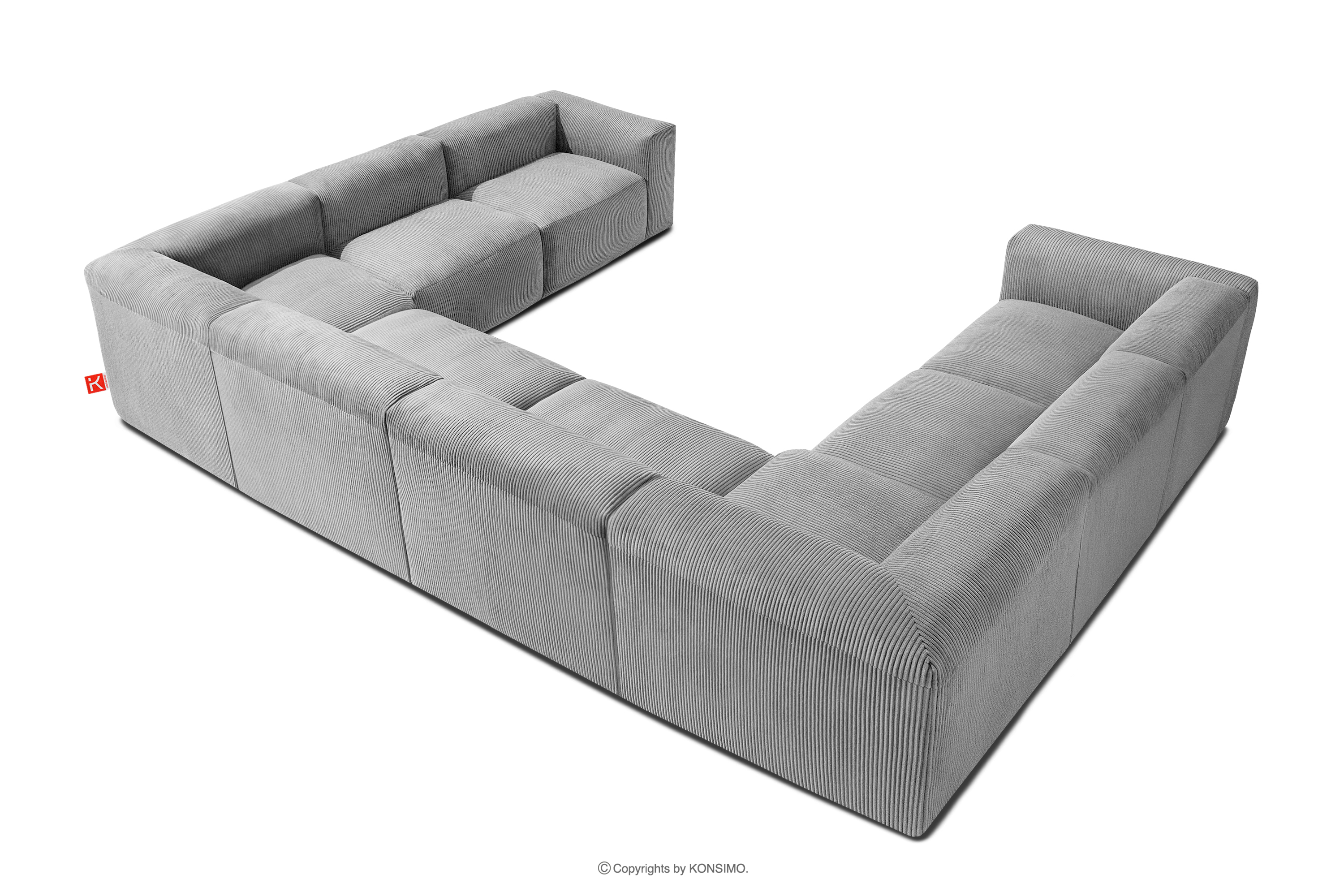 BUFFO zobacz całą kolekcję Duży narożnik boho U w tkaninie sztruks jasny szary- kolor jasny szary