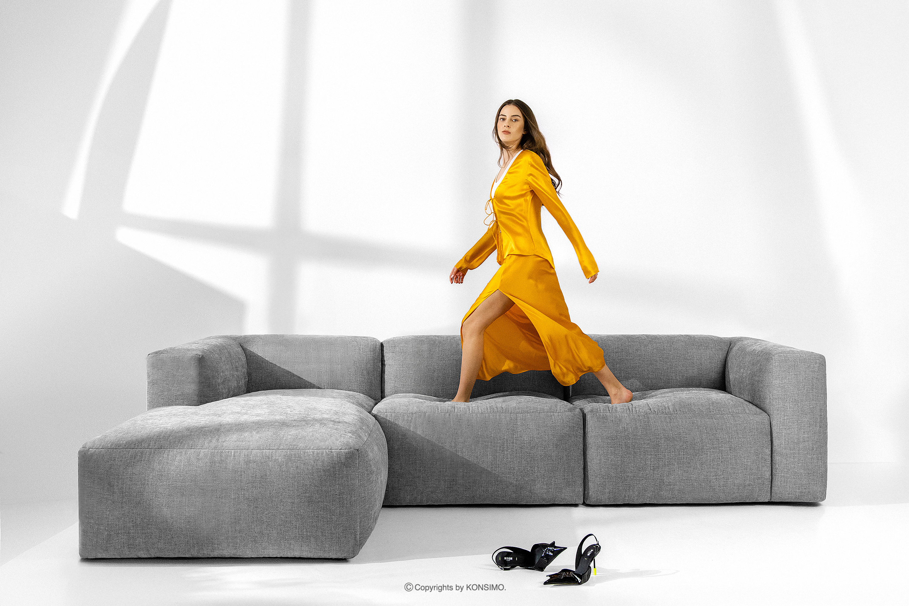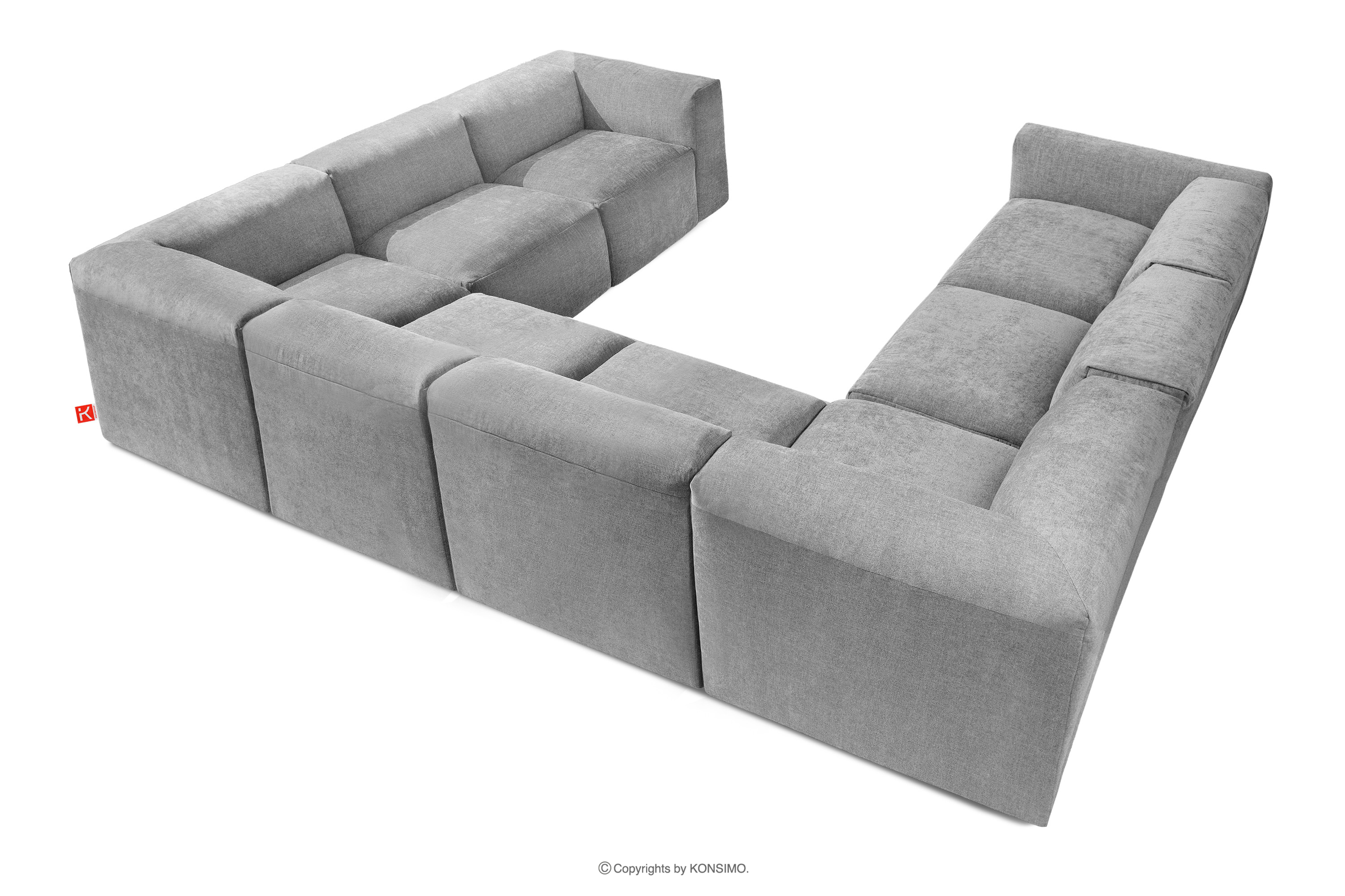 BUFFO zobacz całą kolekcję Duży narożnik boho U w tkaninie plecionej jasny popielaty- kolor jasny popielaty