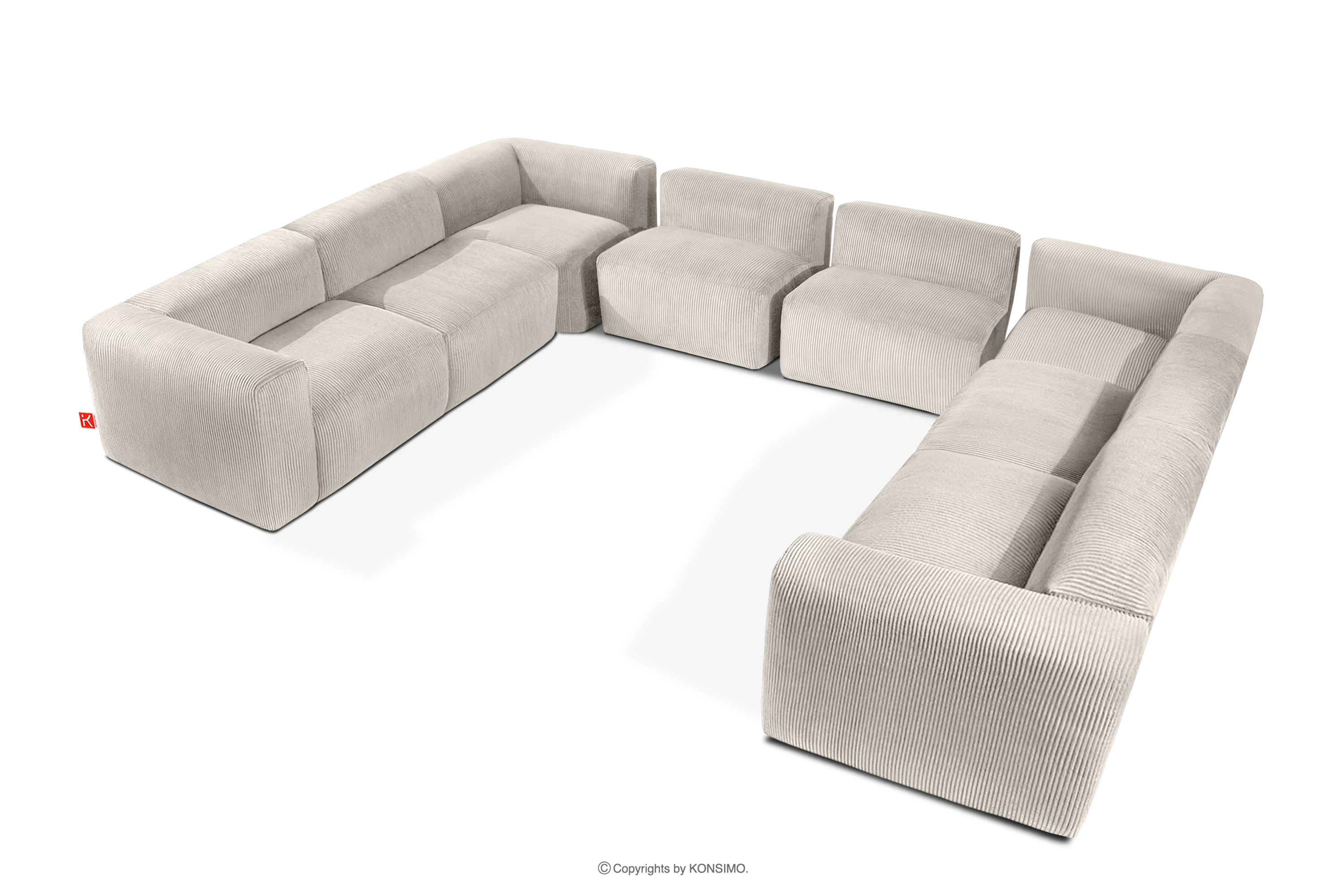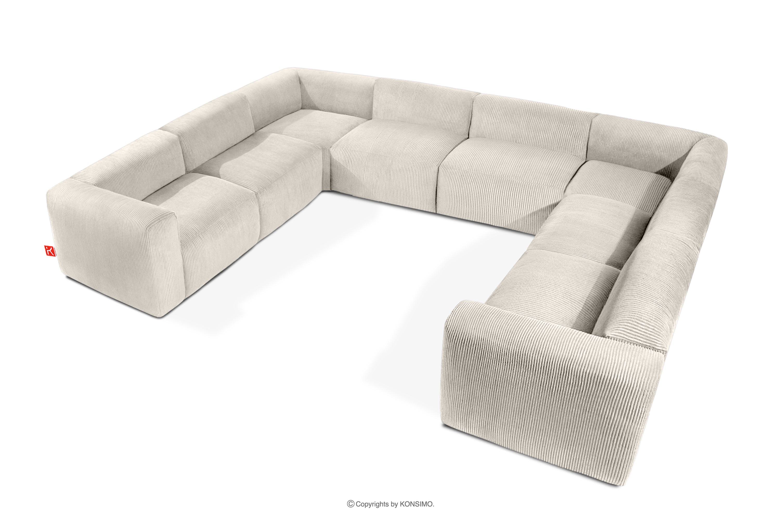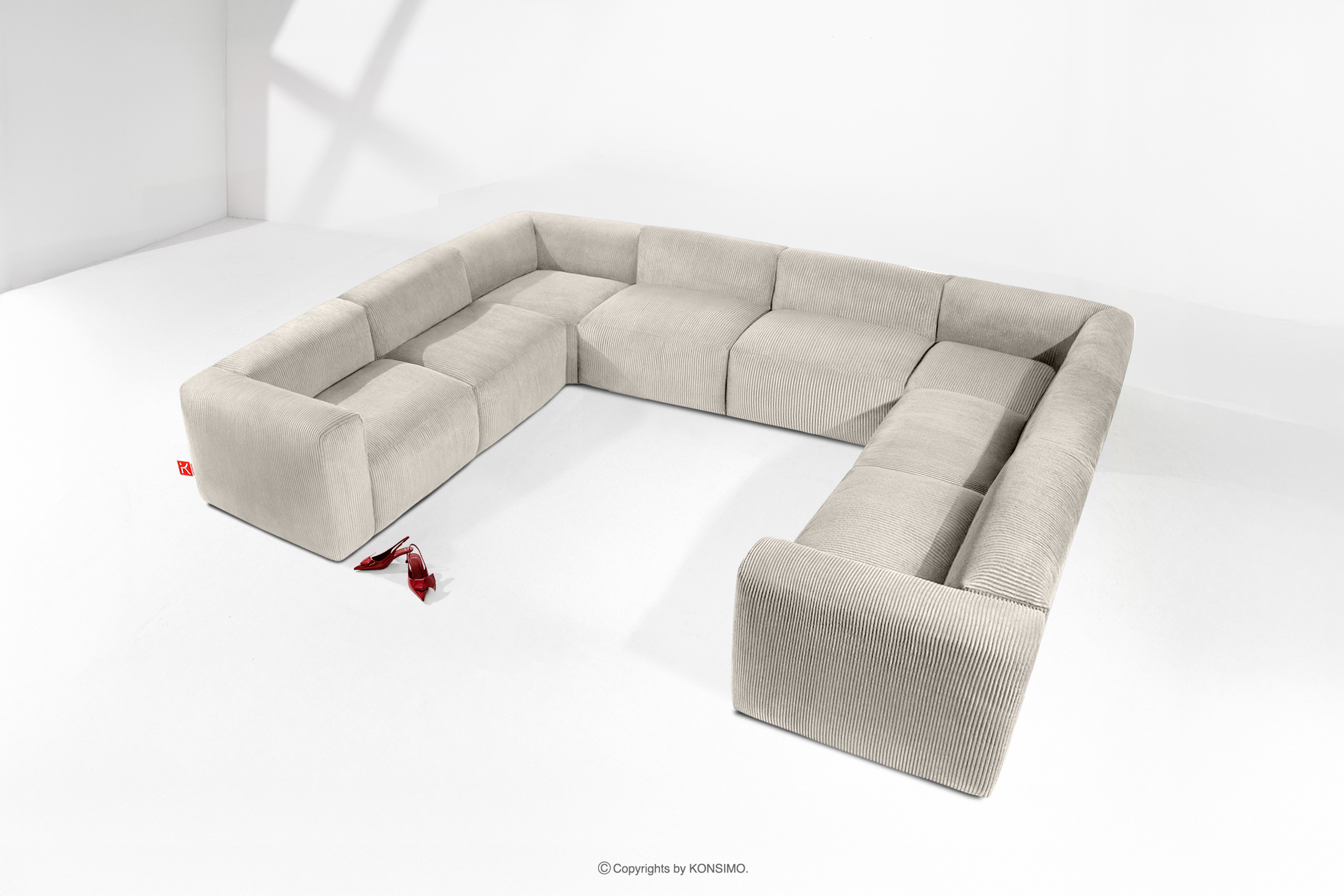 BUFFO zobacz całą kolekcję Duży narożnik boho U w tkaninie sztruks kremowy- kolor kremowy