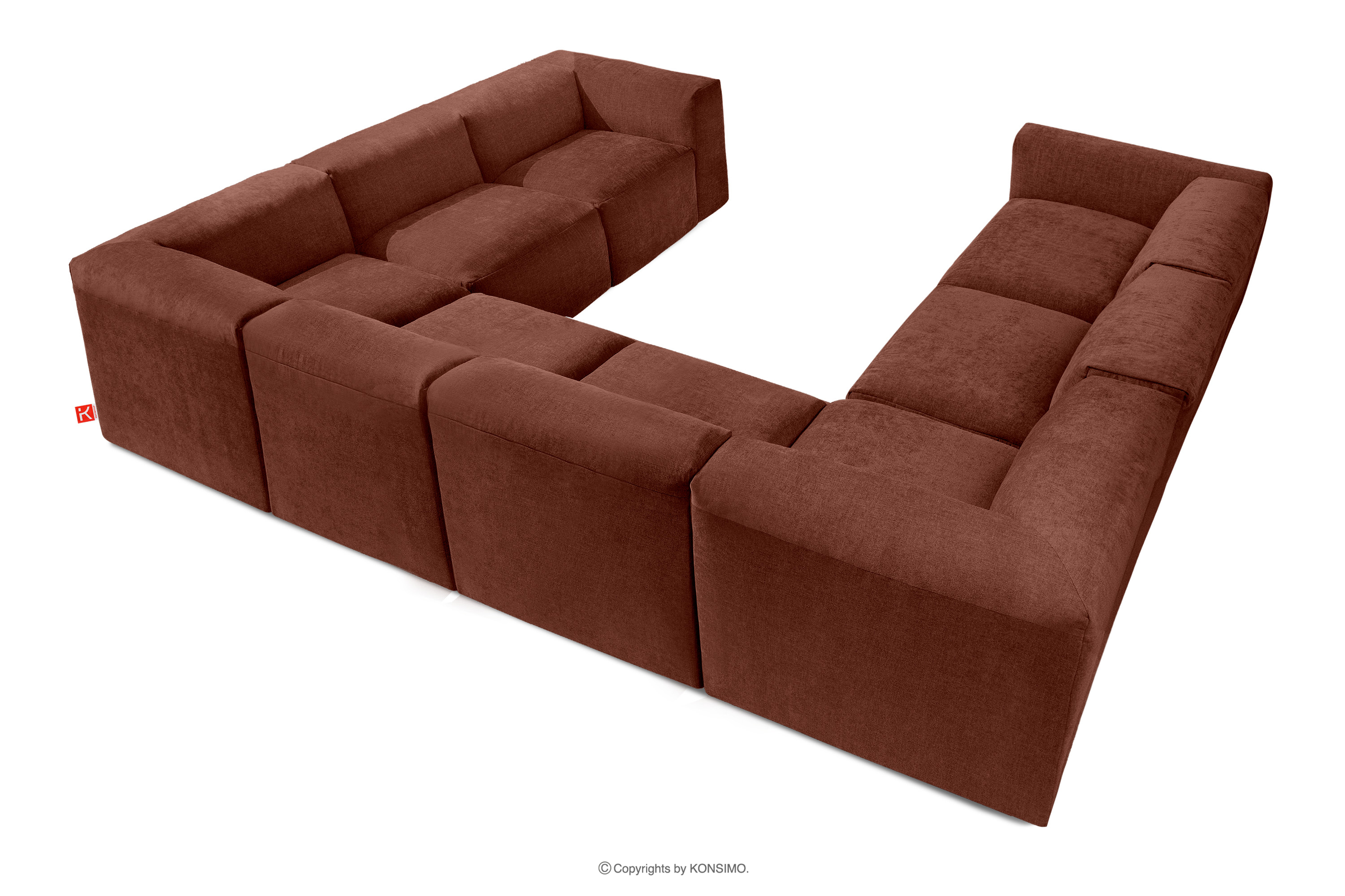 BUFFO zobacz całą kolekcję Duży narożnik boho U w tkaninie plecionej pomarańczowy- kolor pomarańczowy