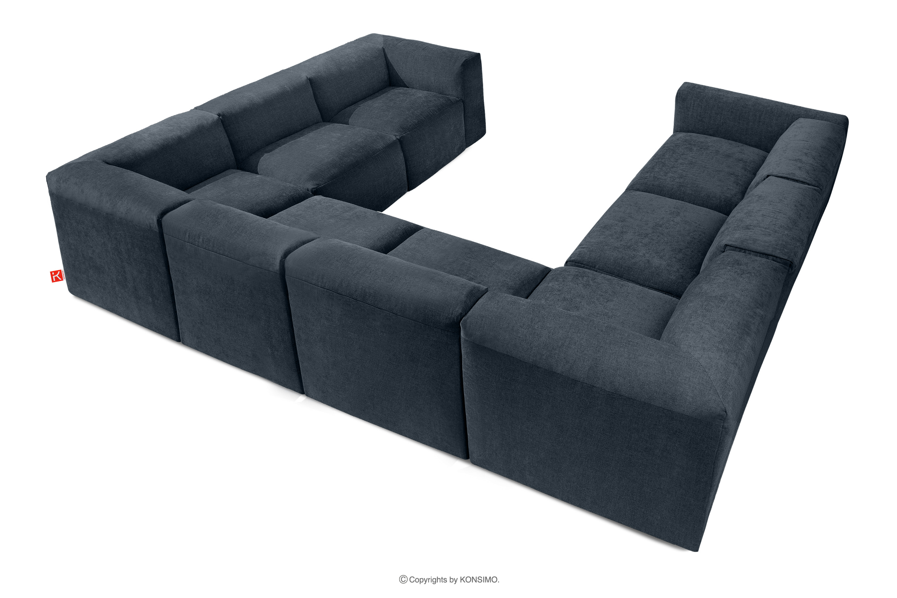 BUFFO zobacz całą kolekcję Duży narożnik boho U w tkaninie plecionej ciemny niebieski- kolor ciemny niebieski