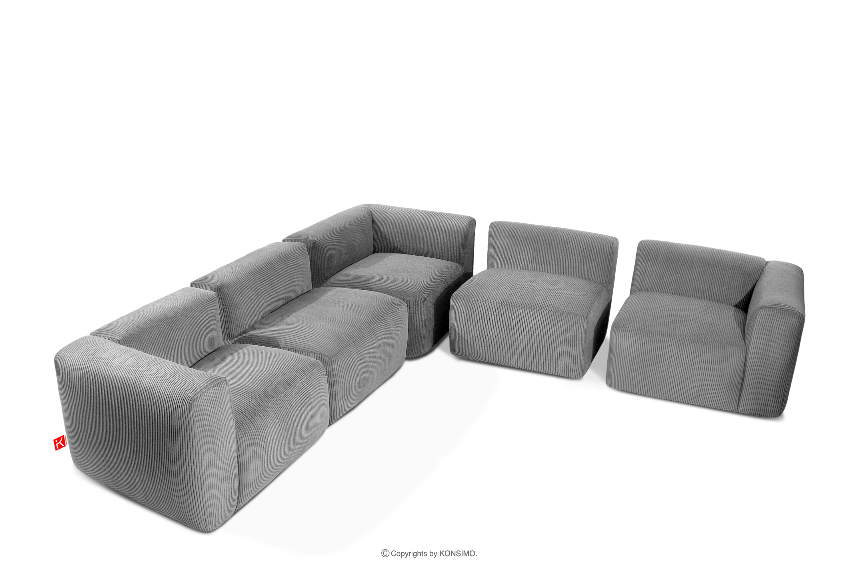 BUFFO Duży narożnik modułowy w tkaninie sztruks jasny szary