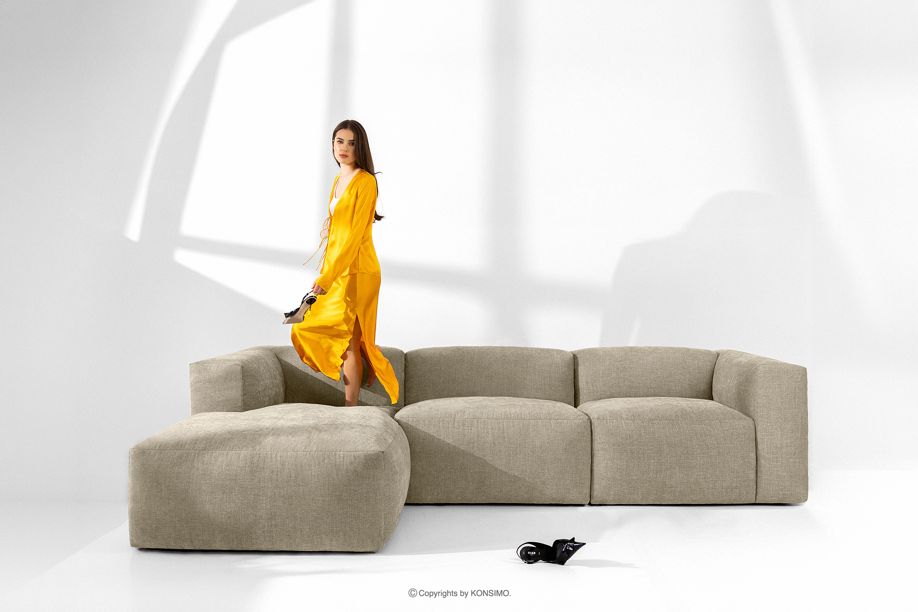 BUFFO zobacz całą kolekcję Duży narożnik modułowy U tkanina pleciona- kolor piaskowy
