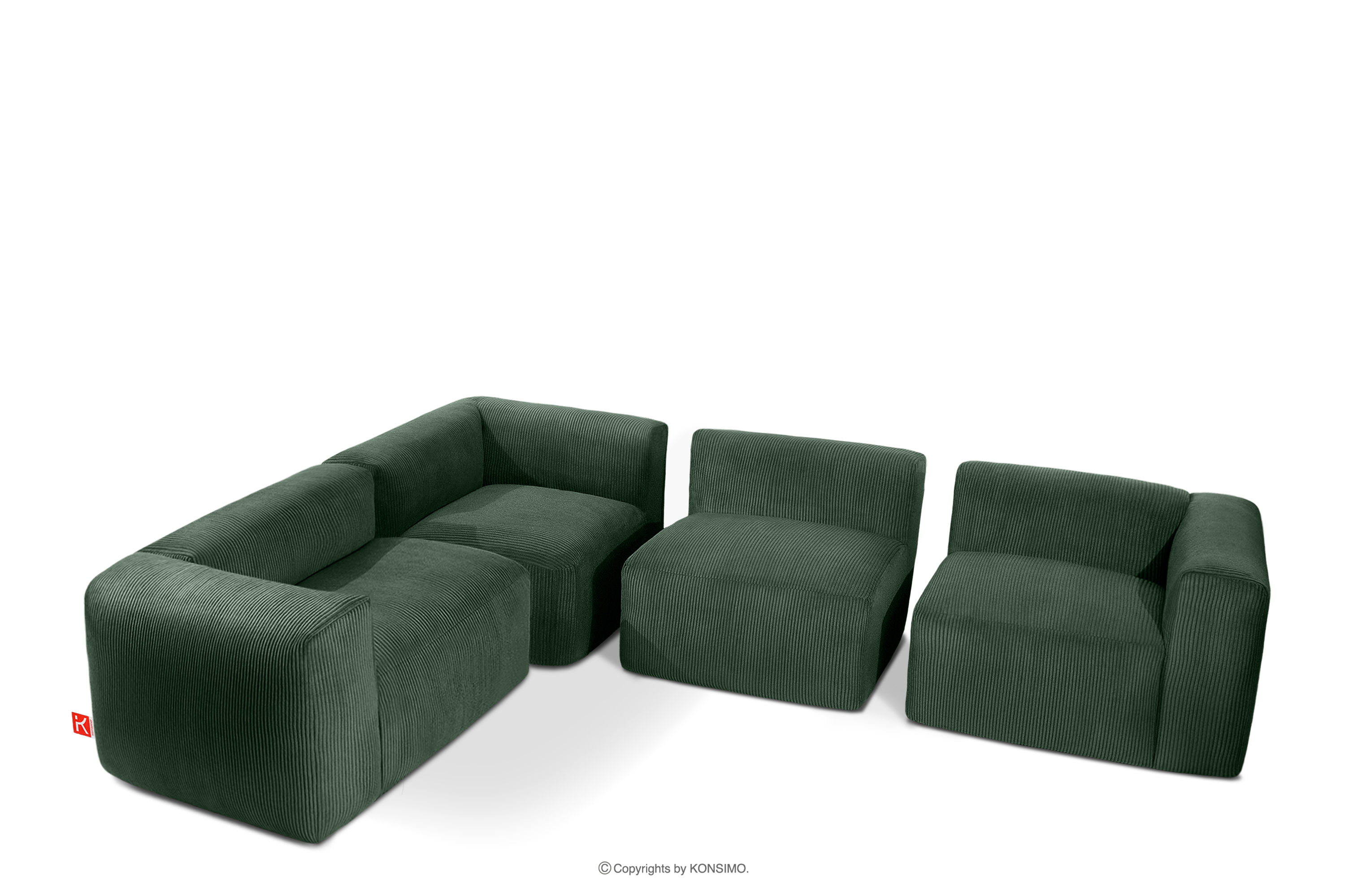 BUFFO Wygodny narożnik modułowy tkanina sztruks ciemny zielony lewy