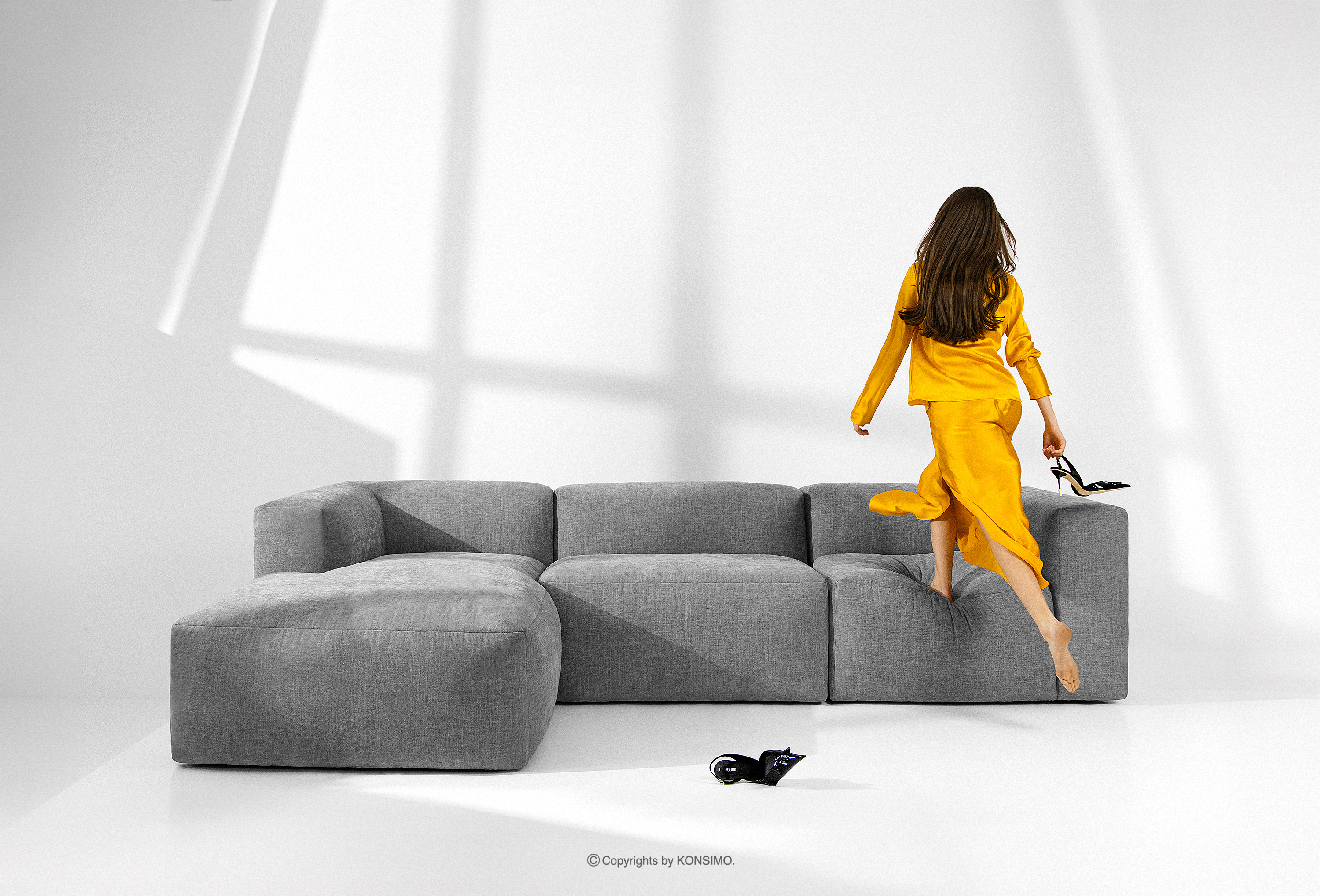 BUFFO zobacz całą kolekcję Wygodny narożnik modułowy tkanina pleciona jasny popielaty prawy- kolor jasny popielaty