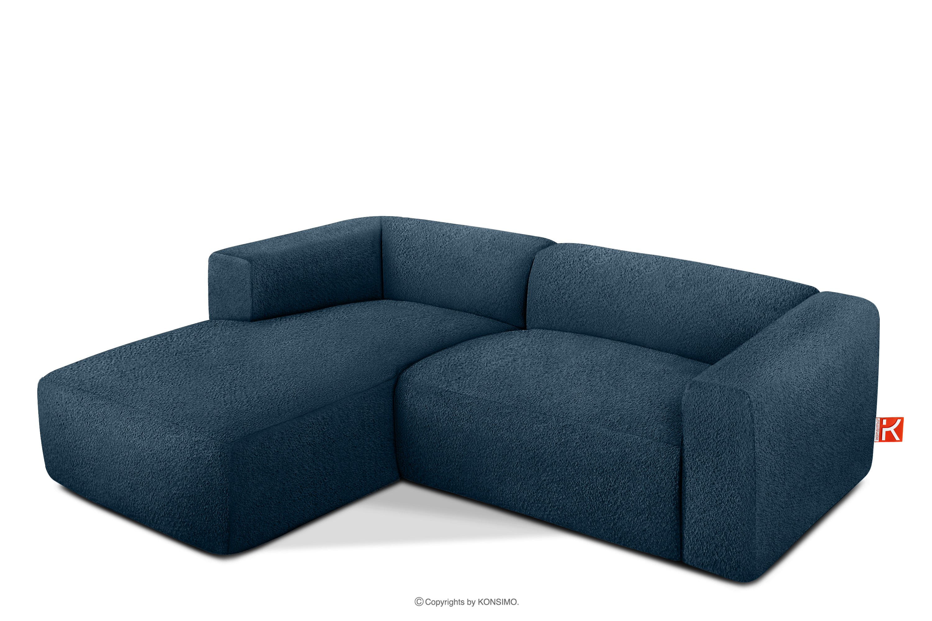 BUFFO zobacz całą kolekcję Miękki narożnik w tkaninie boucle lewy granatowy- kolor granatowy
