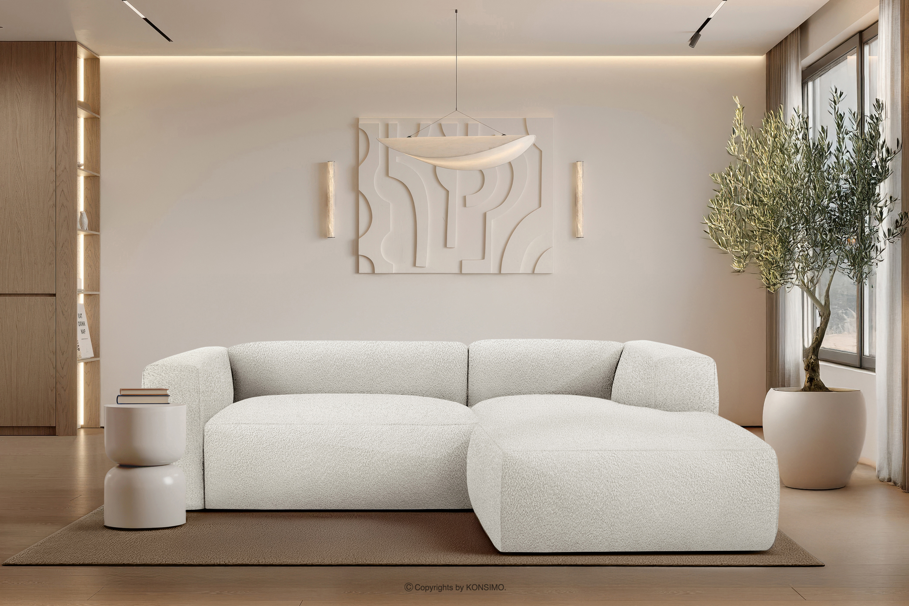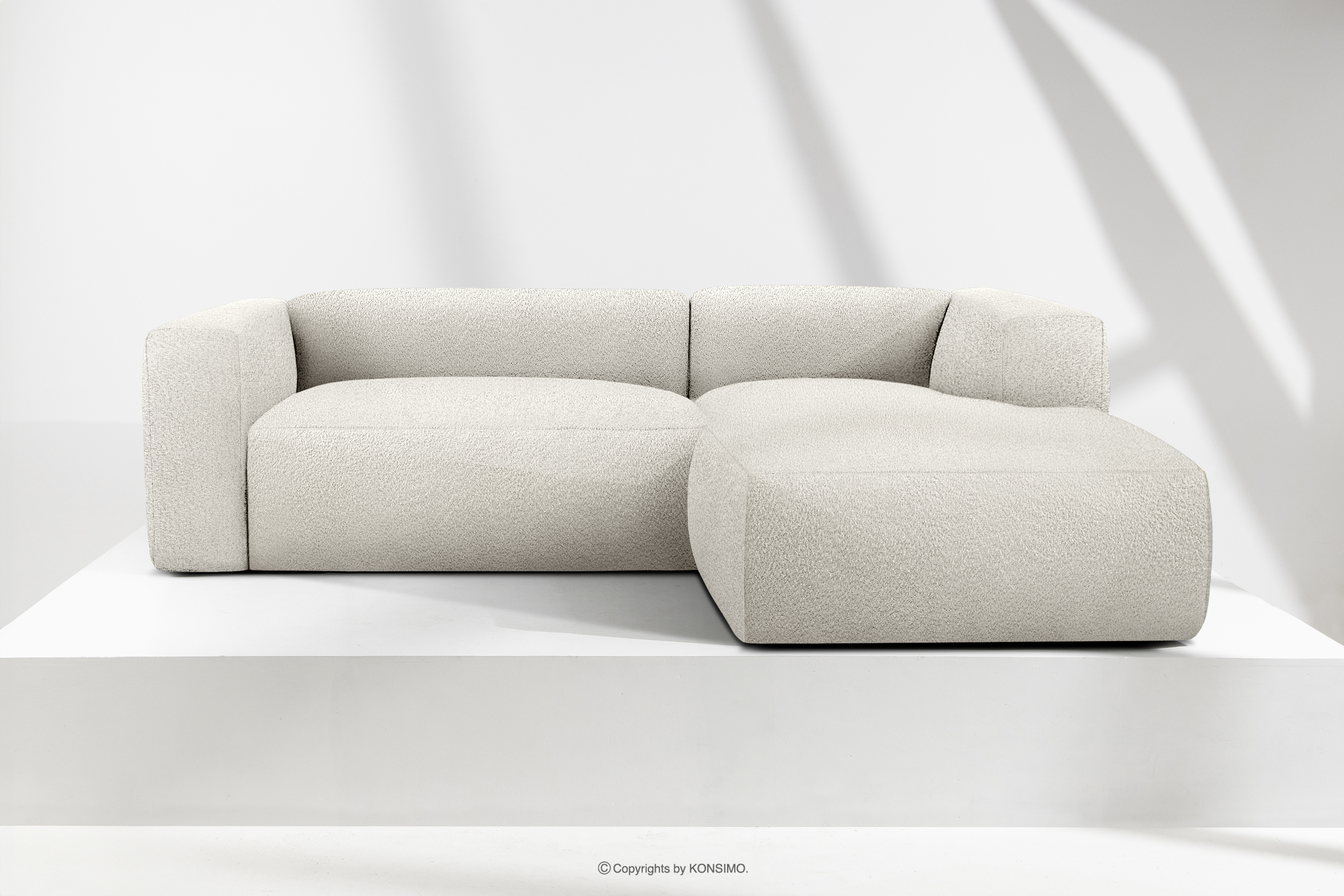 BUFFO zobacz całą kolekcję Miękki narożnik w tkaninie boucle prawy biały- kolor biały
