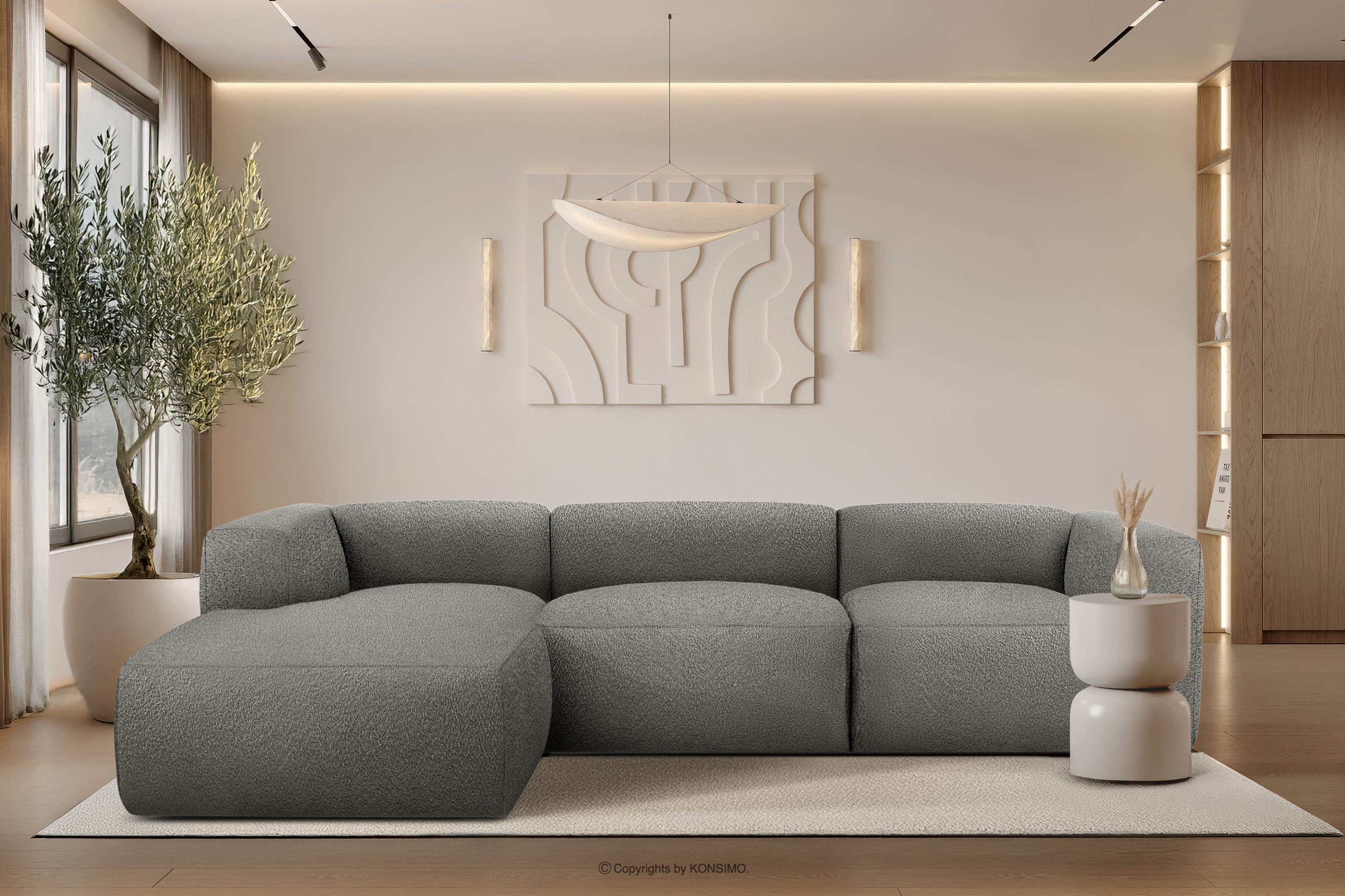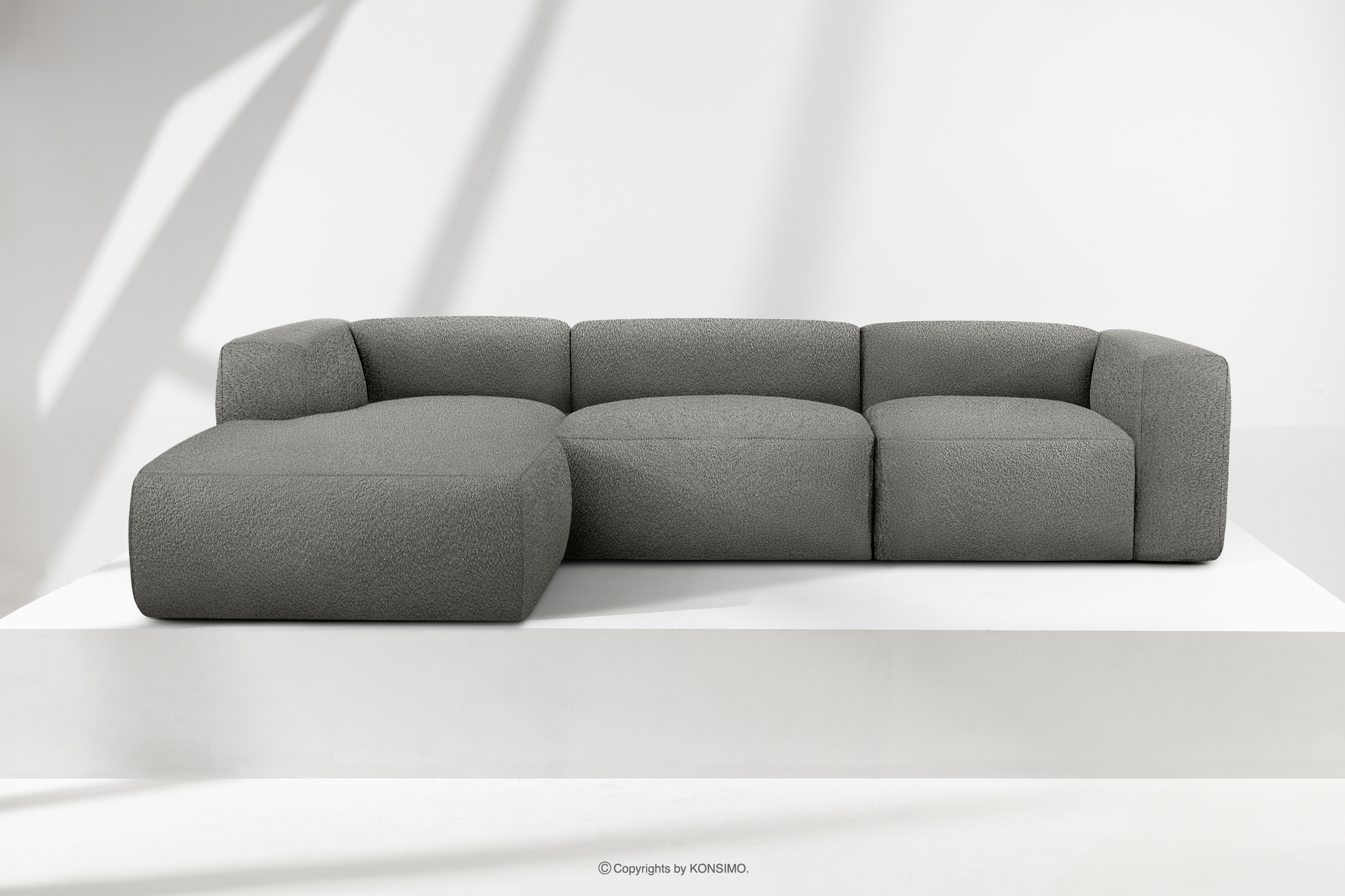 dla produktu Duży miękki narożnik w tkaninie boucle lewy stalowy