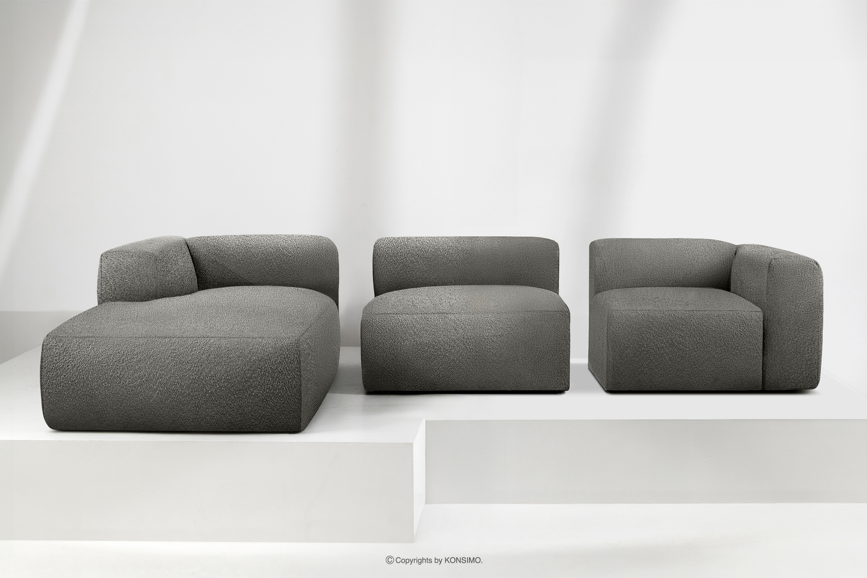 BUFFO zobacz całą kolekcję Duży miękki narożnik w tkaninie boucle lewy stalowy- kolor stalowy