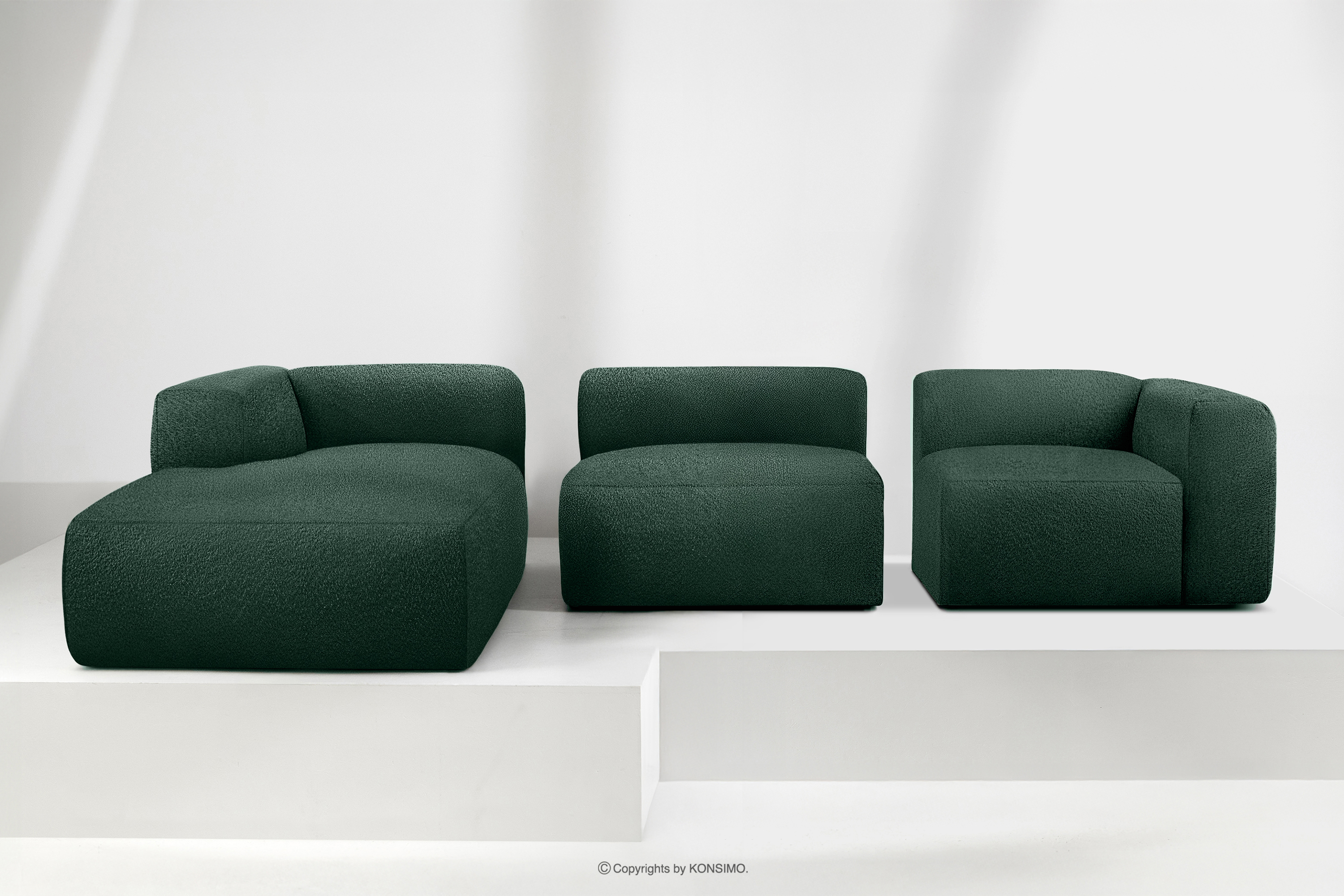 BUFFO zobacz całą kolekcję Duży miękki narożnik w tkaninie boucle lewy ciemny zielony- kolor ciemny zielony