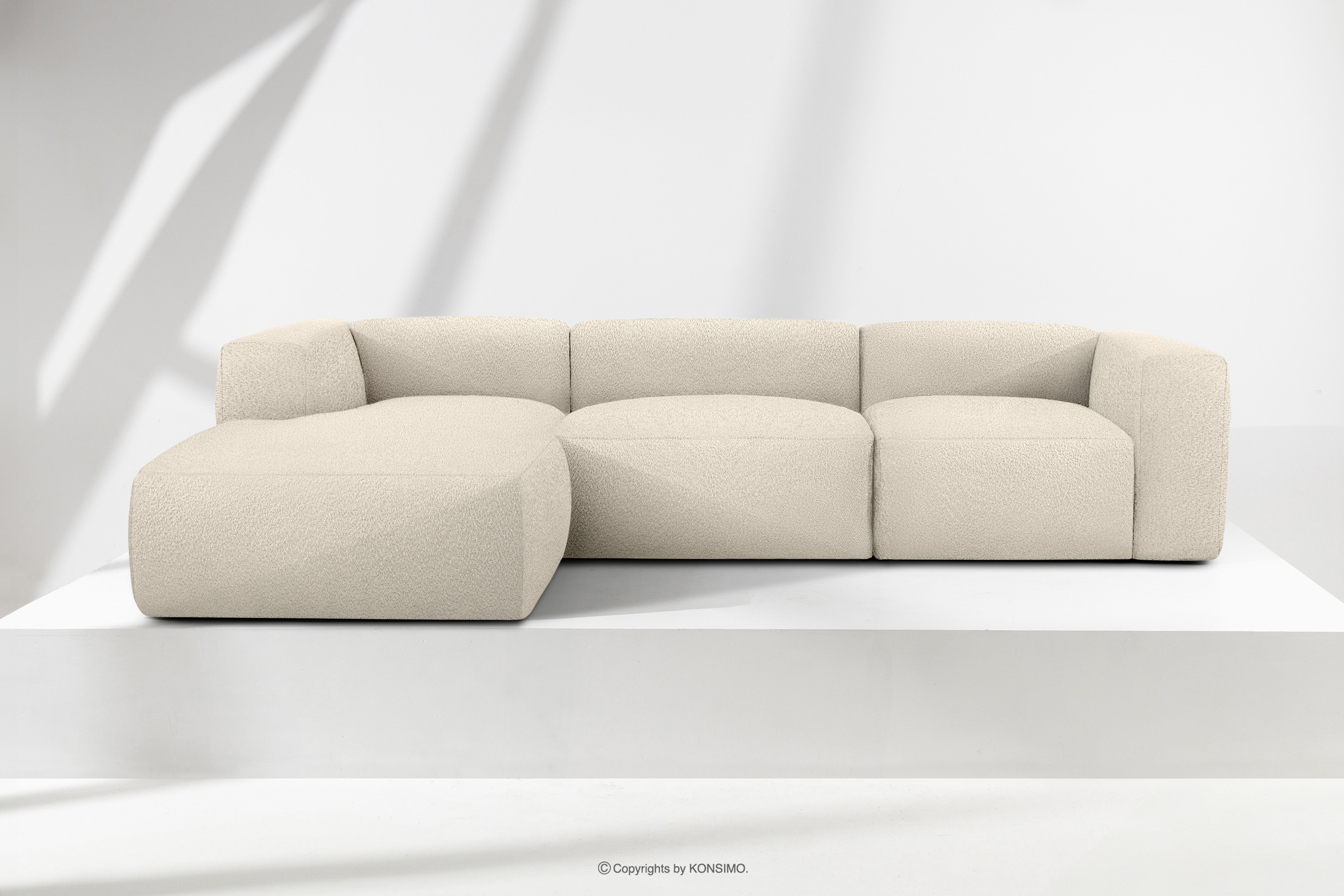 BUFFO zobacz całą kolekcję Duży miękki narożnik w tkaninie boucle lewy jasny beżowy- kolor jasny beżowy