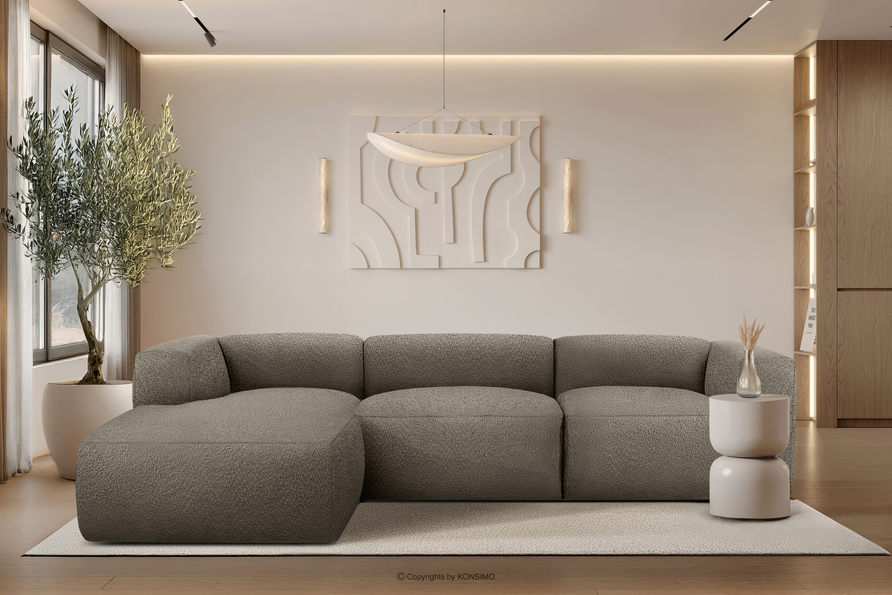 BUFFO zobacz całą kolekcję Duży miękki narożnik w tkaninie boucle lewy chłodny brązowy- kolor chłodny brązowy
