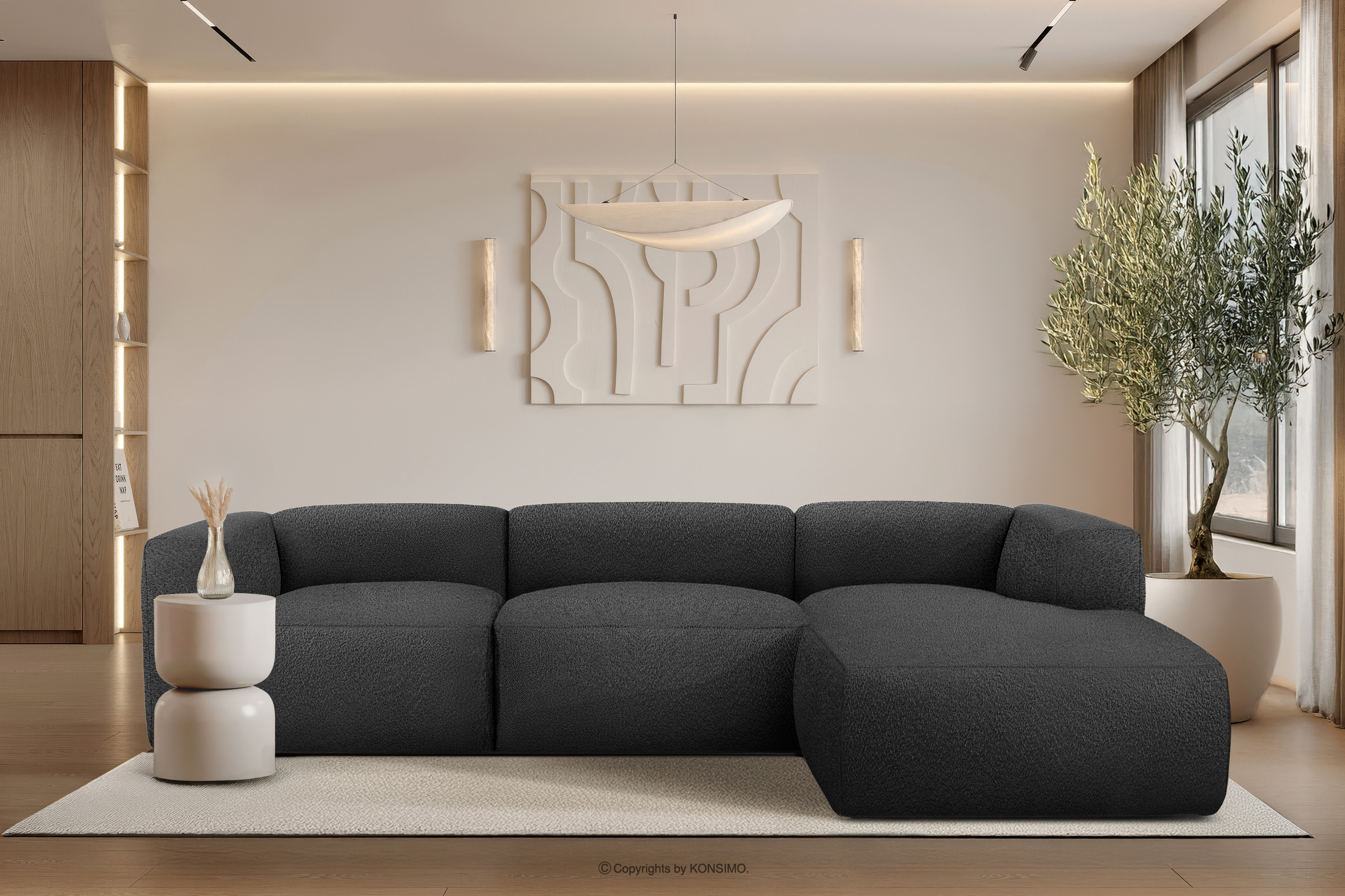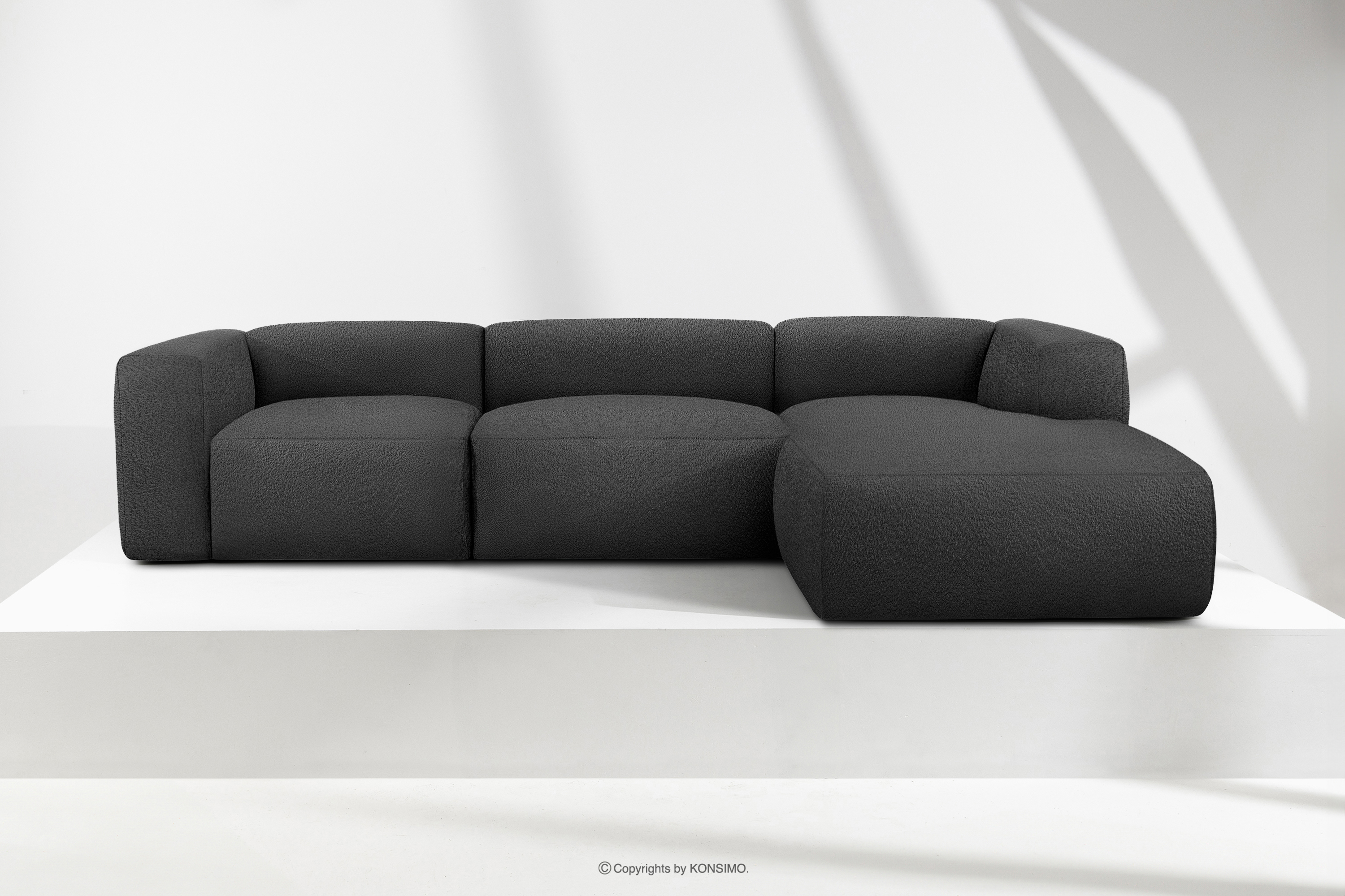 BUFFO zobacz całą kolekcję Duży miękki narożnik w tkaninie boucle prawy ciemny szary- kolor ciemny szary