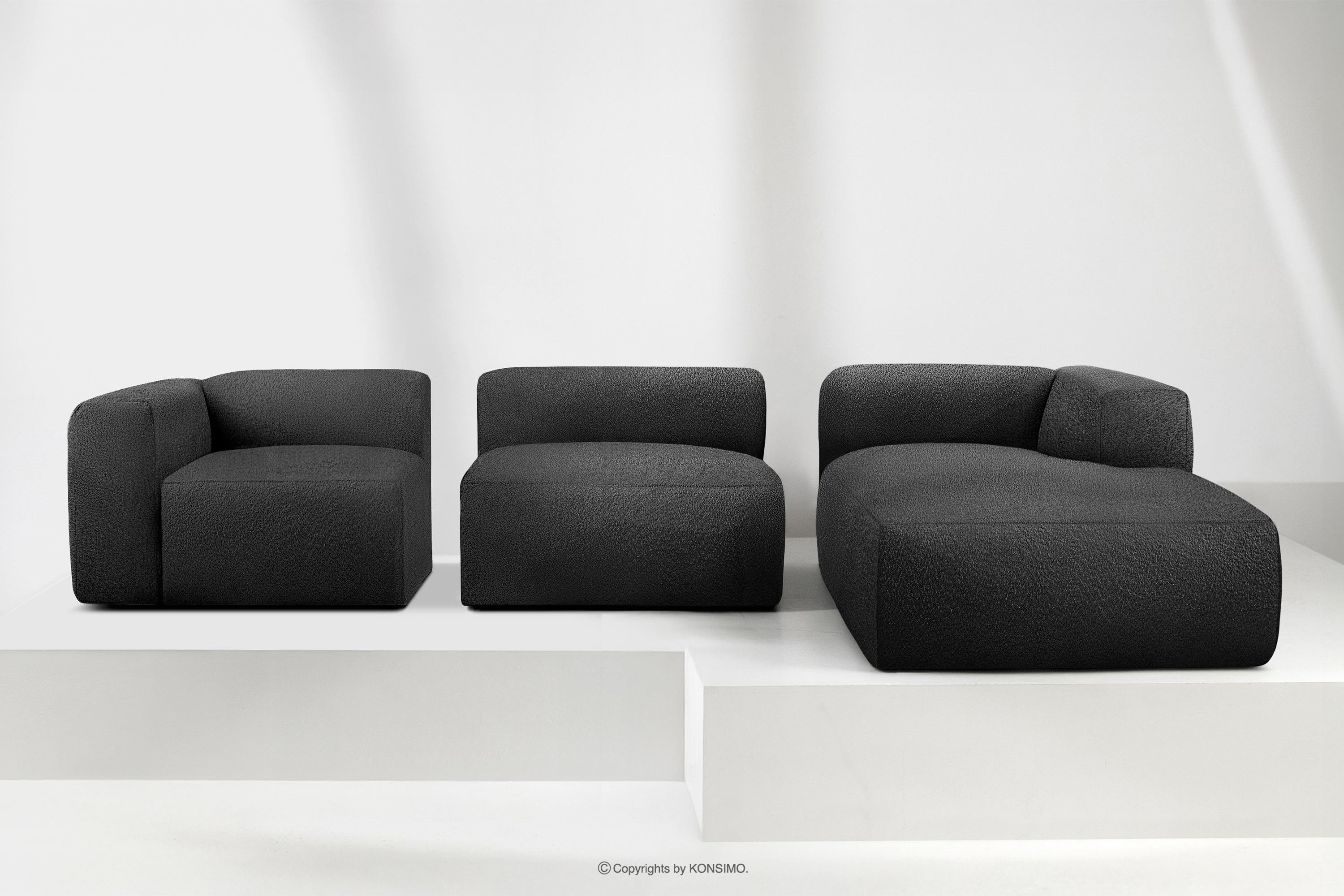 dla produktu Duży miękki narożnik w tkaninie boucle prawy ciemny szary
