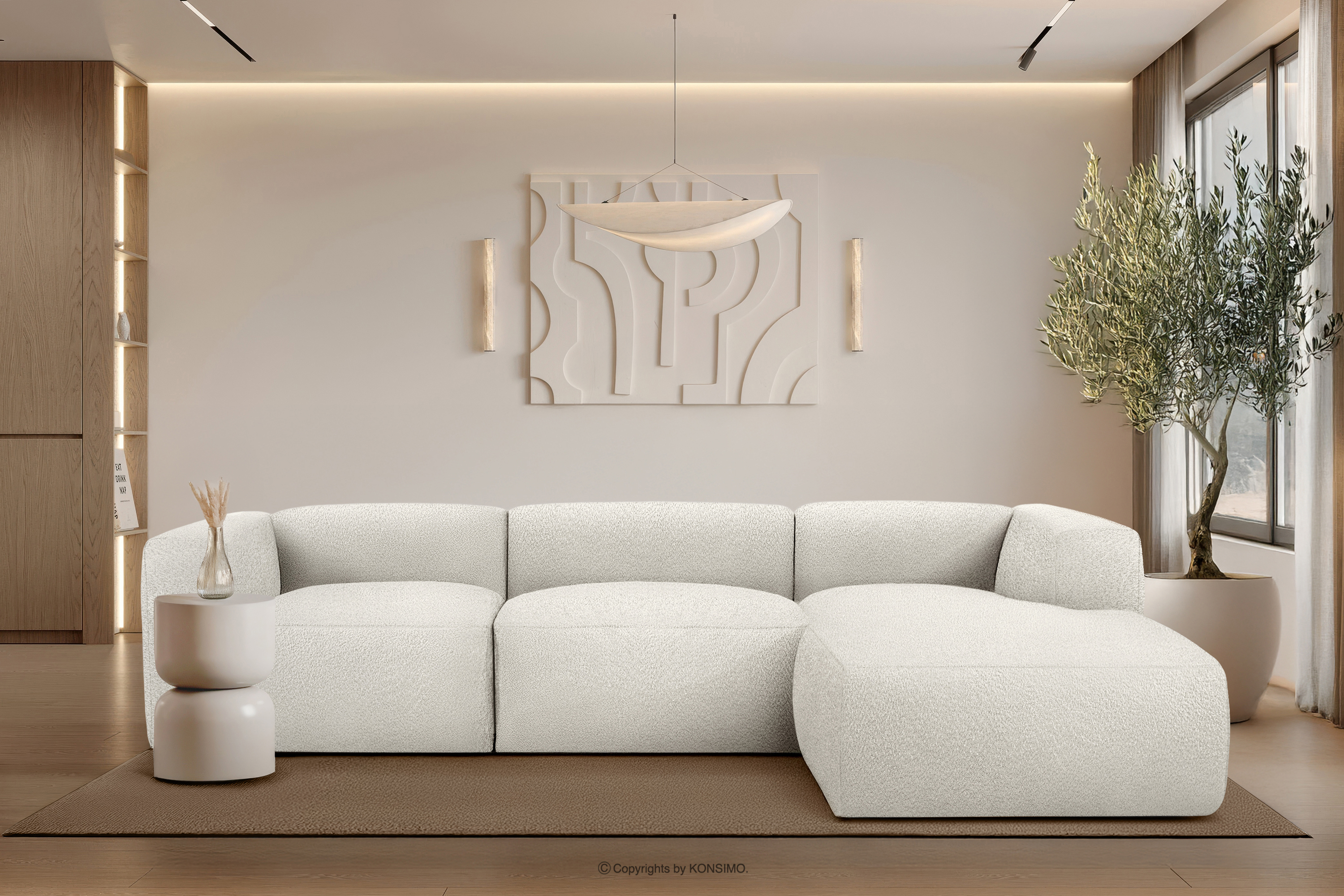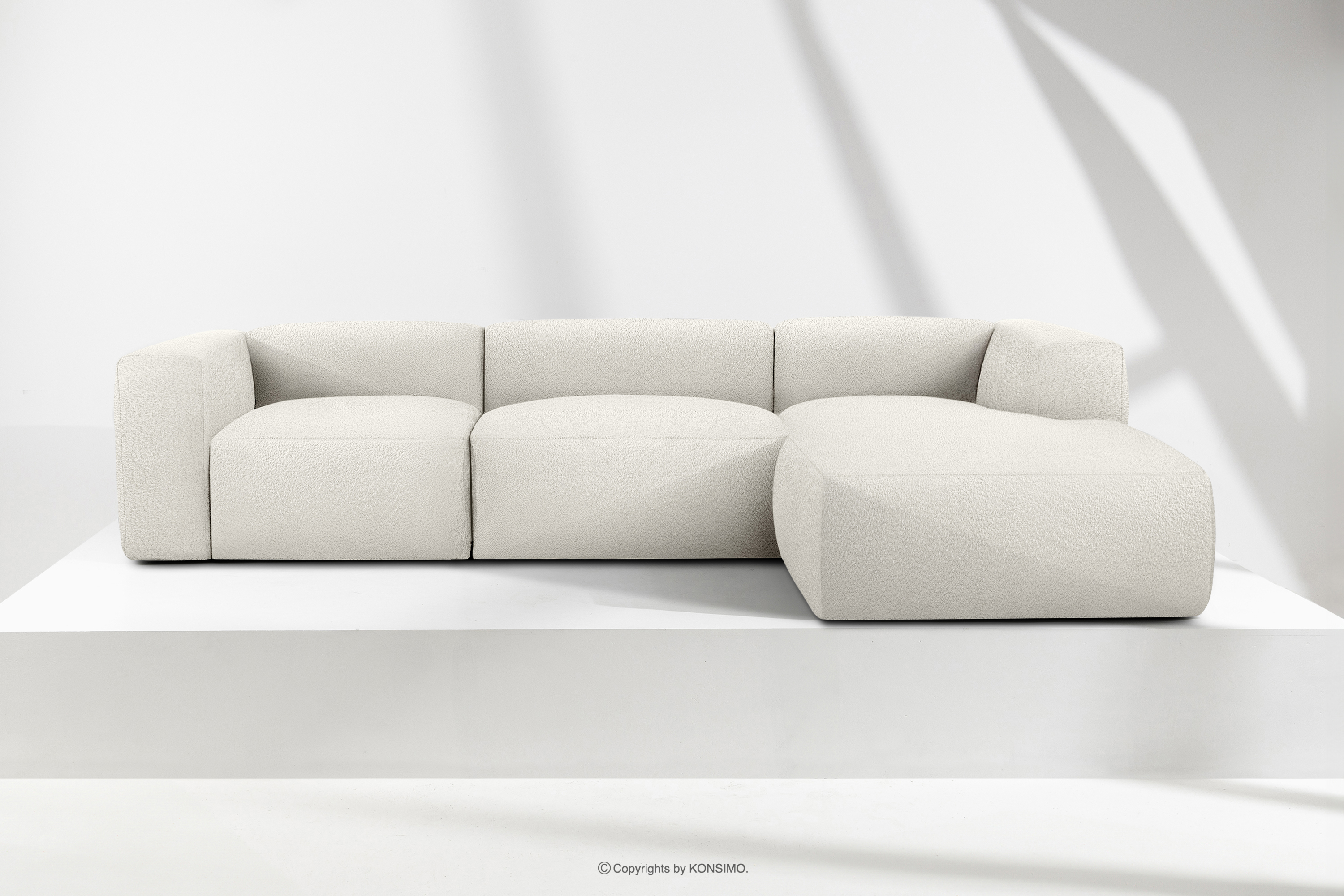 BUFFO zobacz całą kolekcję Duży miękki narożnik w tkaninie boucle prawy biały- kolor biały