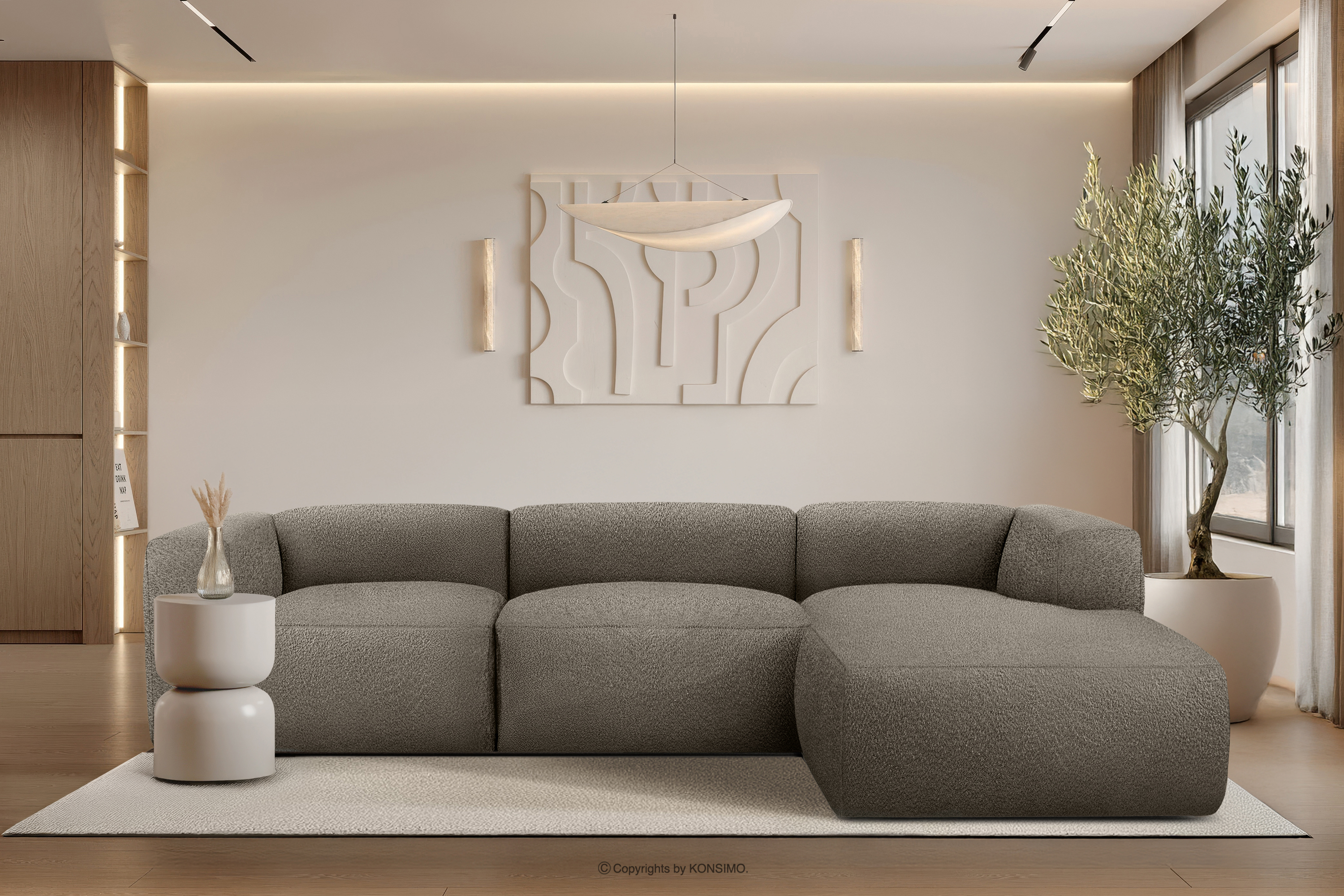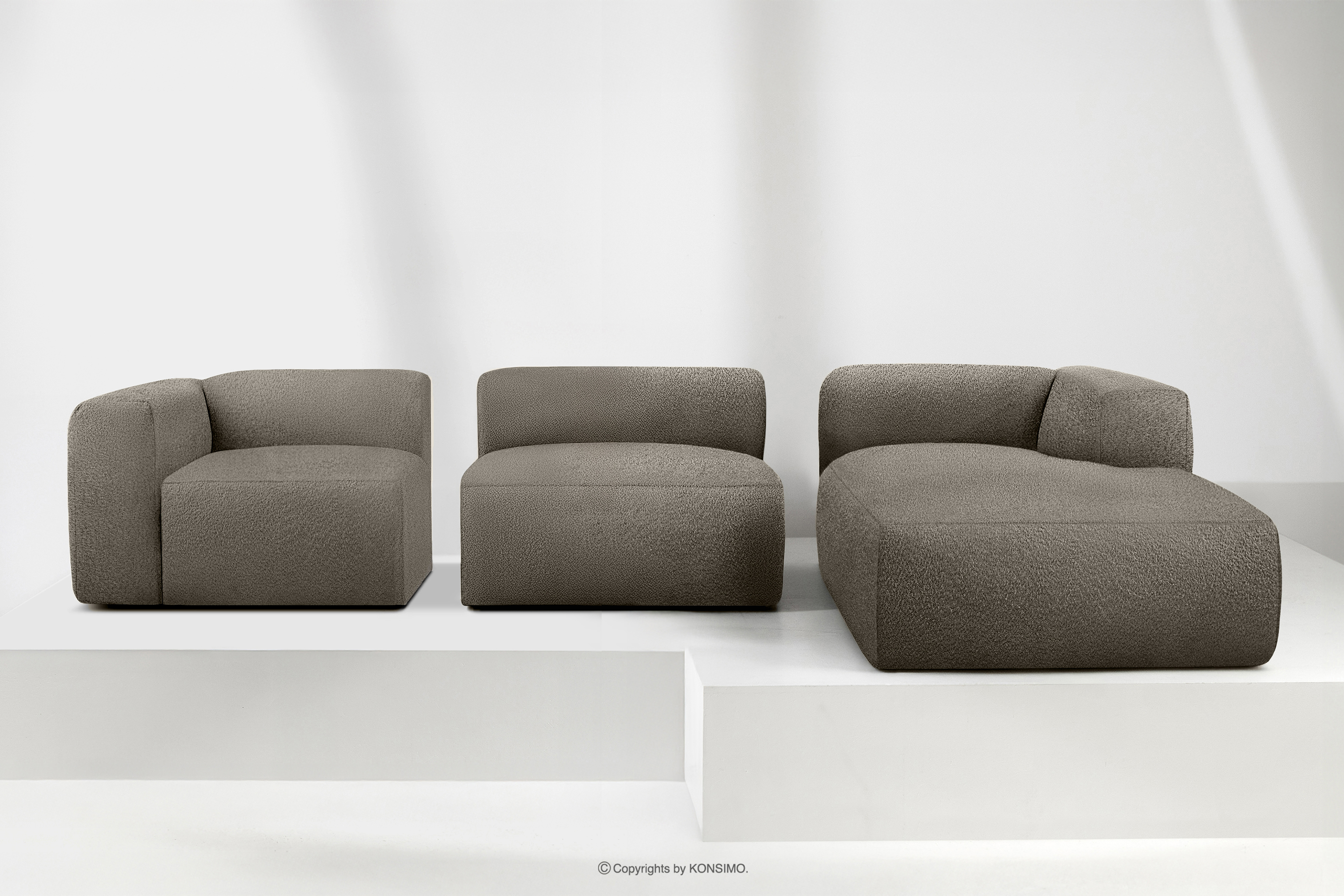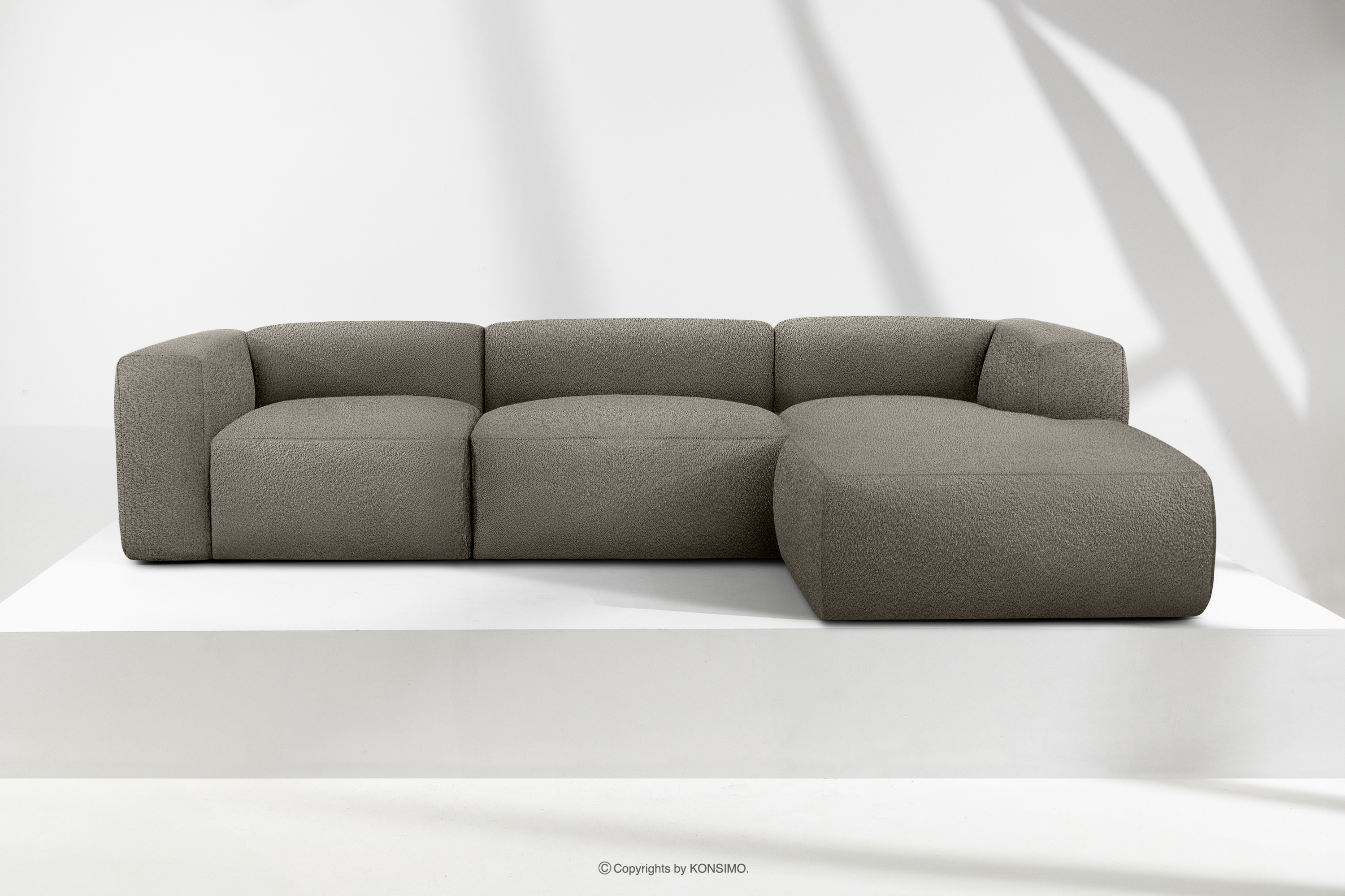 BUFFO zobacz całą kolekcję Duży miękki narożnik w tkaninie boucle prawy chłodny brązowy- kolor chłodny brązowy