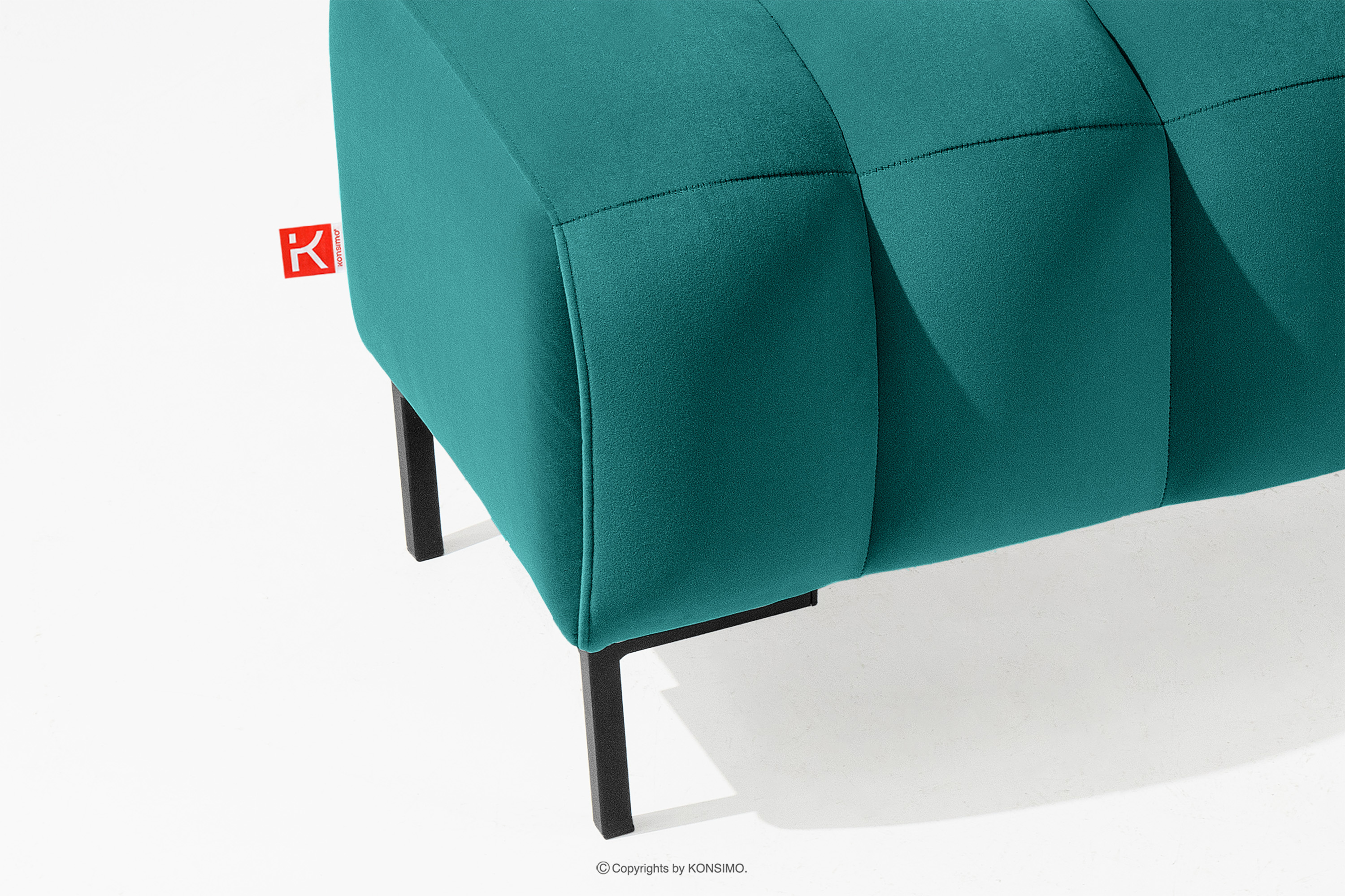 Pufa na wysokich nóżkach elegant morski łączy w sobie funkcjonalność z estetyką. Wysokie nóżki dodają elegancji i lekkości całej kompozycji, tworząc efektowny kontrast z miękkim siedziskiem. Precyzyjne pikowanie to kolejny element, który nadaje temu meblowi niepowtarzalnego charakteru. Staranne wykończenie detali i dbałość o każdy szew sprawiają, że pufa staje się nie tylko praktycznym meblem, ale również designerskim.