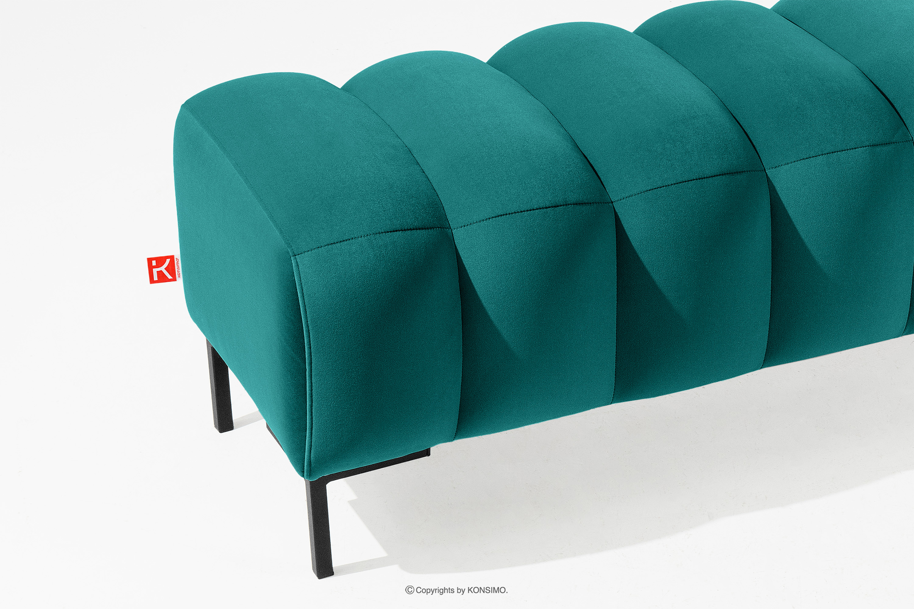 Szeroka pufa 160 na korytarz morski łączy w sobie funkcjonalność z estetyką. Wysokie nóżki dodają elegancji i lekkości całej kompozycji, tworząc efektowny kontrast z miękkim siedziskiem. Precyzyjne pikowanie to kolejny element, który nadaje temu meblowi niepowtarzalnego charakteru. Staranne wykończenie detali i dbałość o każdy szew sprawiają, że pufa staje się nie tylko praktycznym meblem, ale również designerskim.