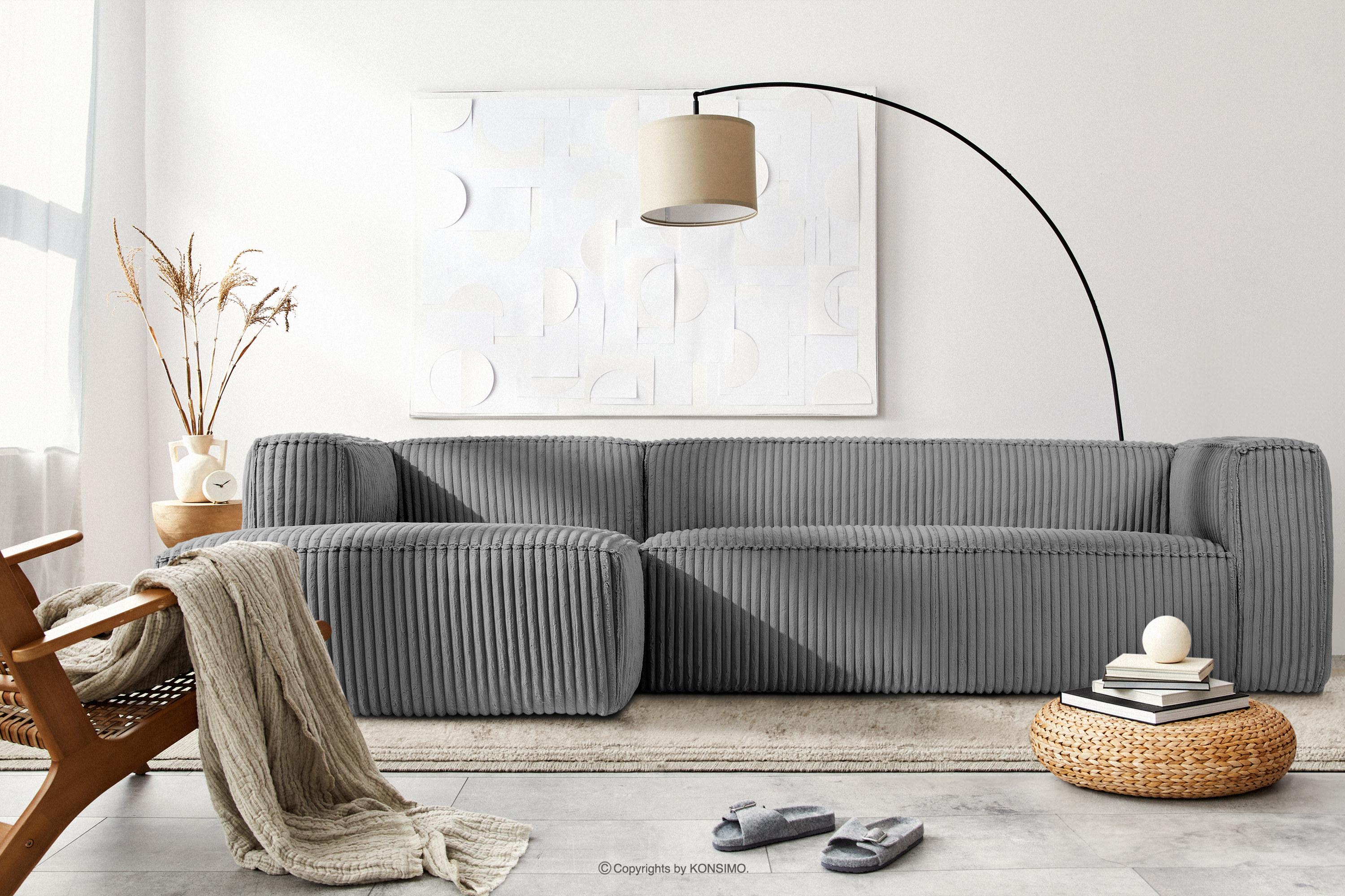 FEROX zobacz całą kolekcję Duży ciemny szary narożnik w tkaninie sztruks lewy- kolor ciemny szary