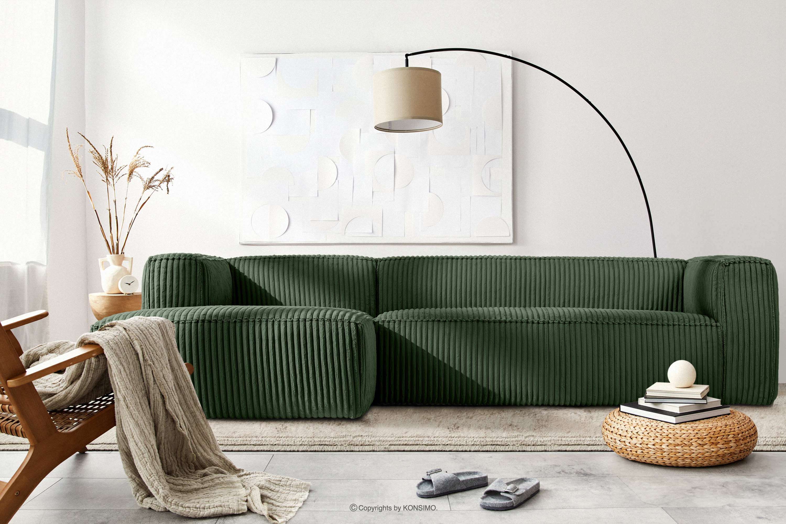 FEROX zobacz całą kolekcję Duży ciemny zielony narożnik w tkaninie sztruks lewy- kolor ciemny zielony