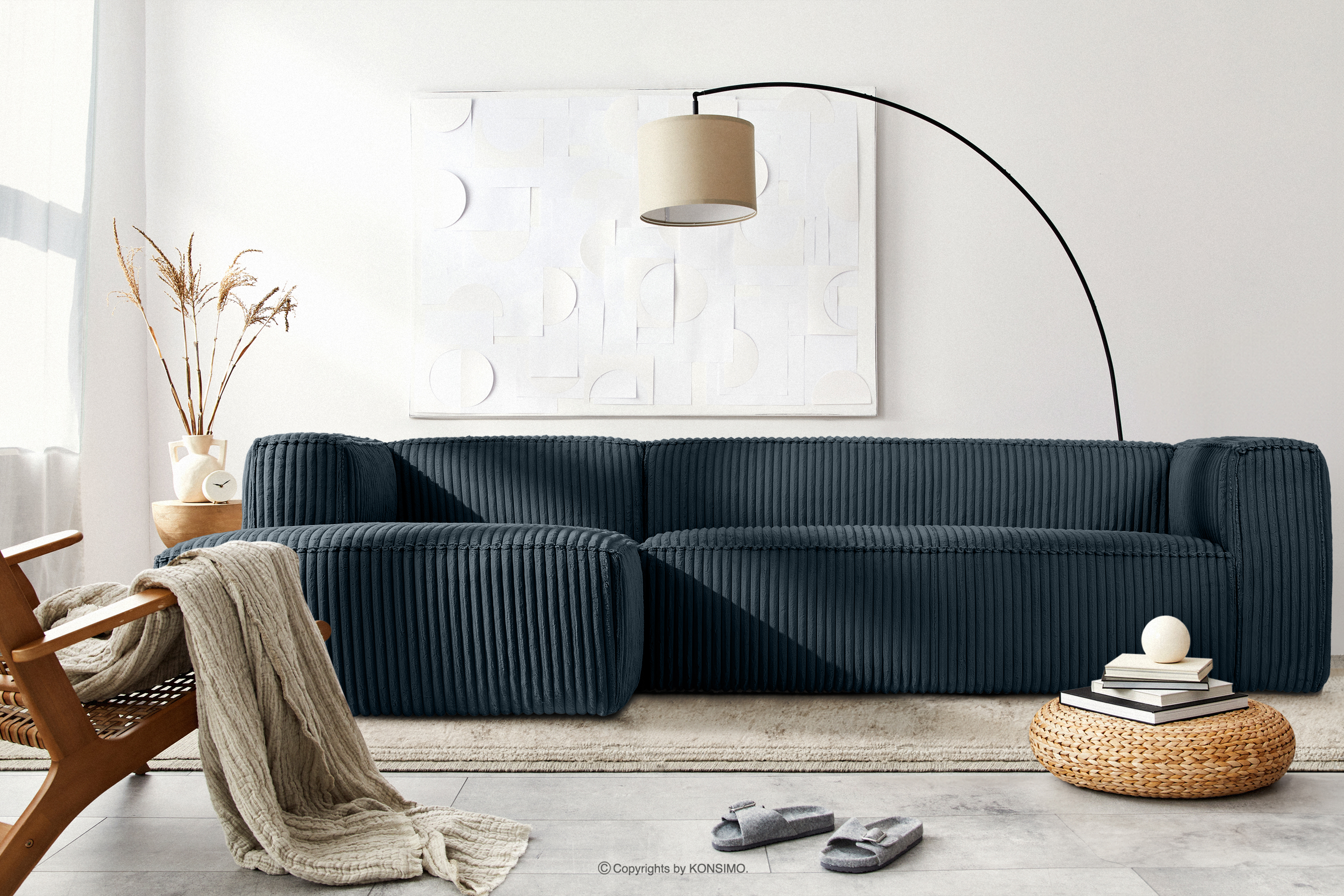 FEROX zobacz całą kolekcję Duży granatowy narożnik w tkaninie sztruks lewy- kolor granatowy