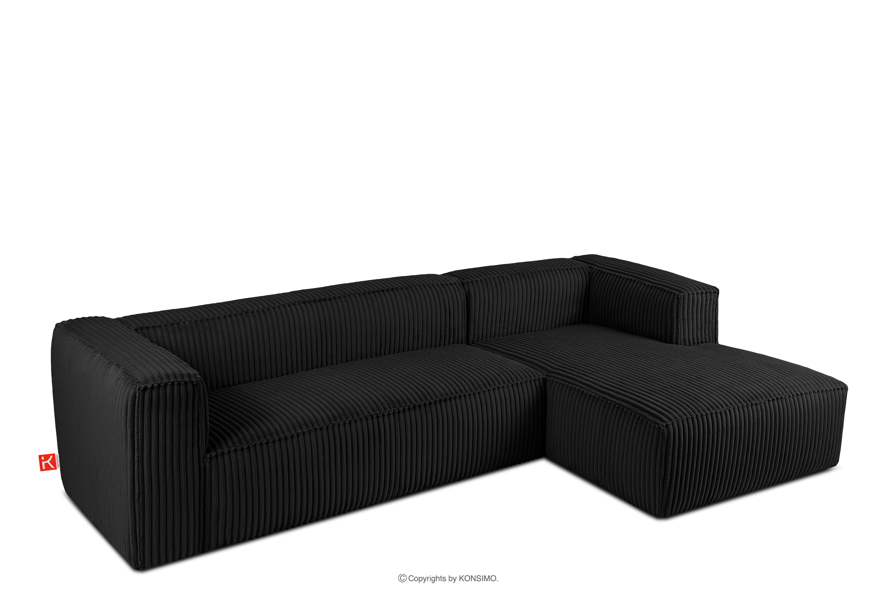 FEROX zobacz całą kolekcję Duży czarny narożnik w tkaninie sztruks prawy- kolor czarny