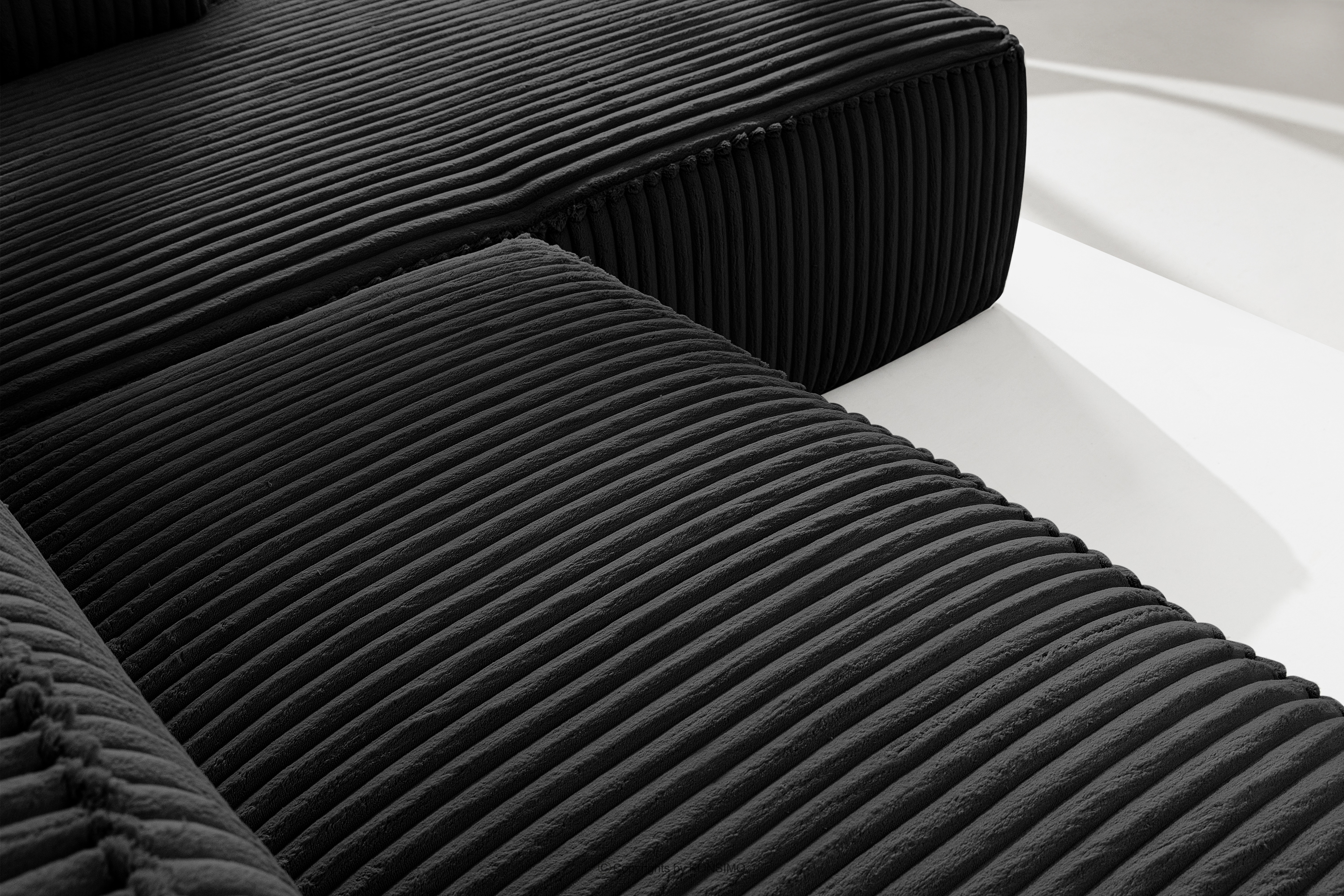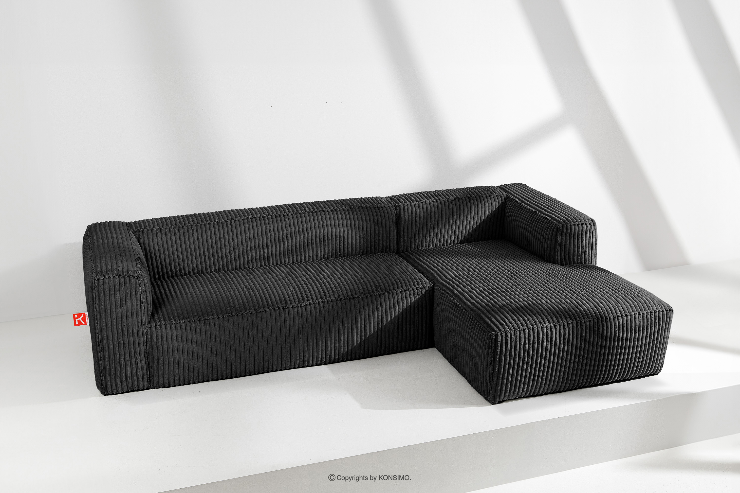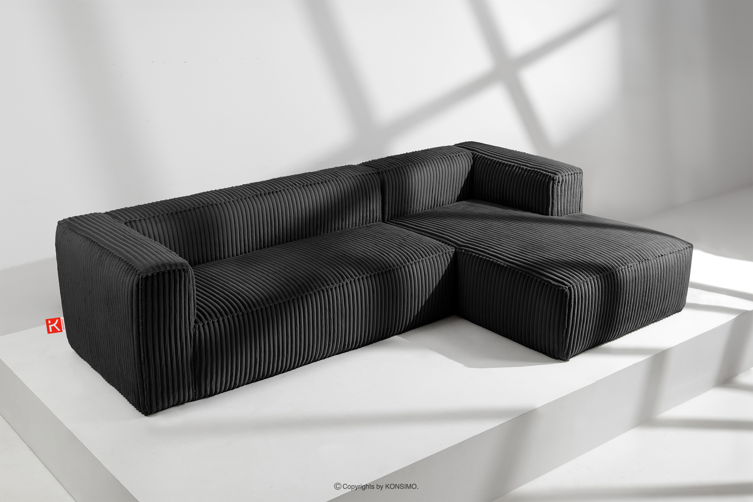 dla produktu Duży czarny narożnik w tkaninie sztruks prawy