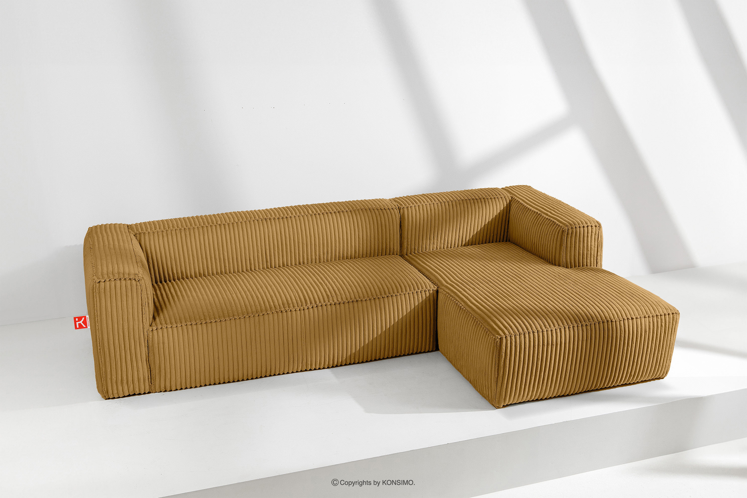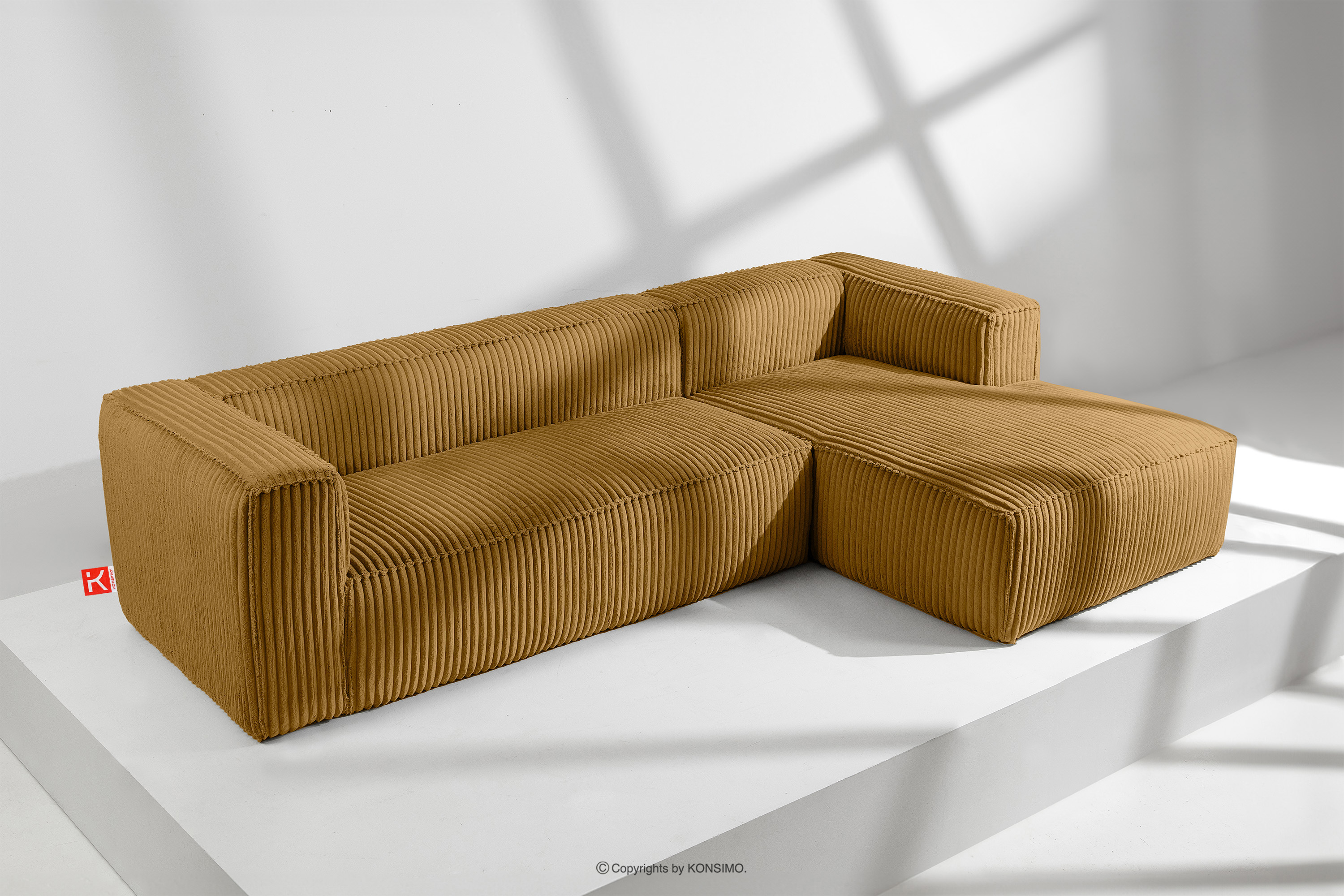 dla produktu Duży żółty narożnik w tkaninie sztruks prawy