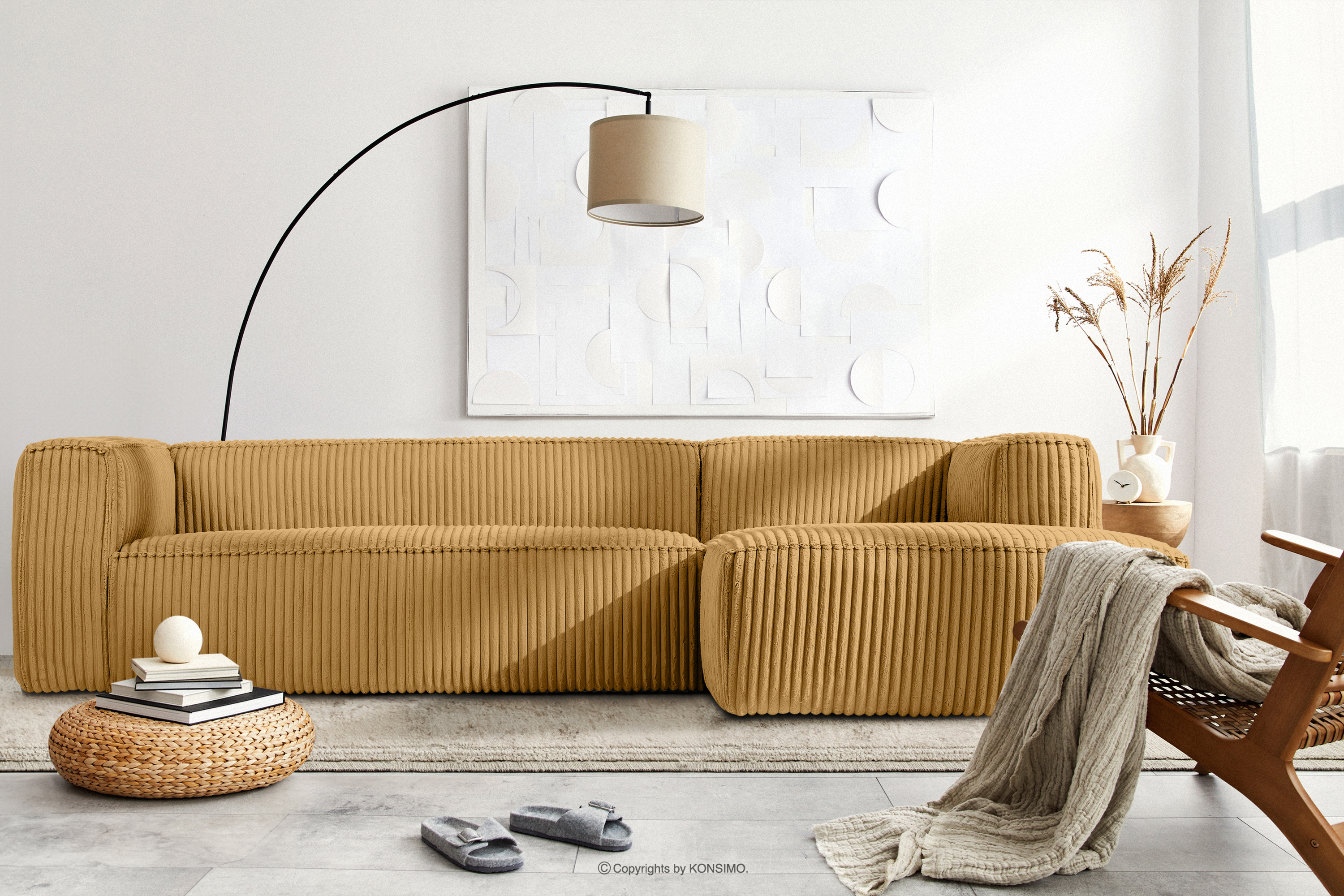 FEROX zobacz całą kolekcję Duży żółty narożnik w tkaninie sztruks prawy- kolor żółty