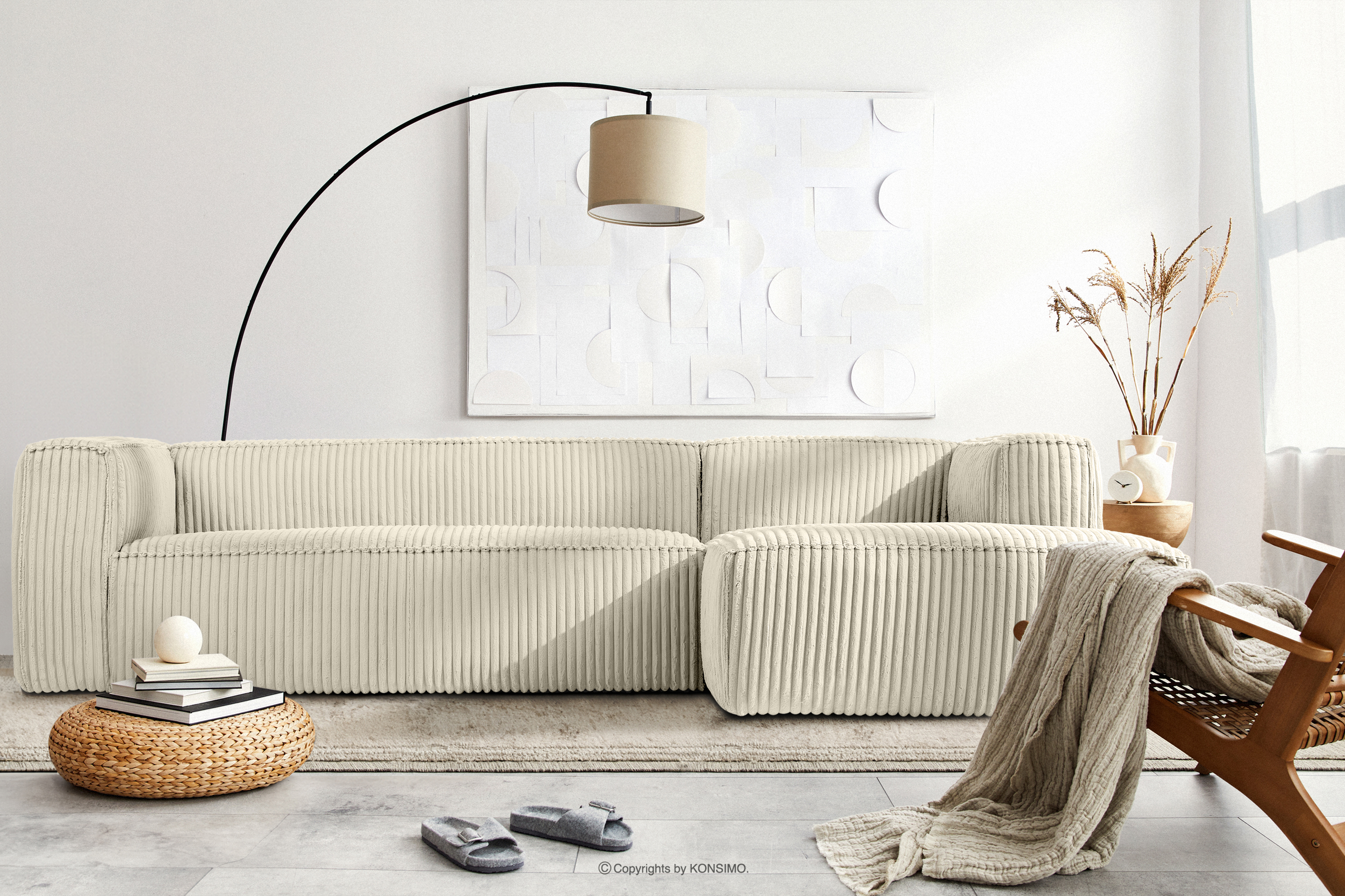 FEROX zobacz całą kolekcję Duży kremowy narożnik w tkaninie sztruks prawy- kolor kremowy